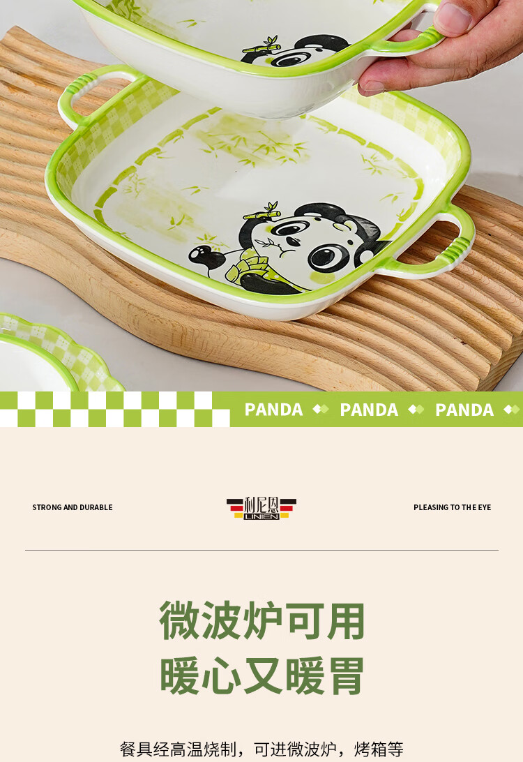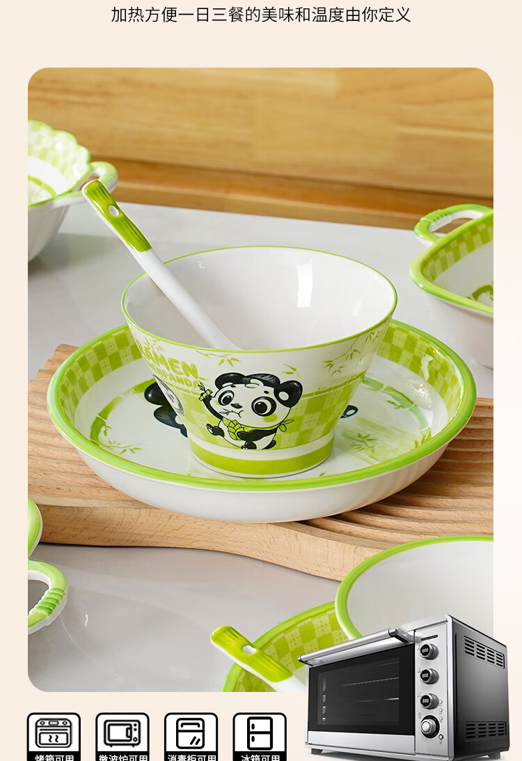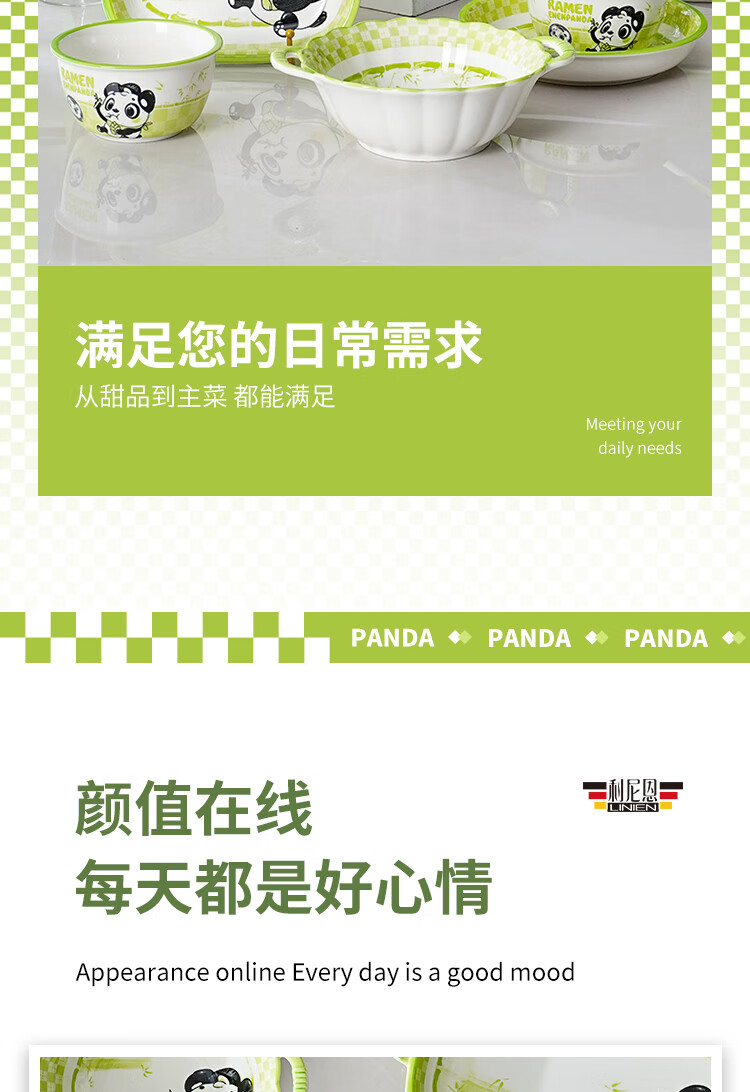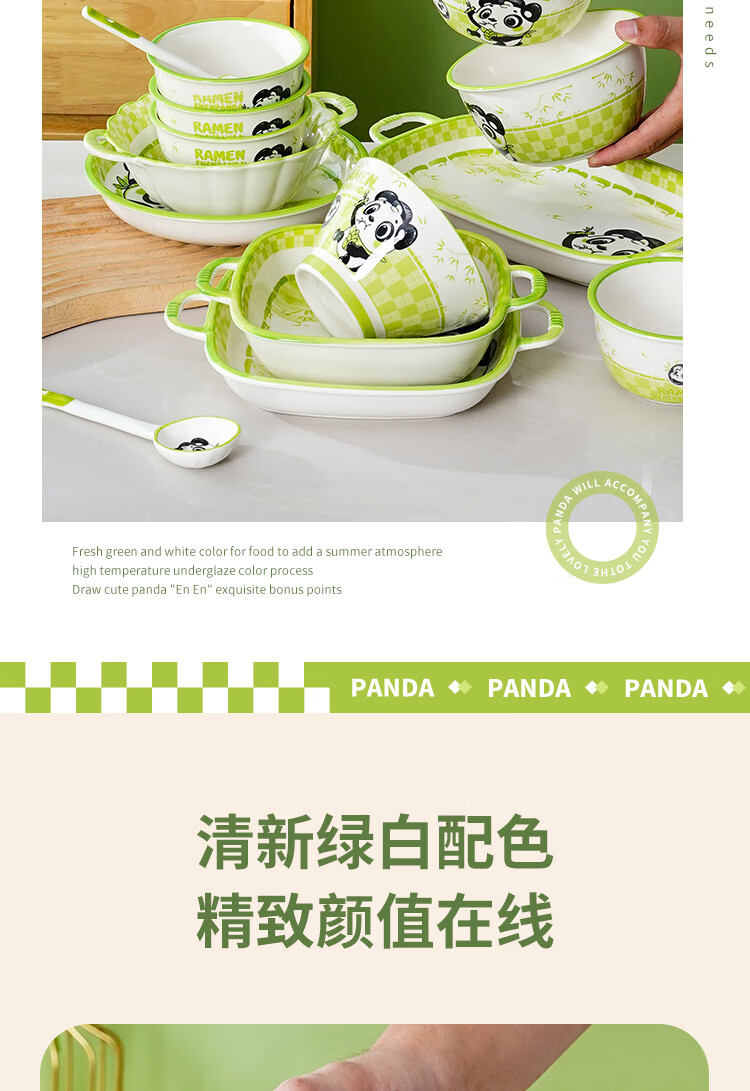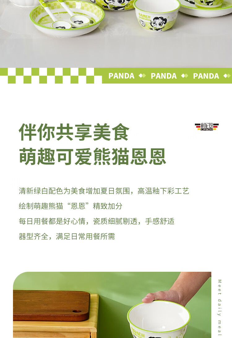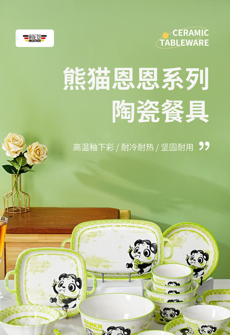 Linian Panda Enen household Chinese style internet red underglaze color ceramic tableware cute dishes and plates durable 4.5 inch wide rim bowl 1 pack
