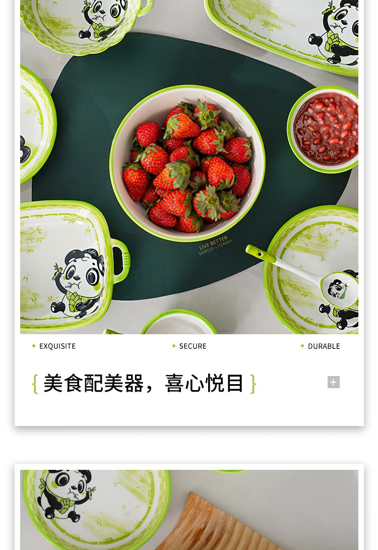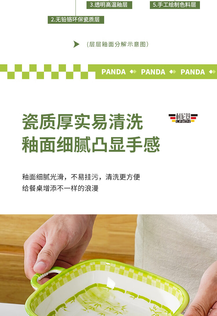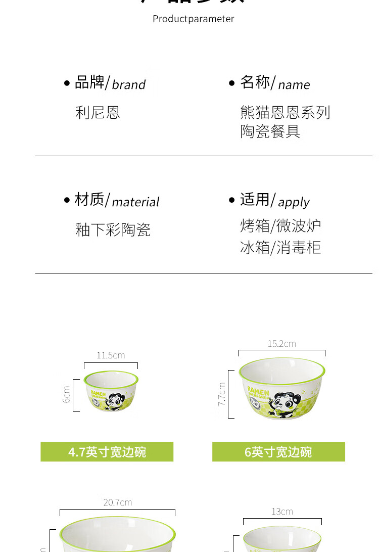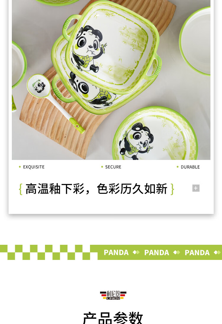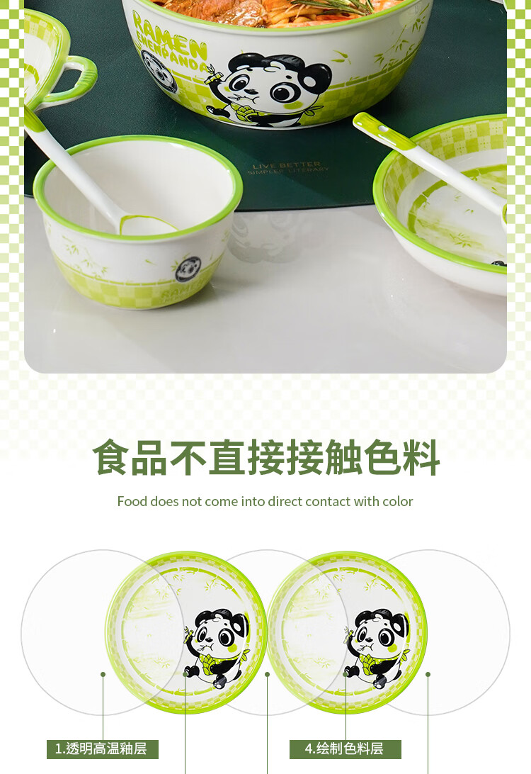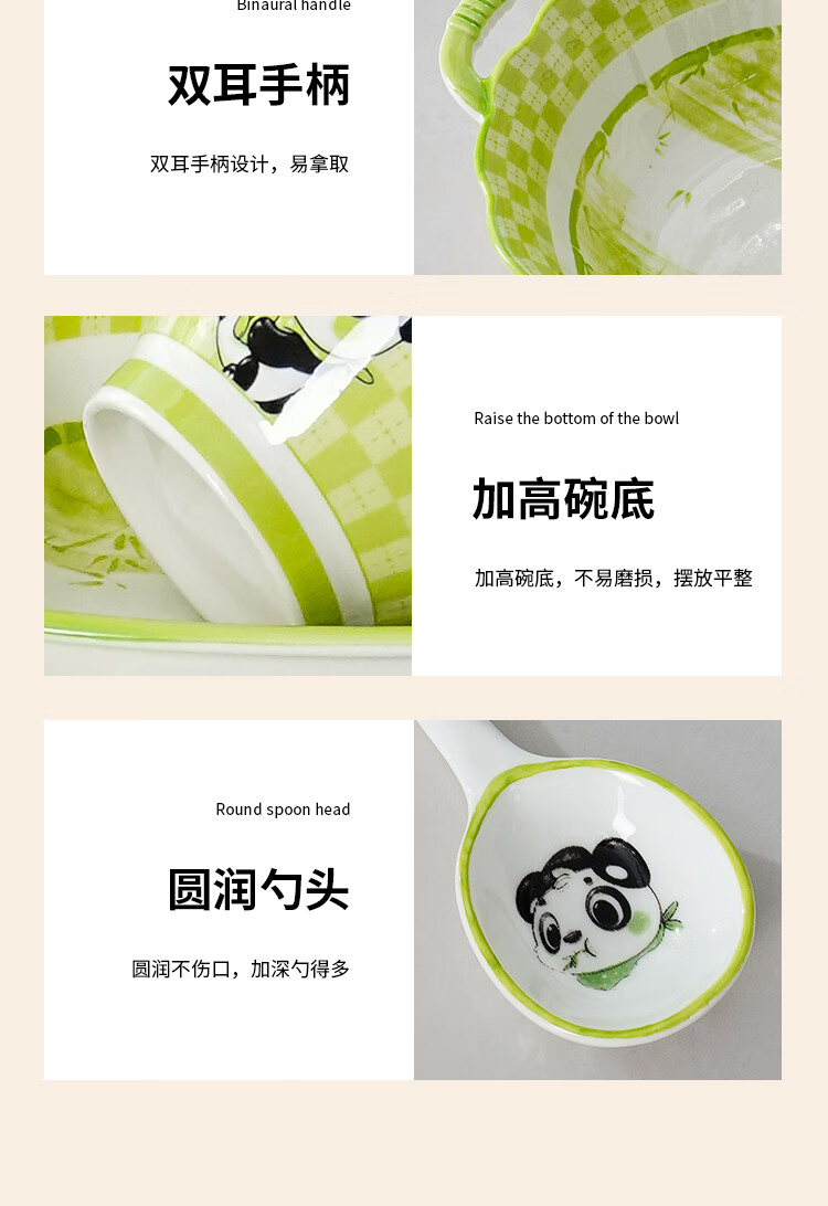 Linian Panda Enen household Chinese style internet red underglaze color ceramic tableware cute dishes and plates durable 4.5 inch wide rim bowl 1 pack