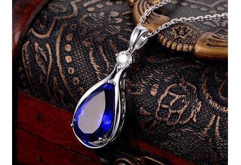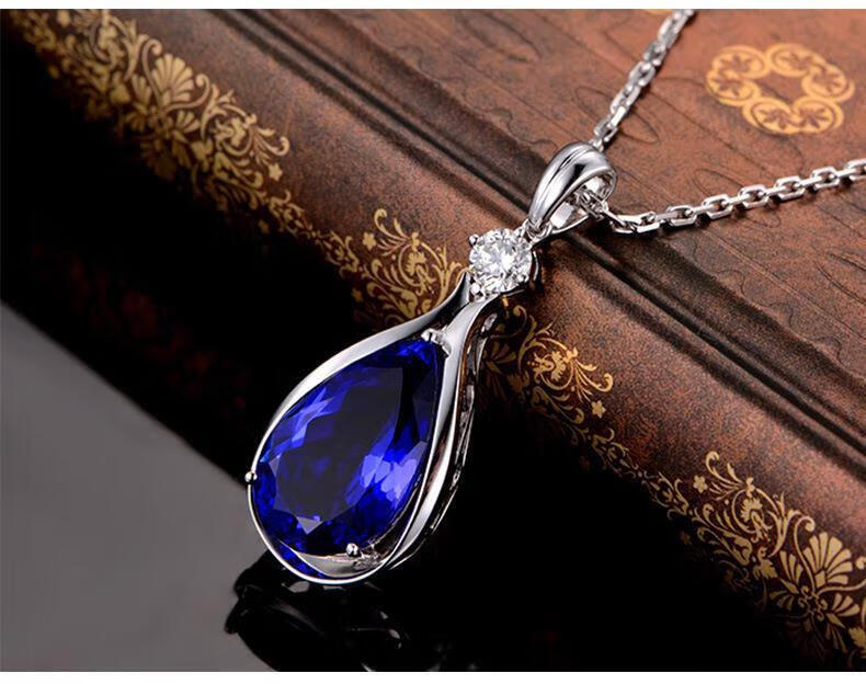 Cijia light luxury Korean version 13 carat 5A grade tanzanite pendant white plated 18 pendant set with diamond necklace birthday gift sapphire pendant + cross chain set price