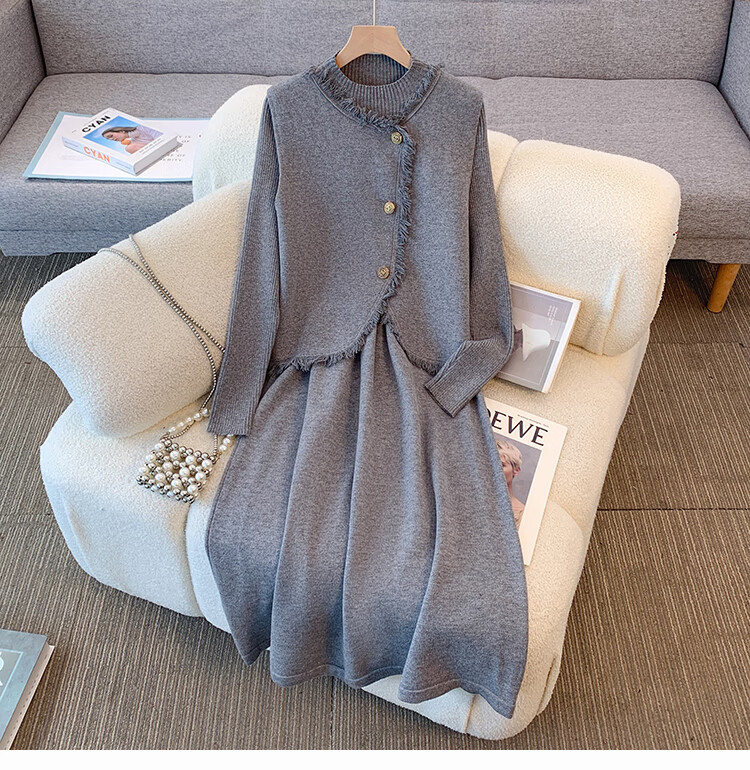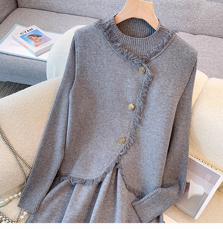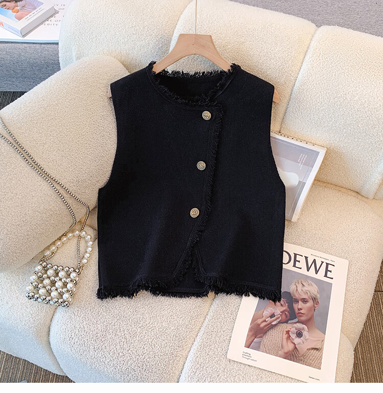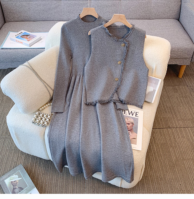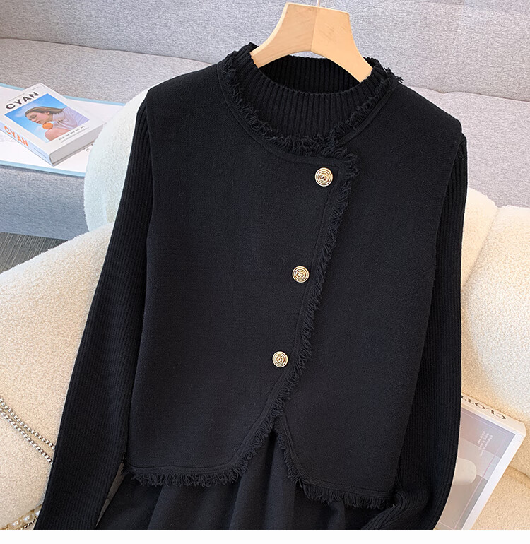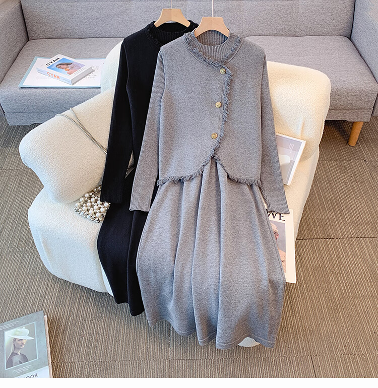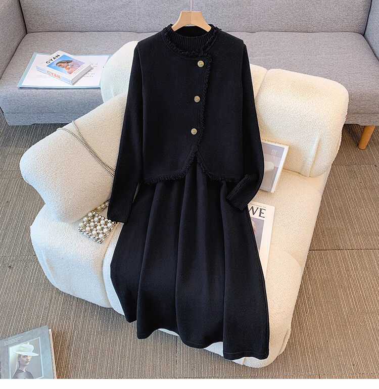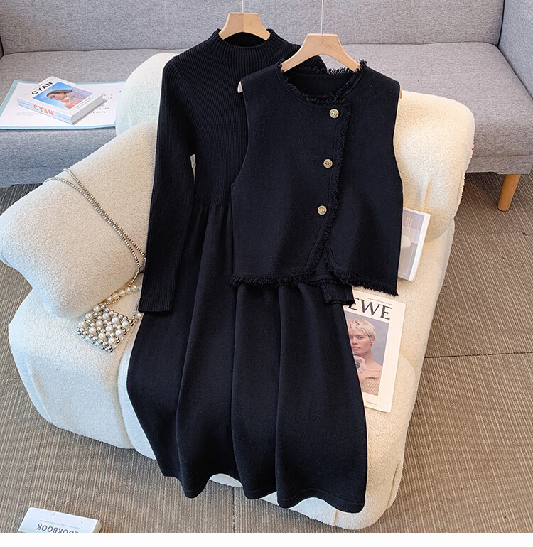 Keyin Dress Women's Suit 2025 Autumn and Winter New Style Small Fragrance Vest Jacket Bottoming Knitted Skirt Women Black Two-piece Set L Recommended 95-115Jin Jin equals 0.5 kg