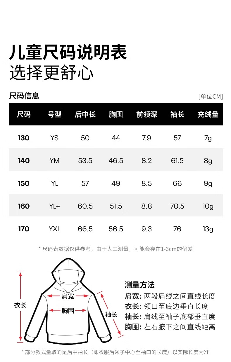 China (cm) 165 / 88-90 170 / 96-98 175 / 108-110 180 / 118-122 185 / 126-130