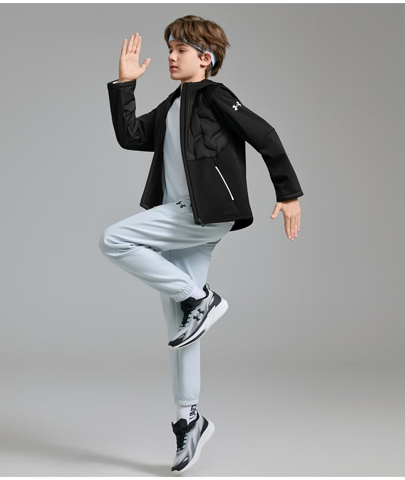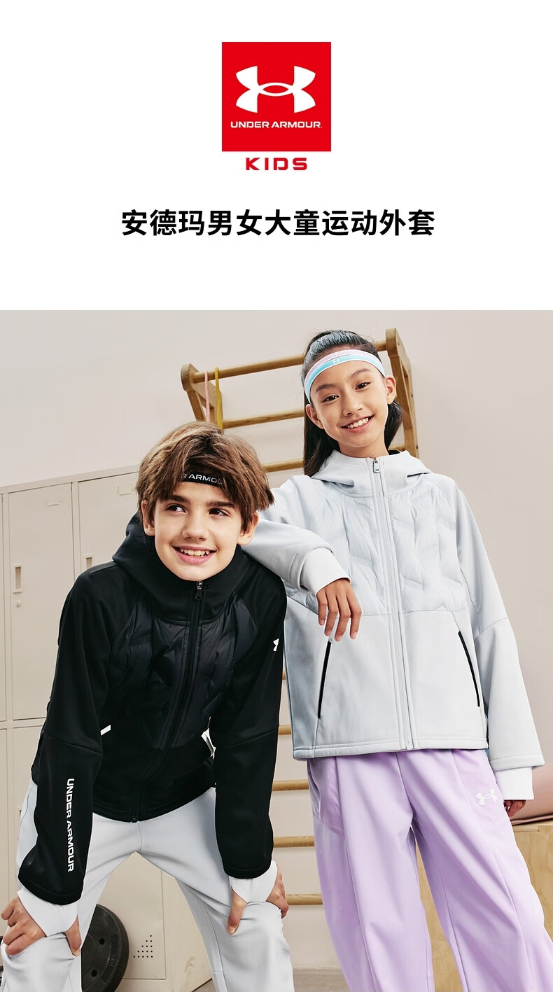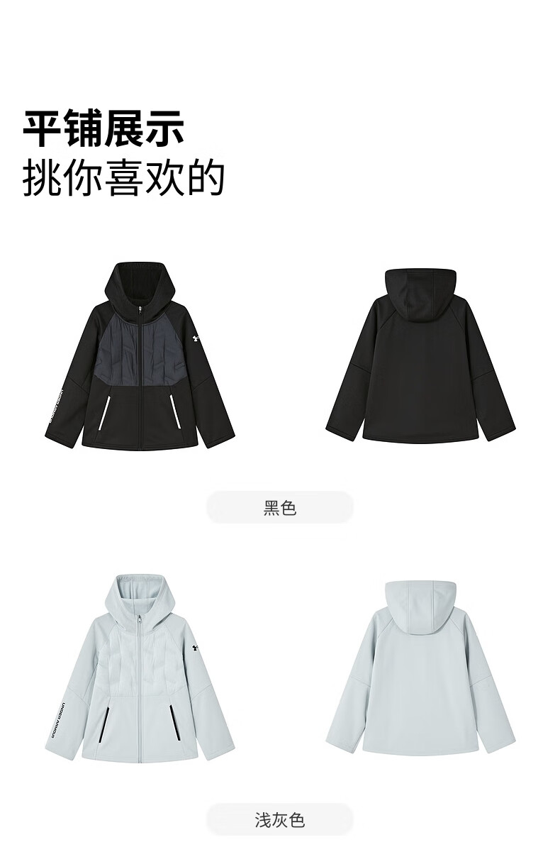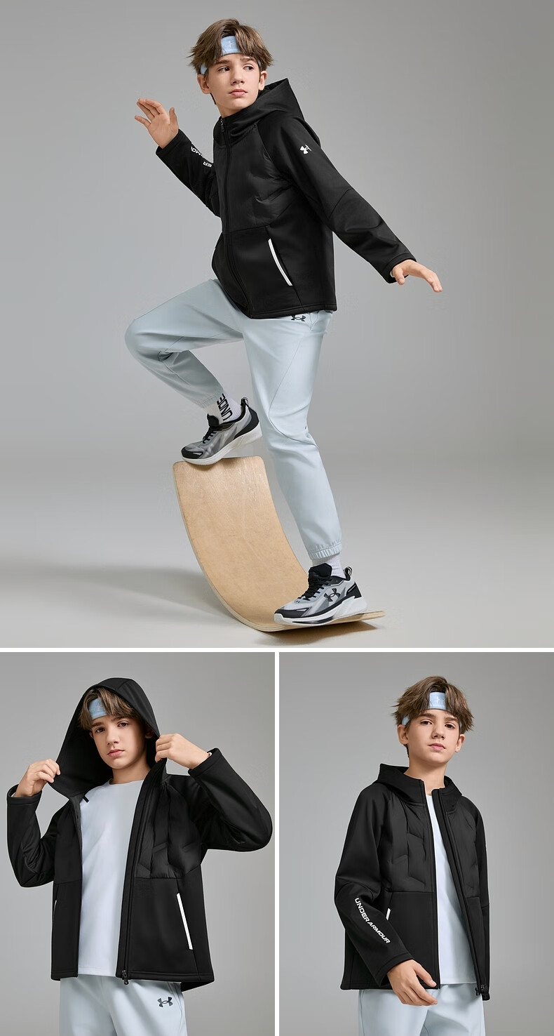 Under Armor Children's Clothing Children's Jackets Men's and Women's Jackets Winter Velvet Warm Hooded Sports Jacket 254324103 Black 170