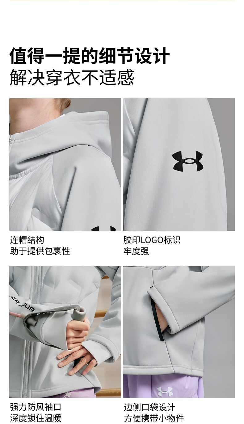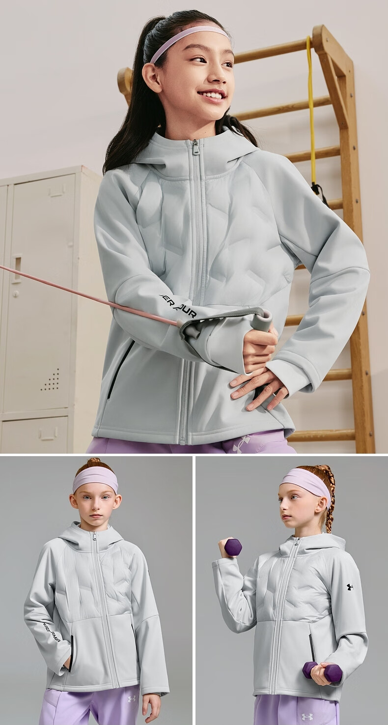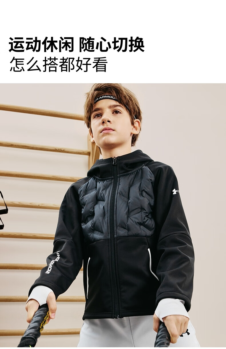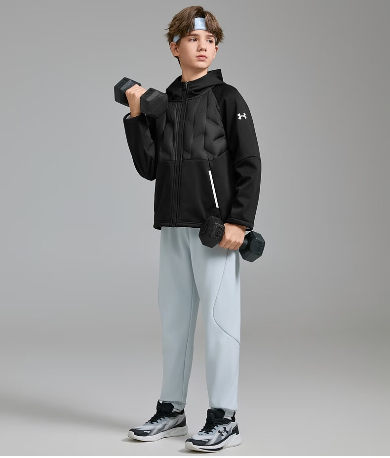 Under Armor Children's Clothing Children's Jackets Men's and Women's Jackets Winter Velvet Warm Hooded Sports Jacket 254324103 Black 170