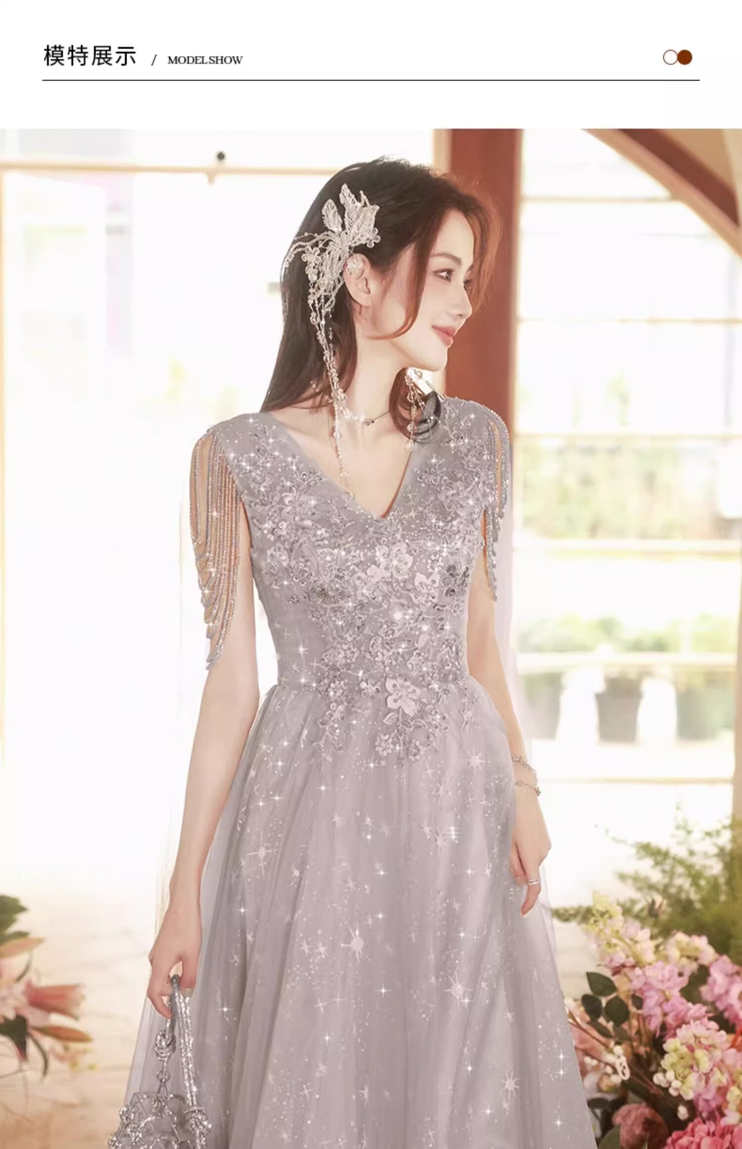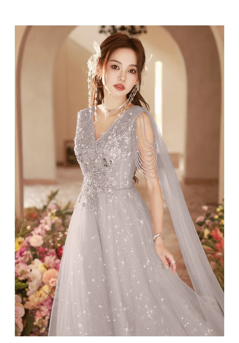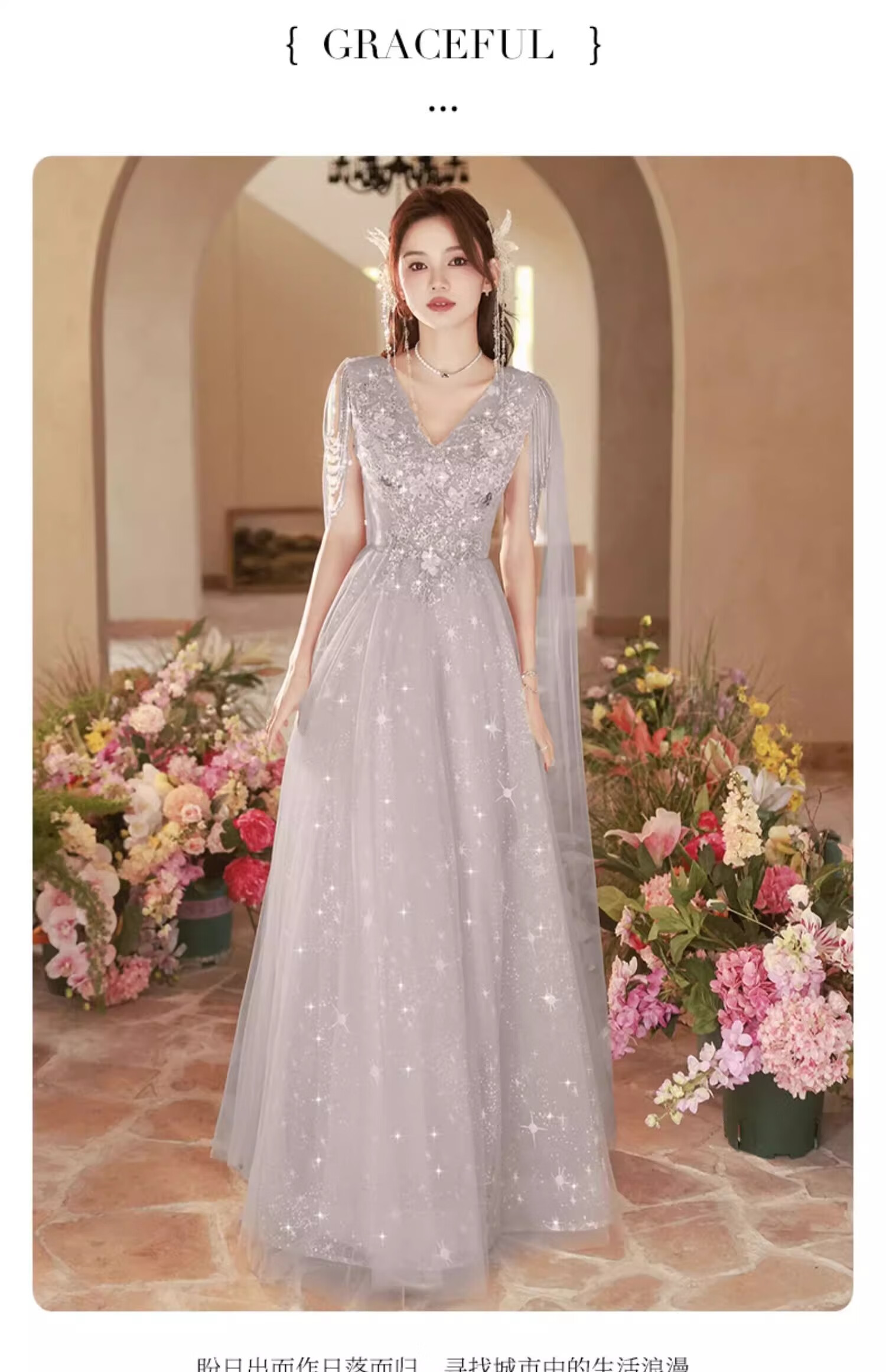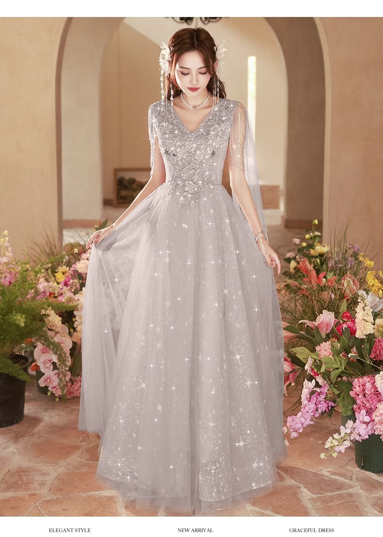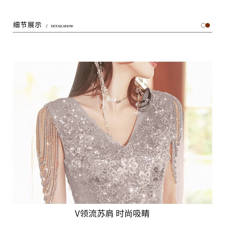 Yimimei 18-year-old high school student adult dress female high-end princess dress large size banquet sequin birthday party summer long dress XS