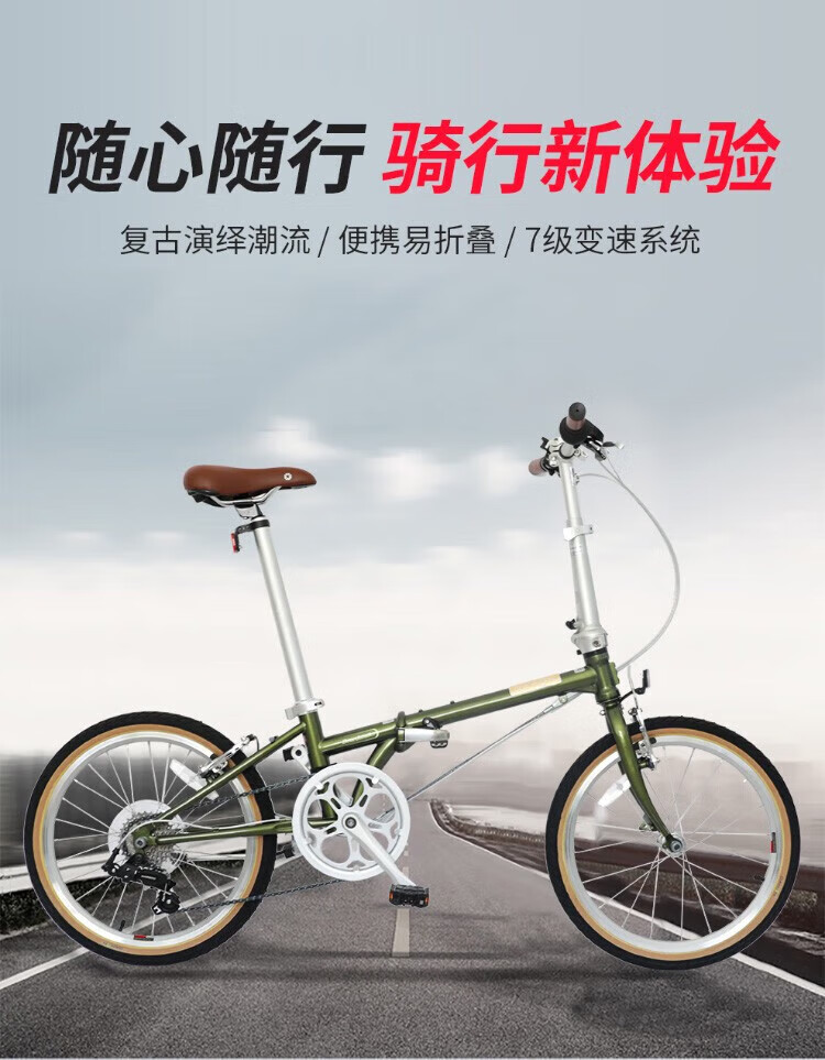 Dahang Dahang Folding Bike D7 Retro Folding Bicycle 20 Inch 7 Speed Urban Men's and Women's Suitable Yellow