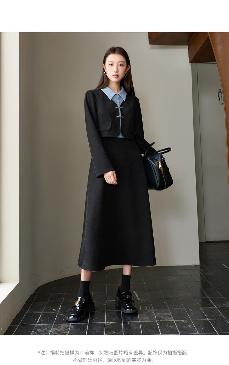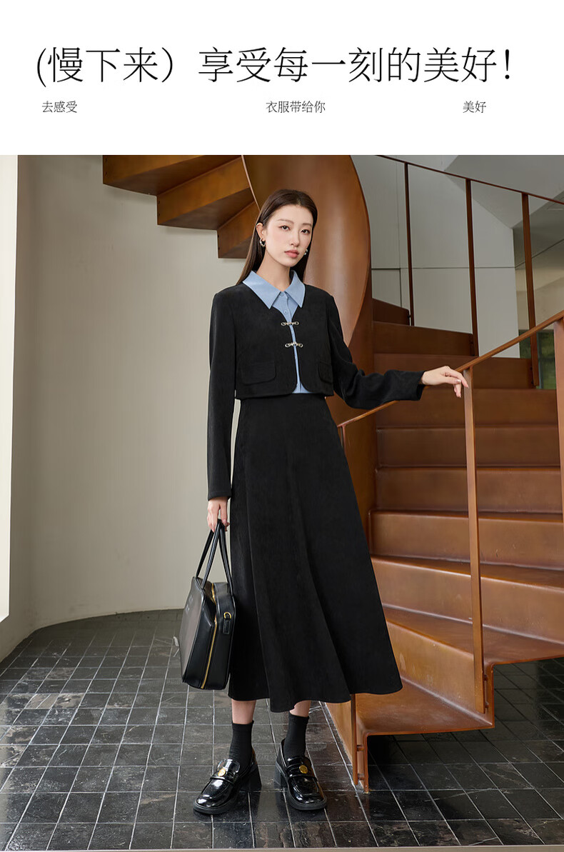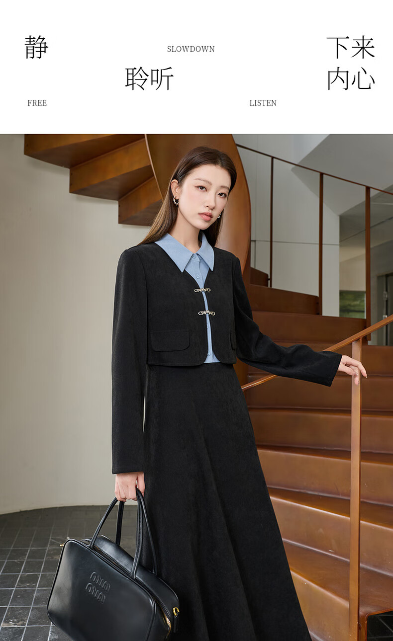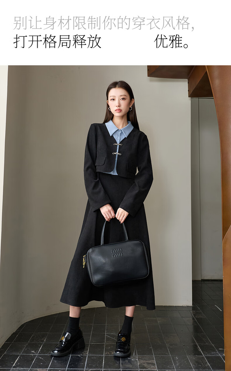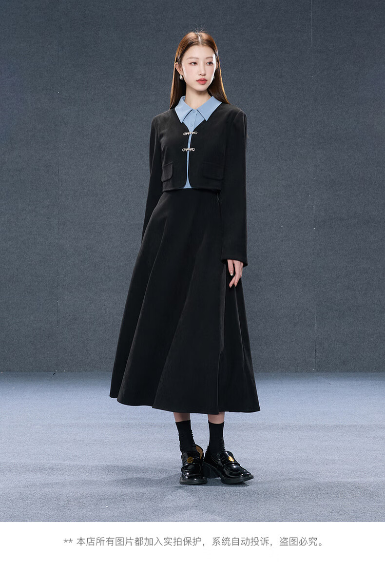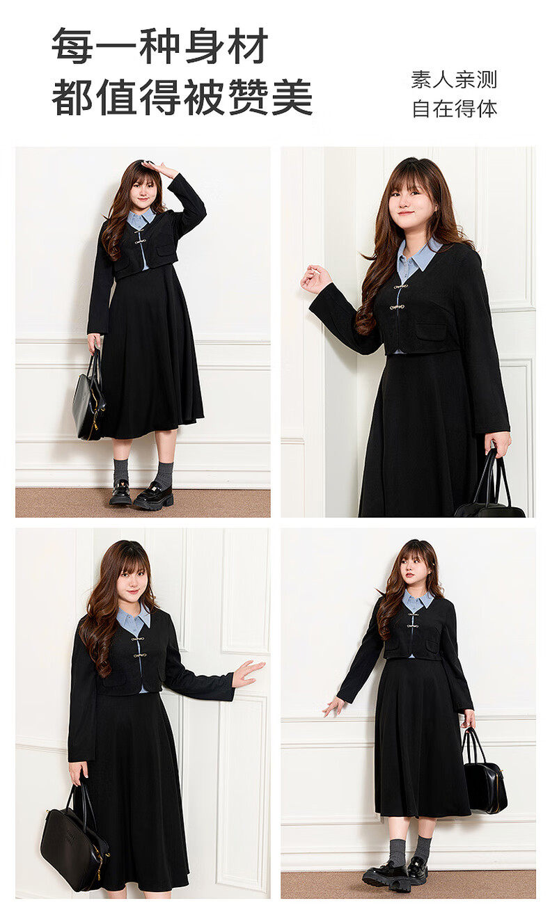 Sancai Ruochao plus size women's clothing 2025 winter new fake two-piece dress shirt collar long sleeves high waist fat MM classic black 2XL 175/100B