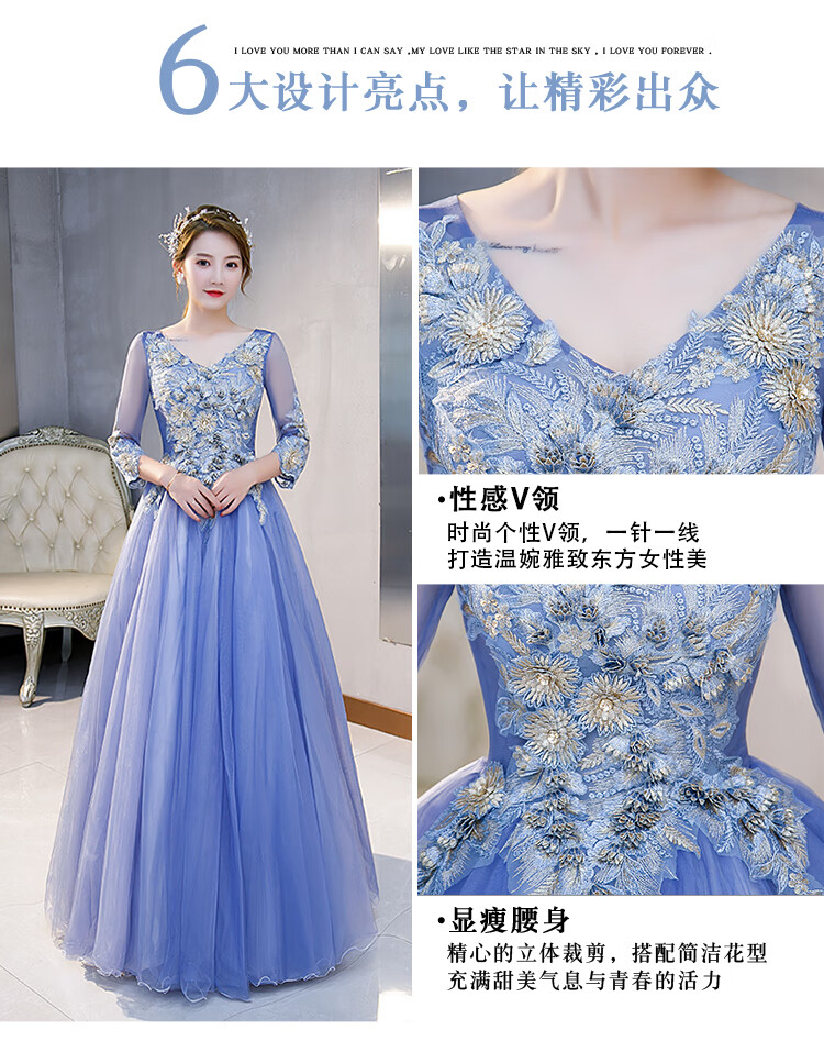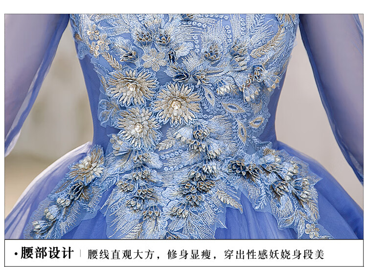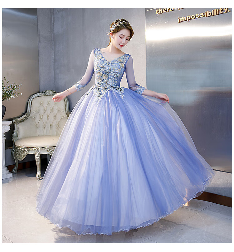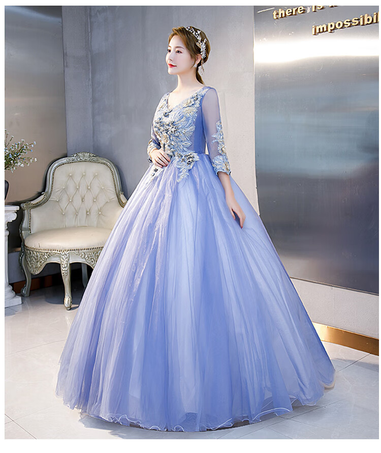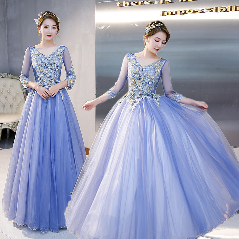 Orange Shangli Vocal Performance Costume Female Student Art Exam Host Long Puffy Evening Dress Gray Blue One Size Customized Size Contact Customer Service for Exchange