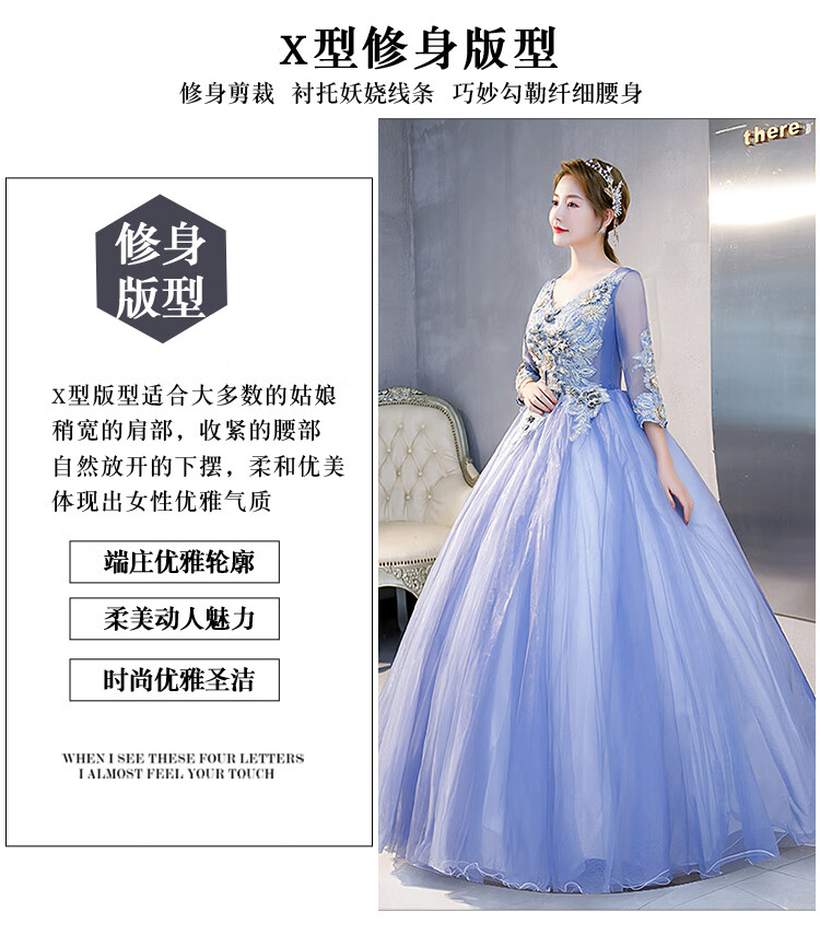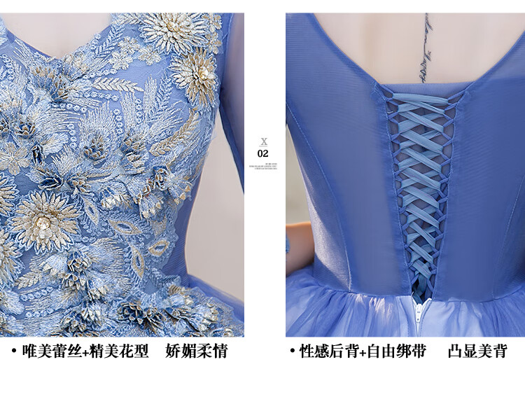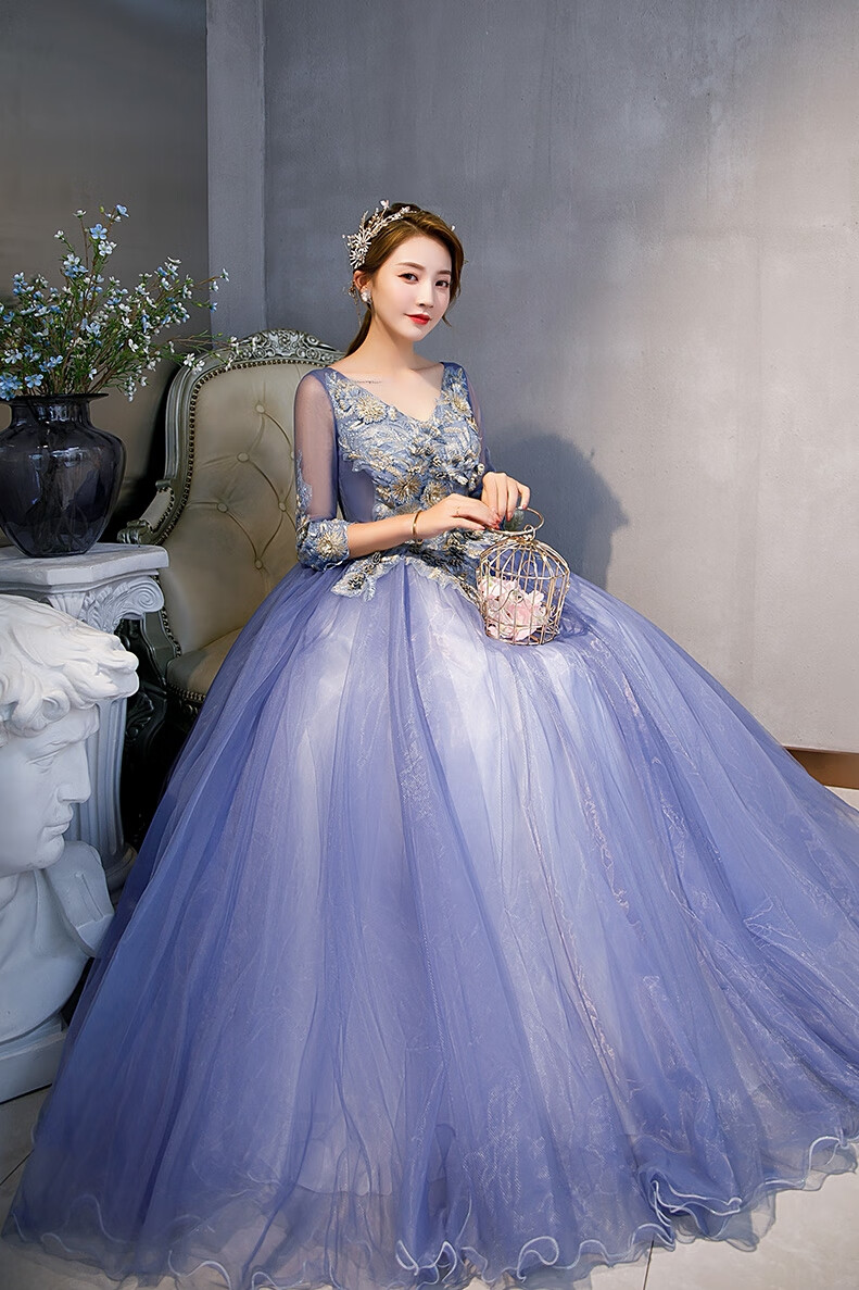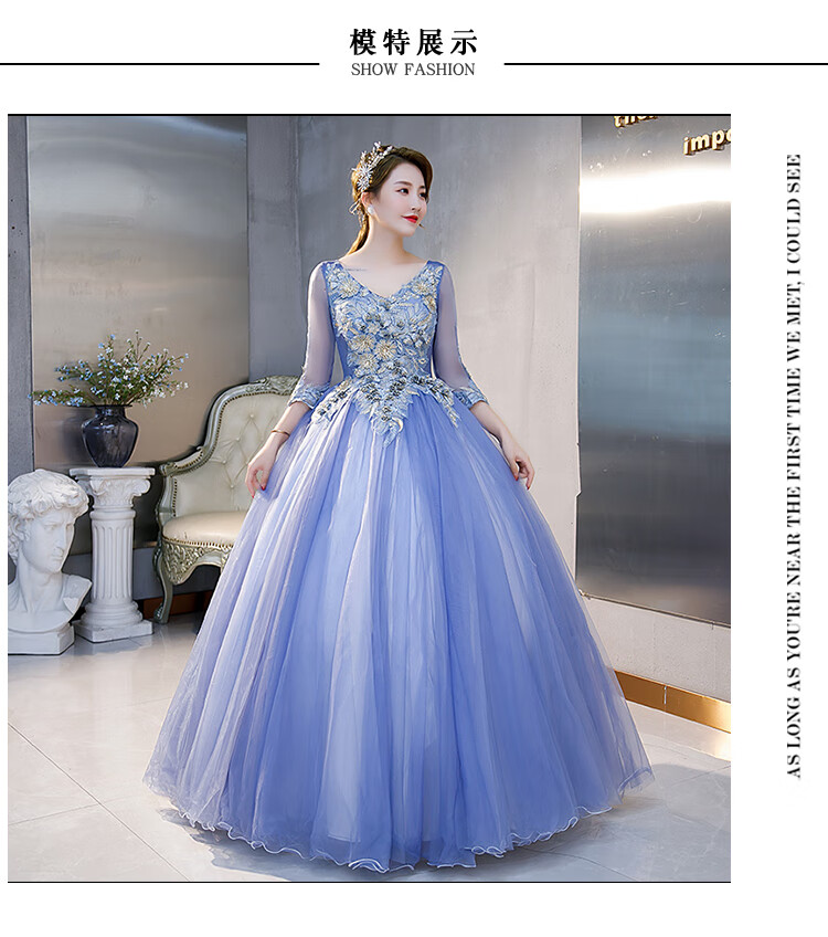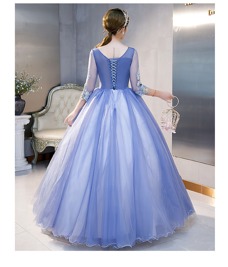 Orange Shangli Vocal Performance Costume Female Student Art Exam Host Long Puffy Evening Dress Gray Blue One Size Customized Size Contact Customer Service for Exchange