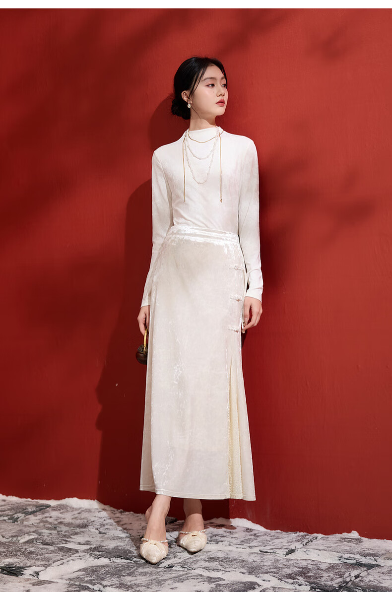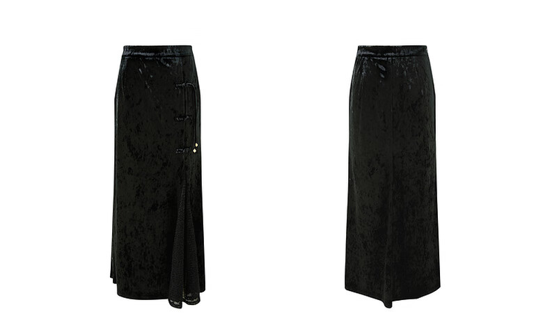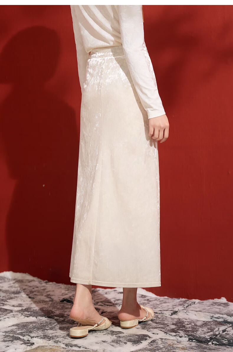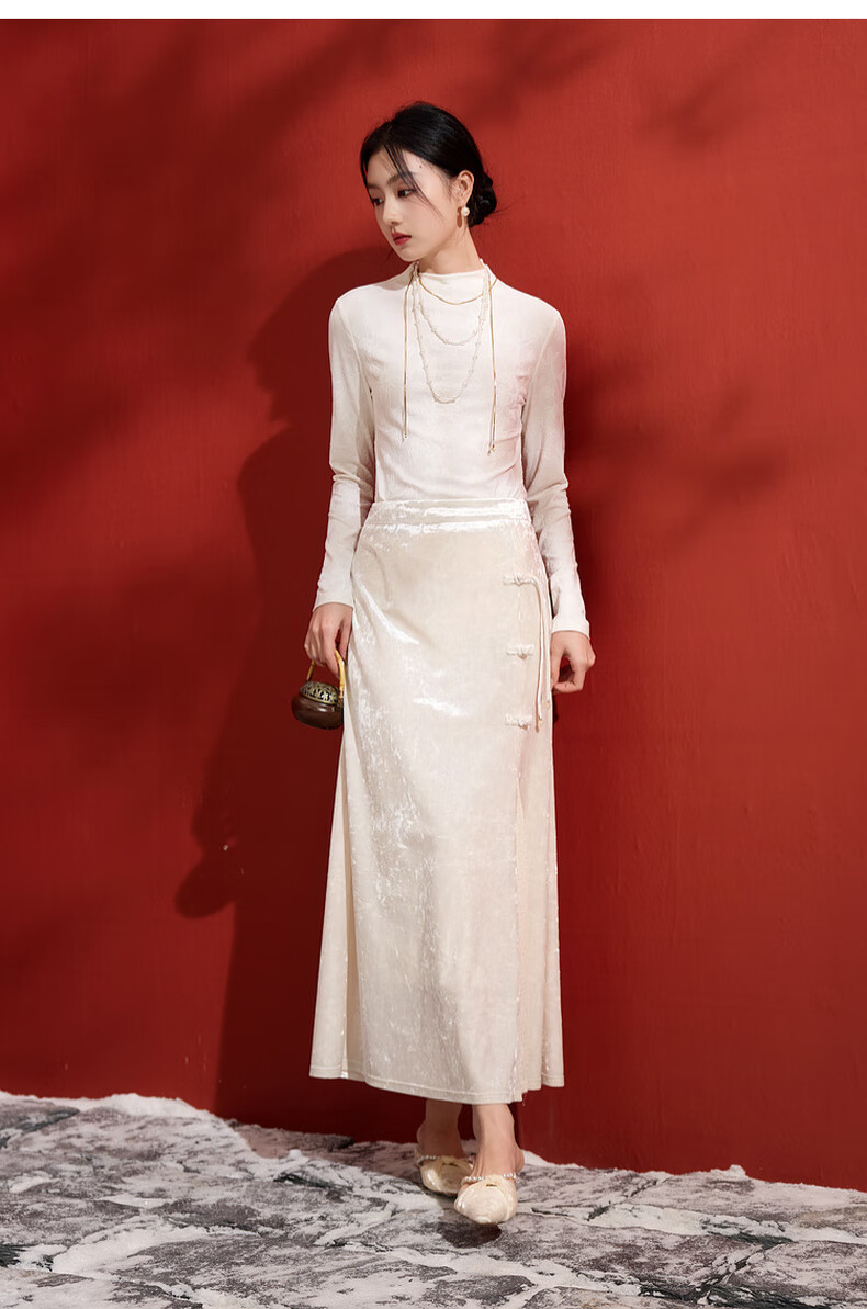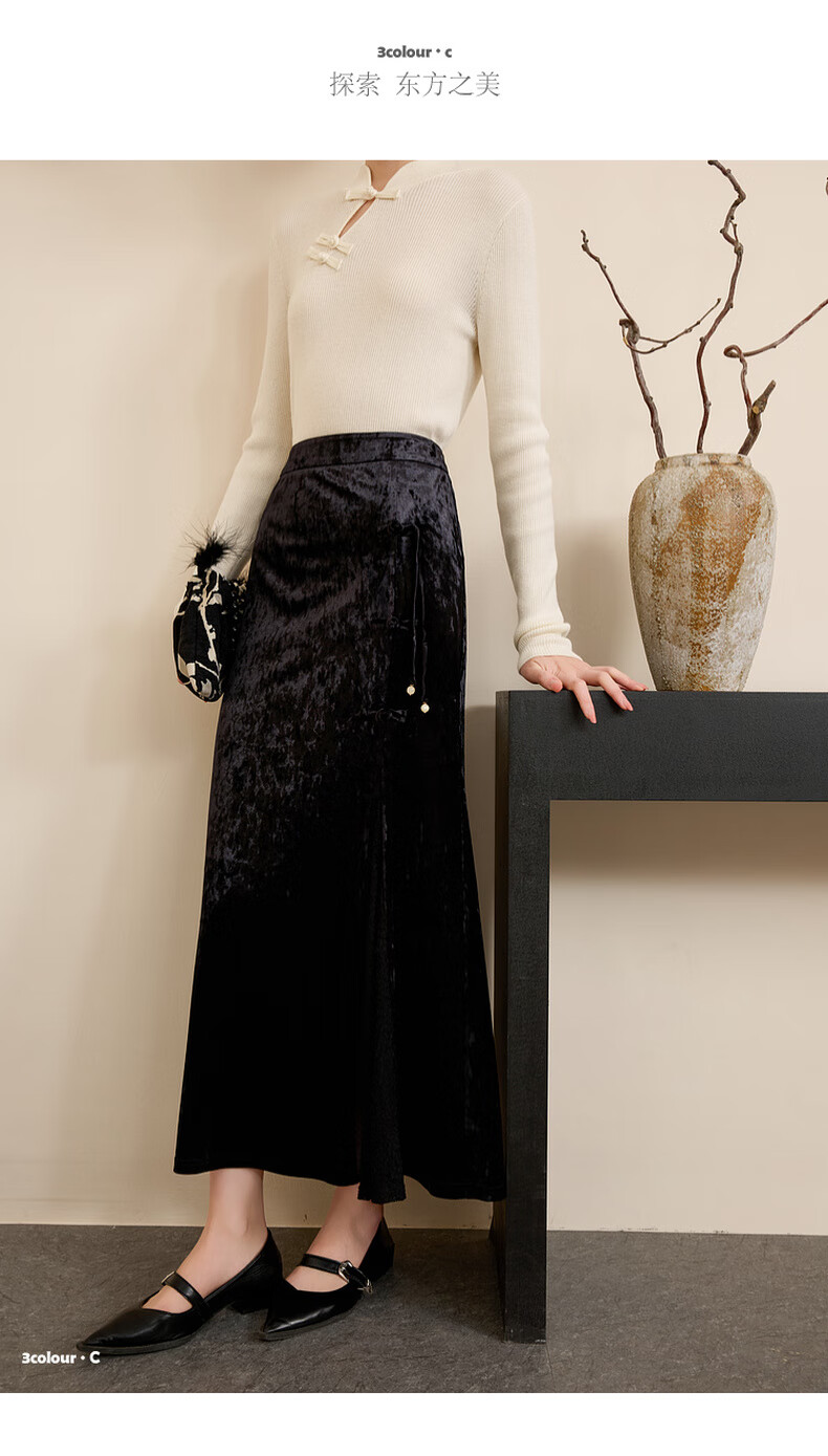Sancai Yueying Shuanghua 2025 Winter New Ice Flower Velvet Skirt A-line Skirt High Waist Long Skirt C Classic Black S 155/64A