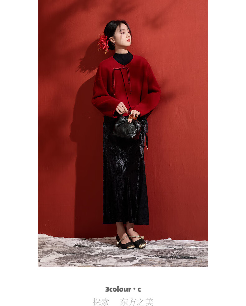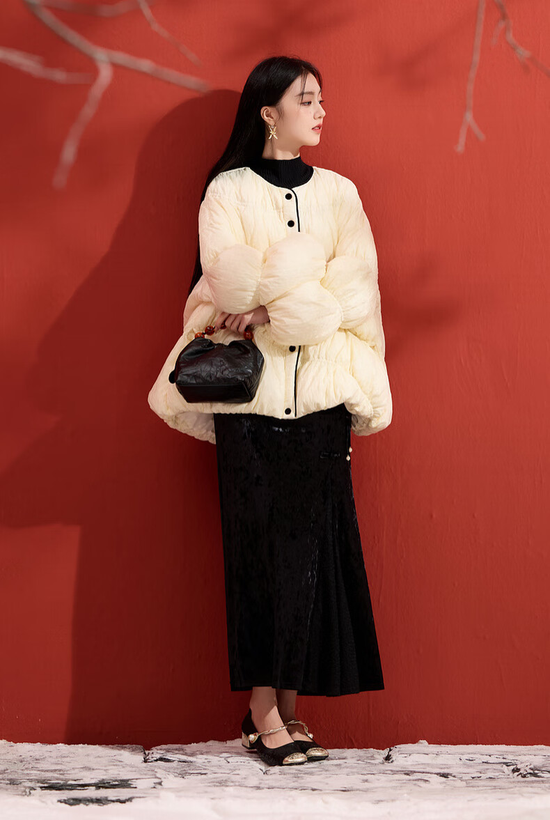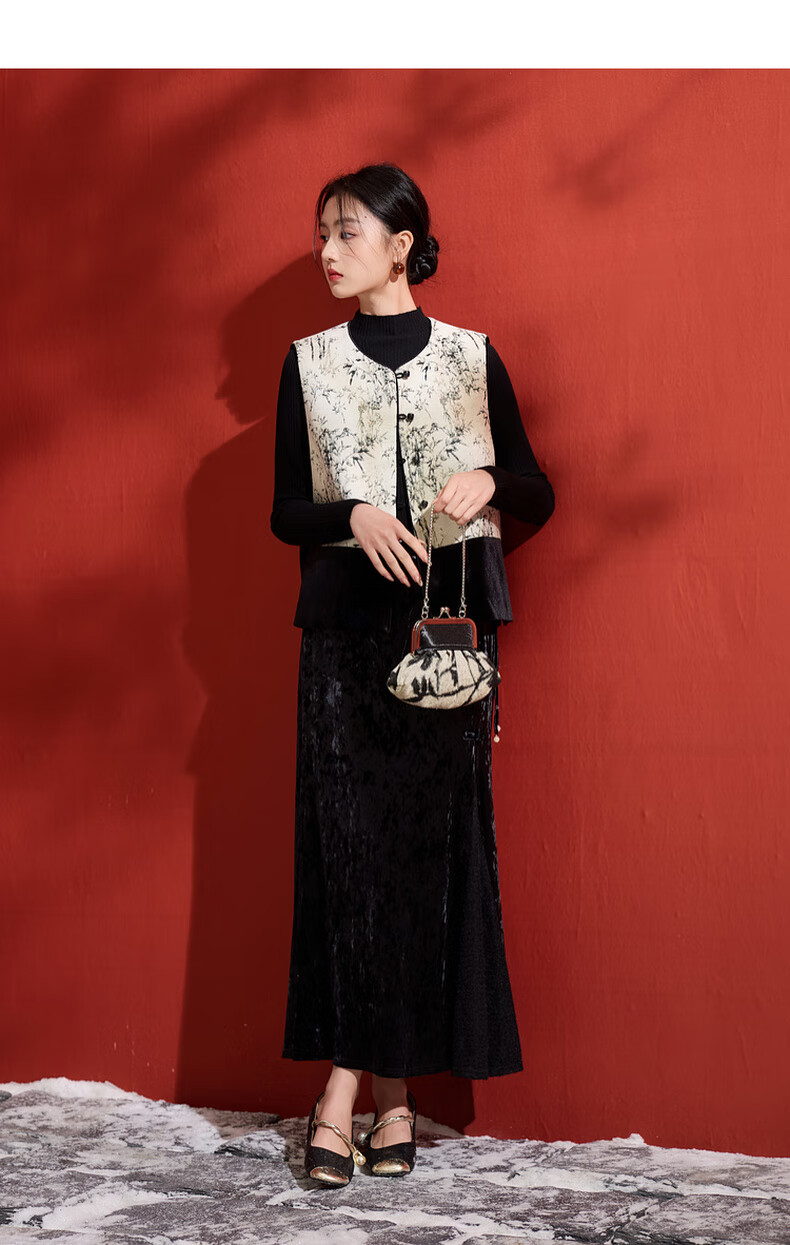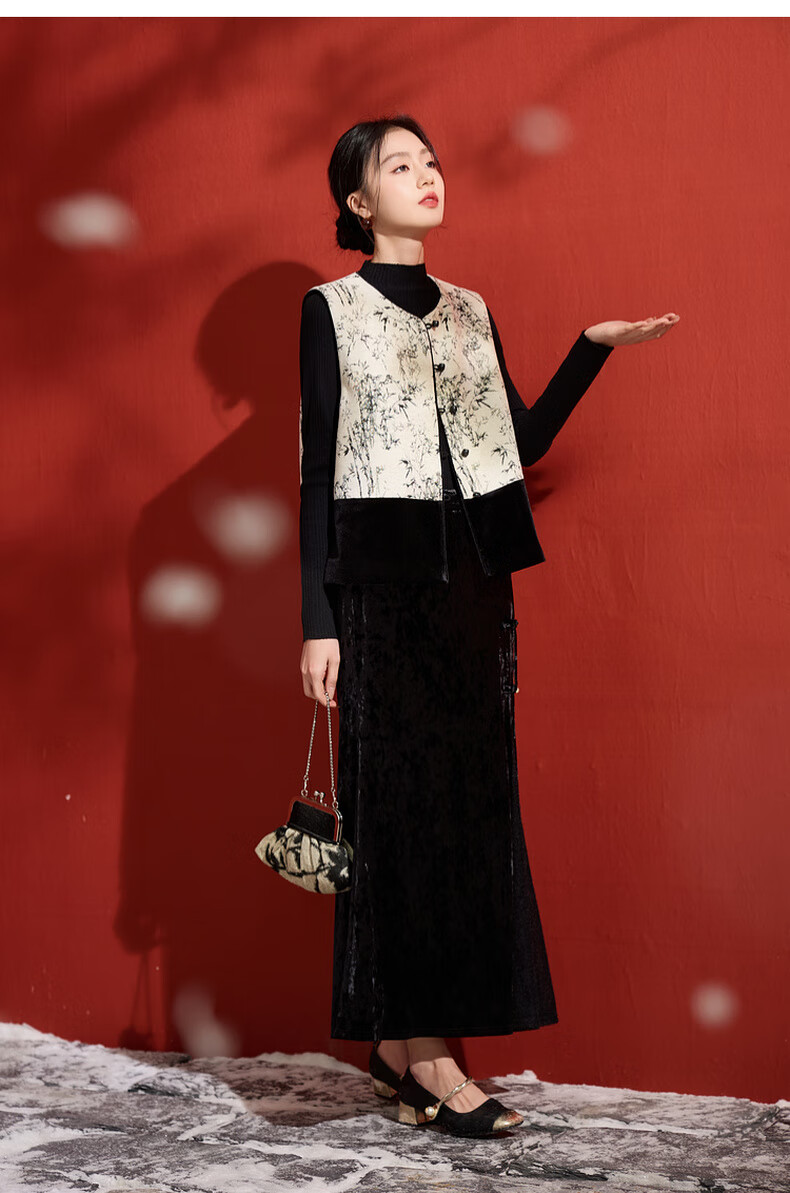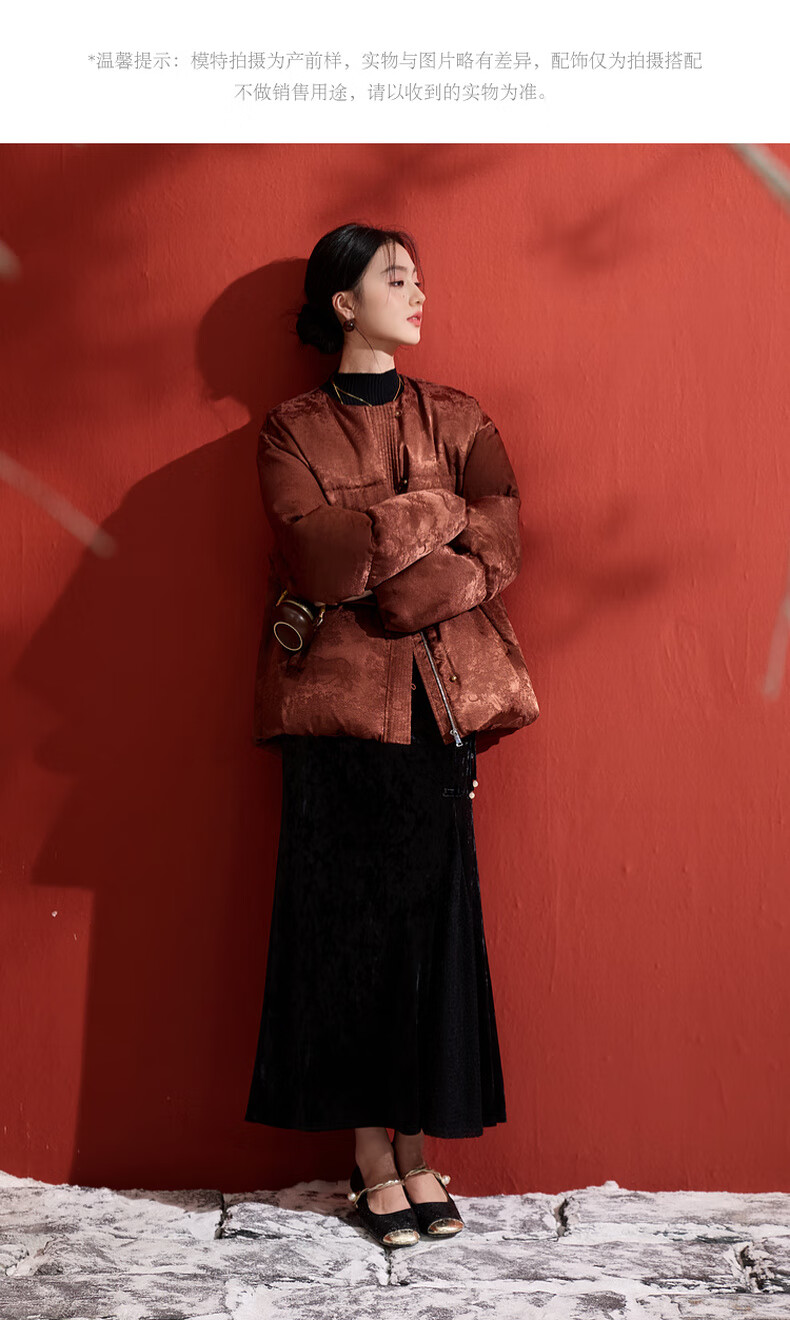 Sancai Yueying Shuanghua 2025 Winter New Ice Flower Velvet Skirt A-line Skirt High Waist Long Skirt C Classic Black S 155/64A