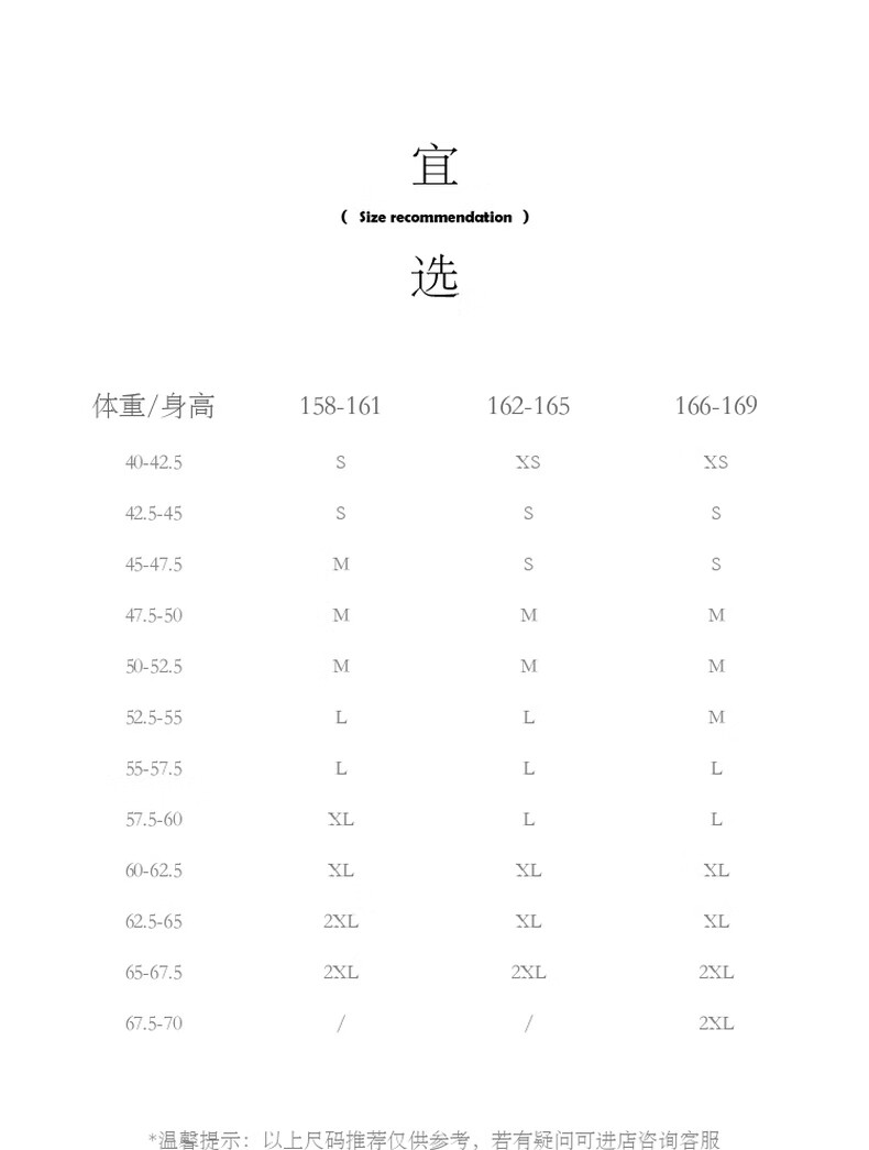China (cm) 160-165/84-86 165-170 / 88-90 167-172 / 92-96 168-173 / 98-102 170-176 / 106-110