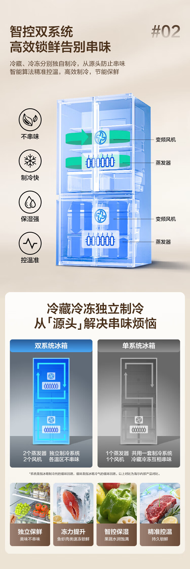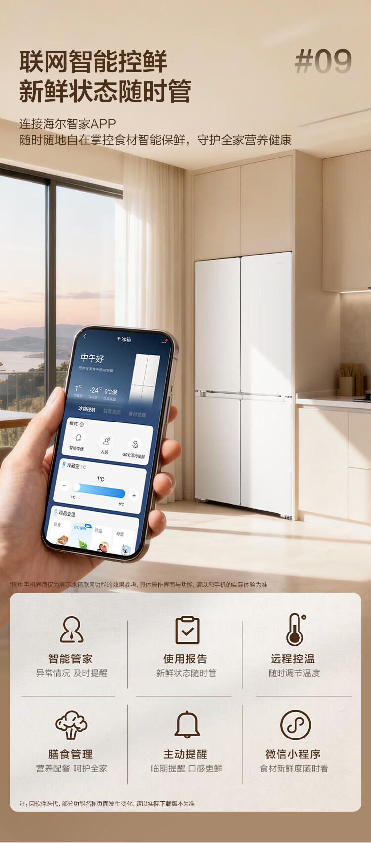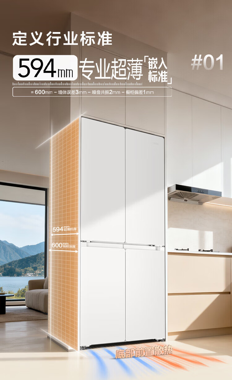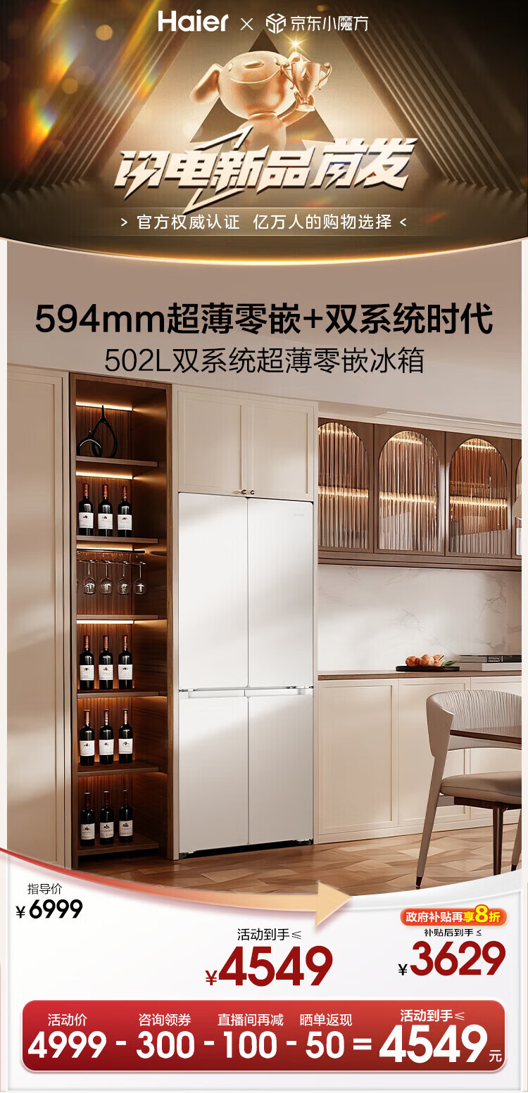 Haier refrigerator 25 years new model 502 liter dual system ultra-thin zero-embedded 60cm household four-door cross door commander lazy person first-class energy efficiency frequency conversion national subsidy 521 global sterilization and purification + oxygen barrier dry and wet storage + 594mm ultra-thin