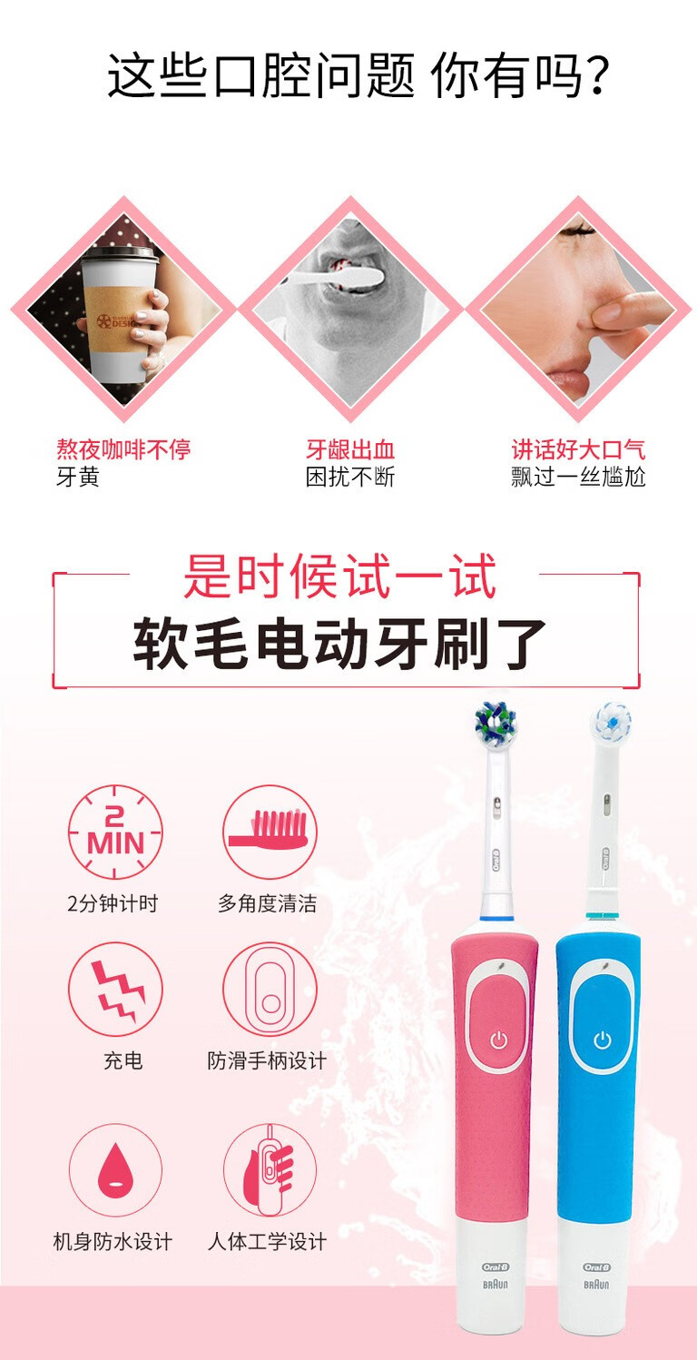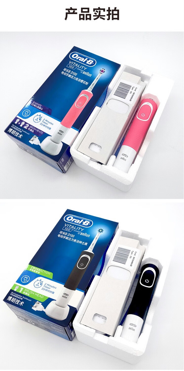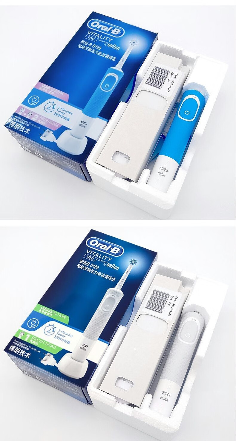 Oral-B Oral-B electric toothbrush D100 adult male and female couple set sonic rotating automatic rechargeable D100 blue + 4 adapting brush heads + toothbrush box cover