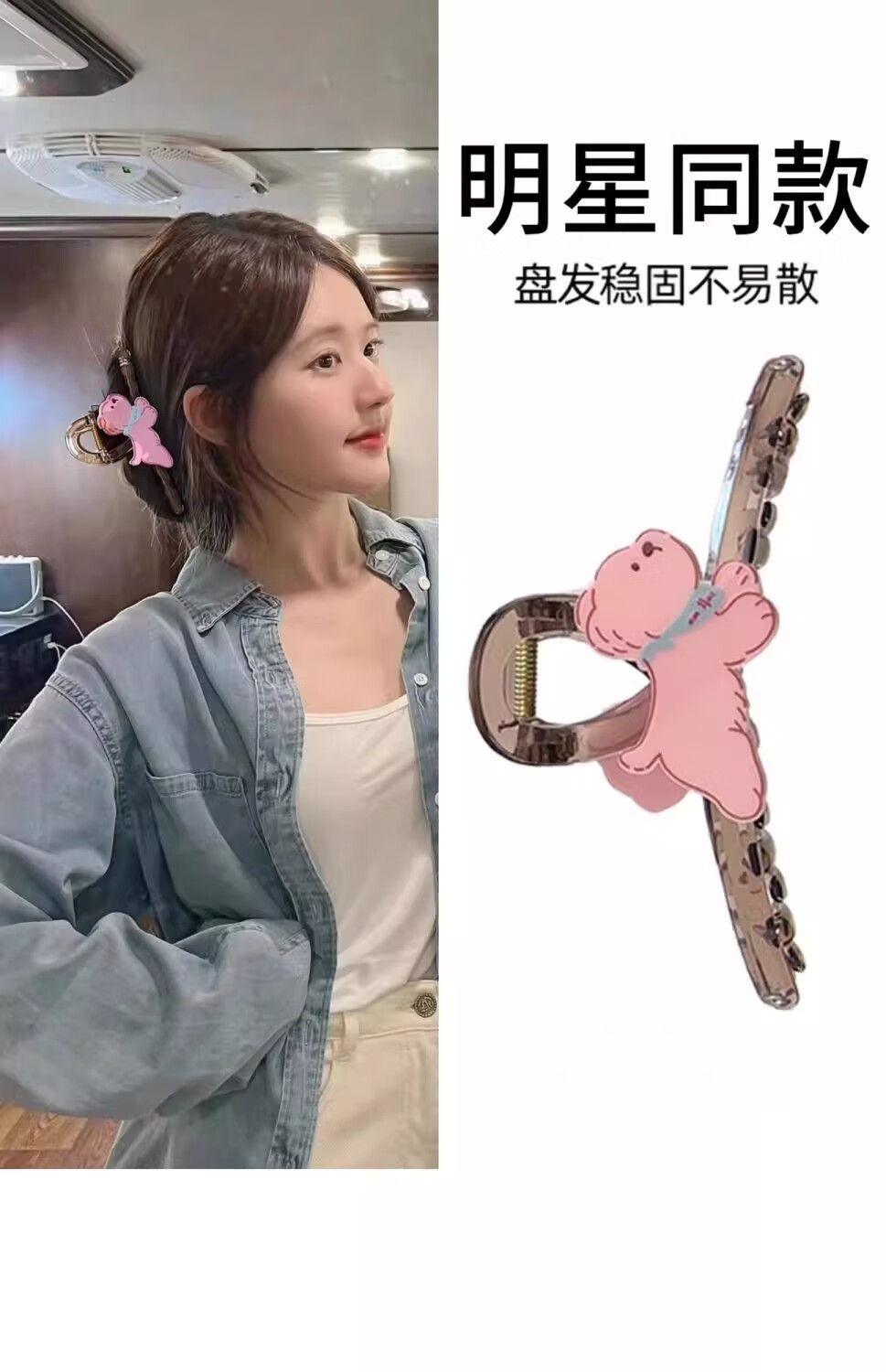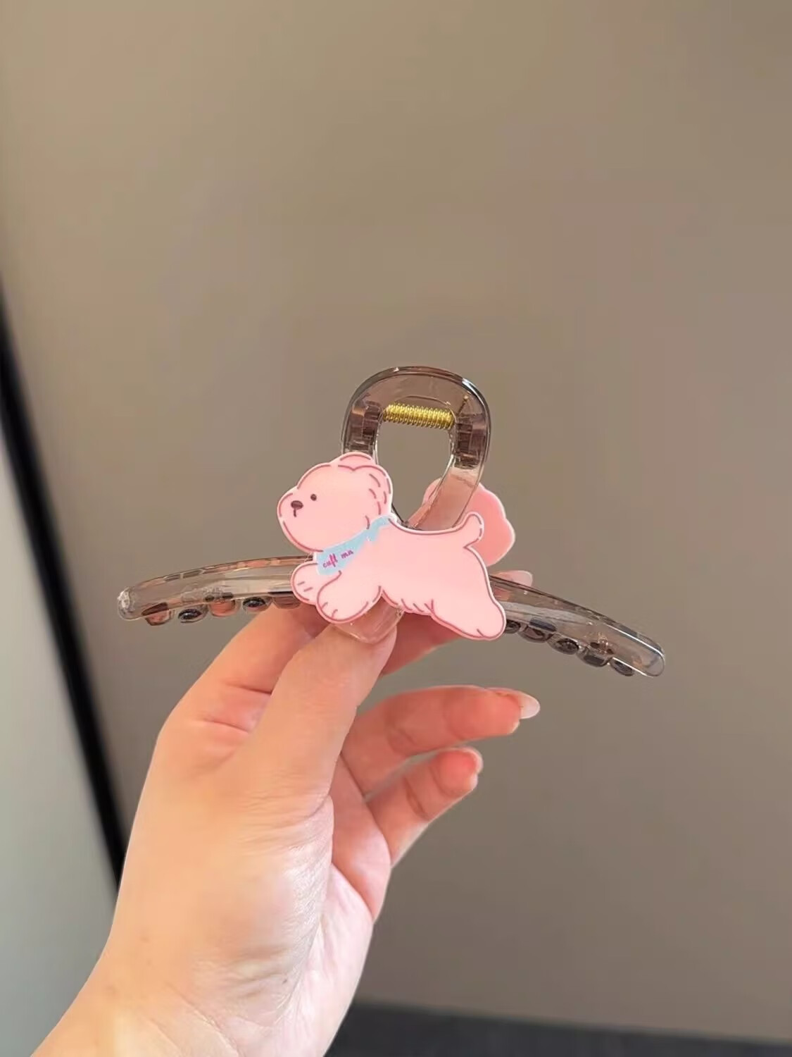 Zhao Lusi's same cute puppy large size claw clip for women, high-end 2025 new cartoon shark clip hair clip, cat double-sided see-through brown hair clip, about 11cm