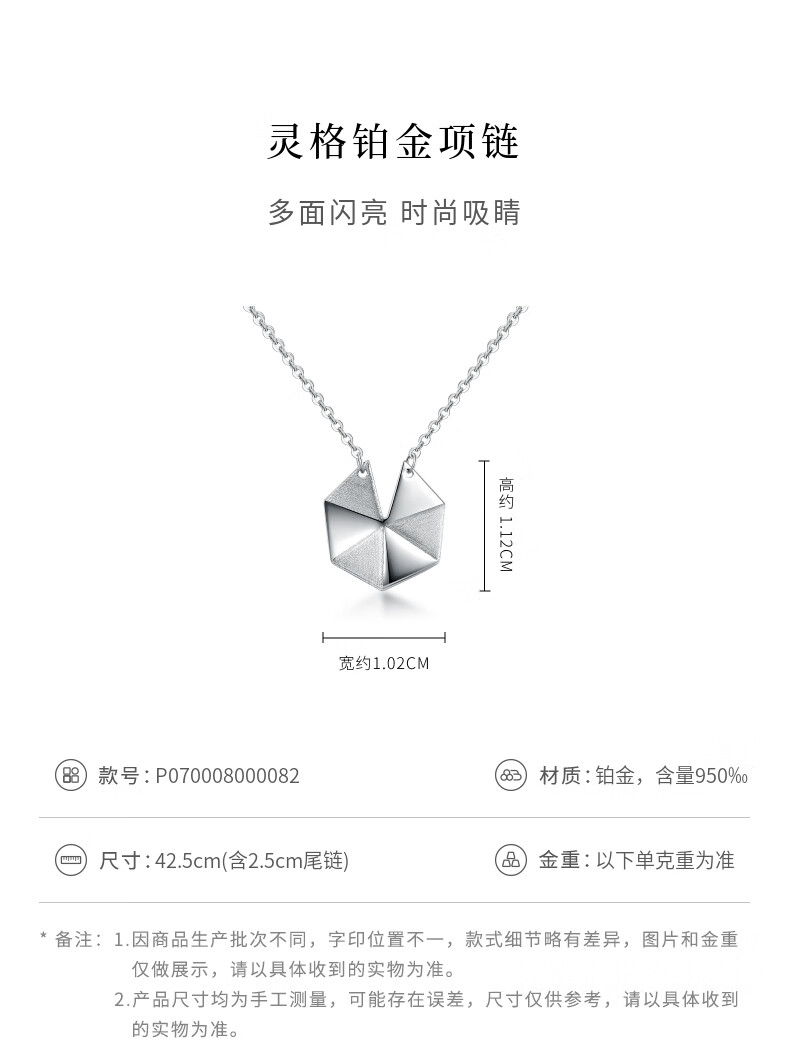 Laofengxiang Lingglasi simple and fashionable pt platinum necklace set chain unisex gift for men and women Priced Lingge necklace 42.50 2.96