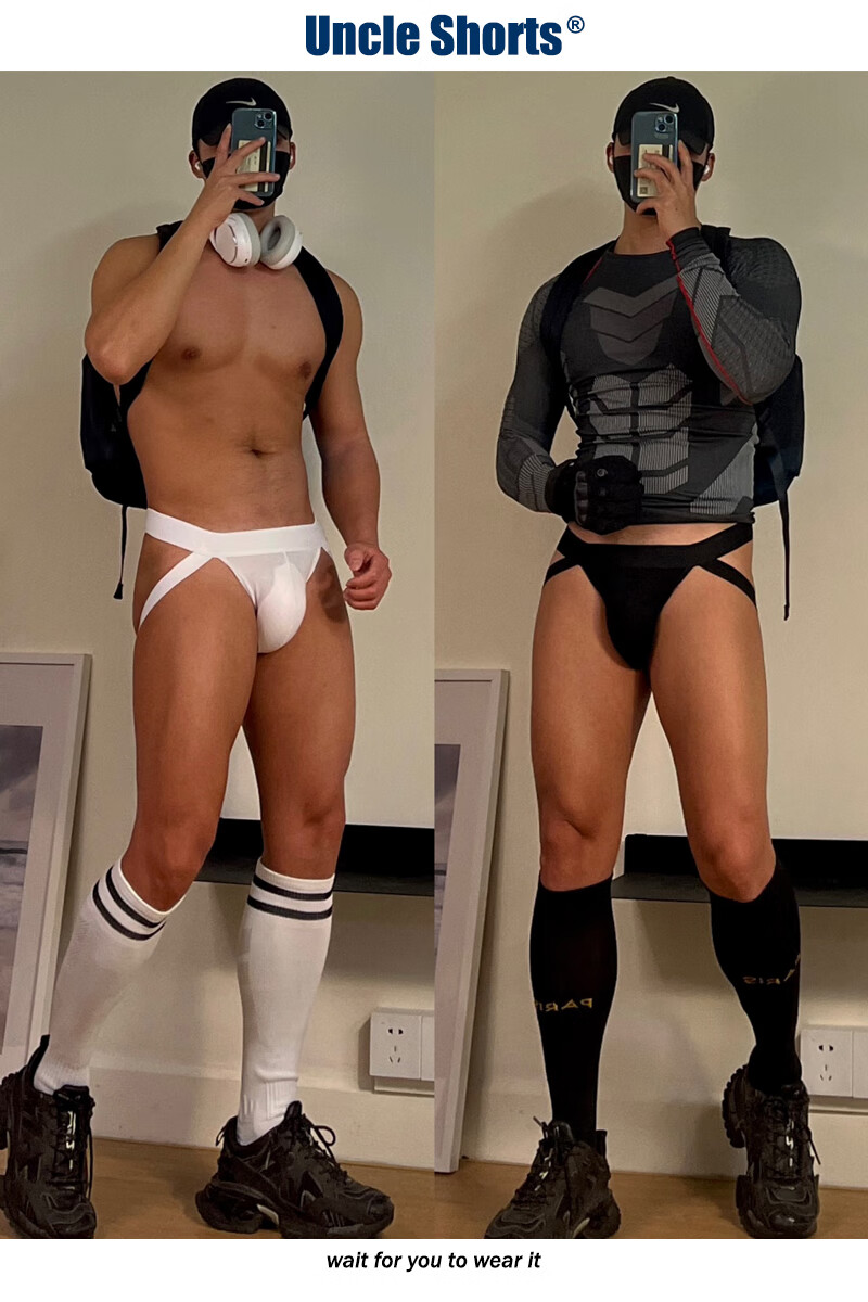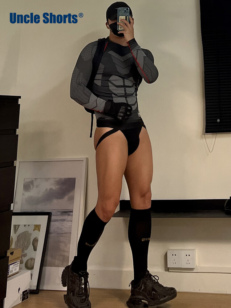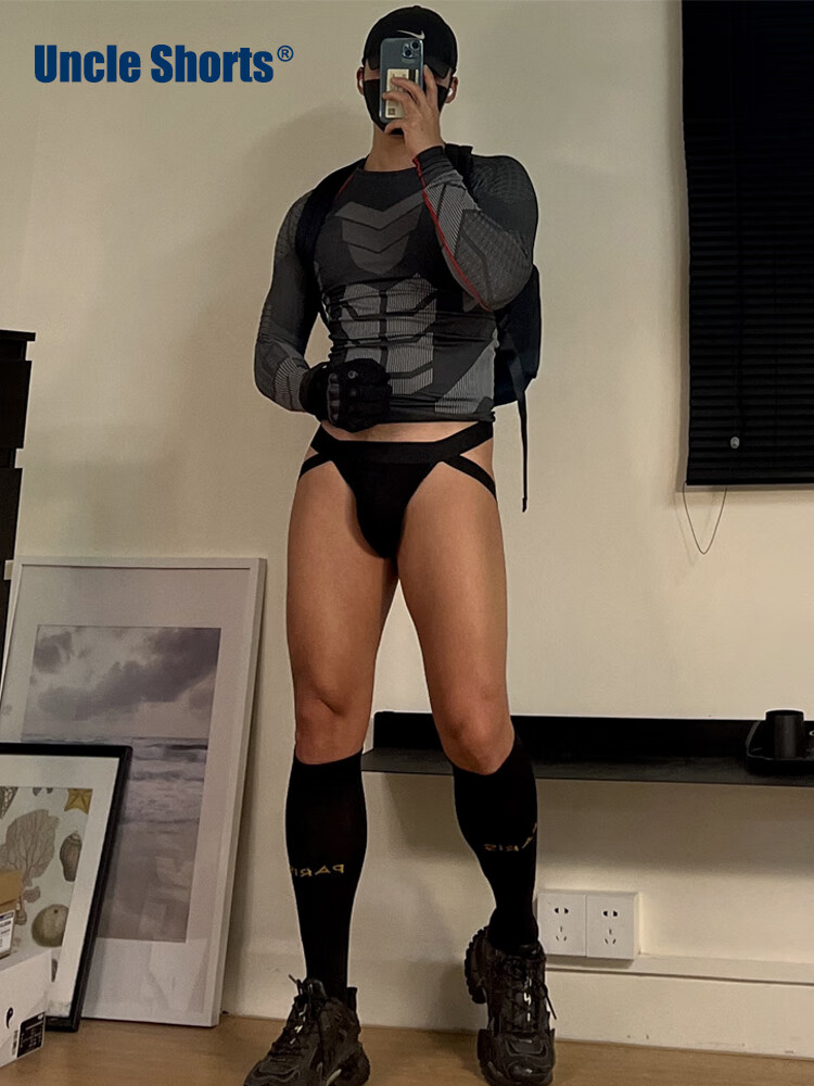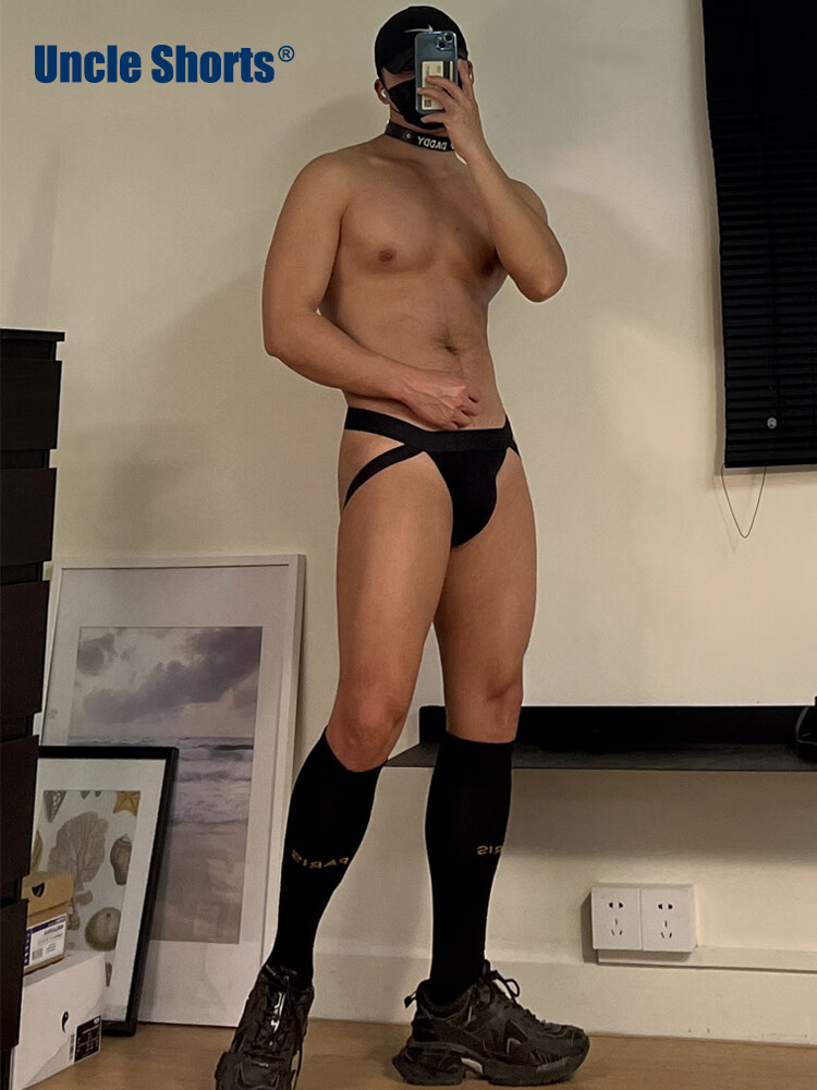 Uncle Shorts sexy sports thong men's cotton low-waisted leg straps butt lift triangle briefs black_Sporty sexy double briefs M_100-130Jin Jin equals 0.5 kg