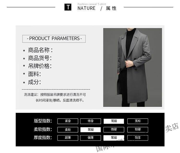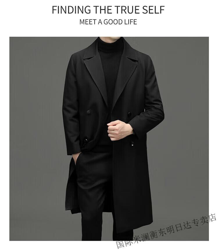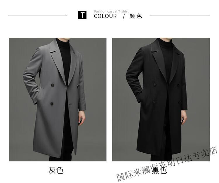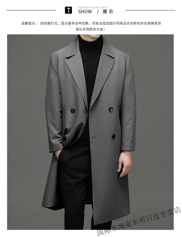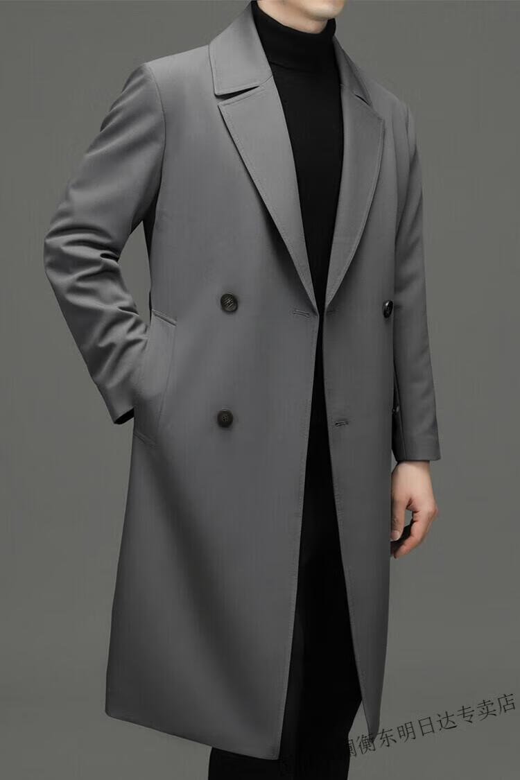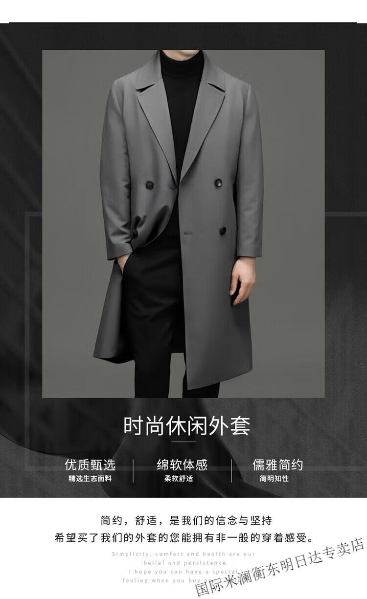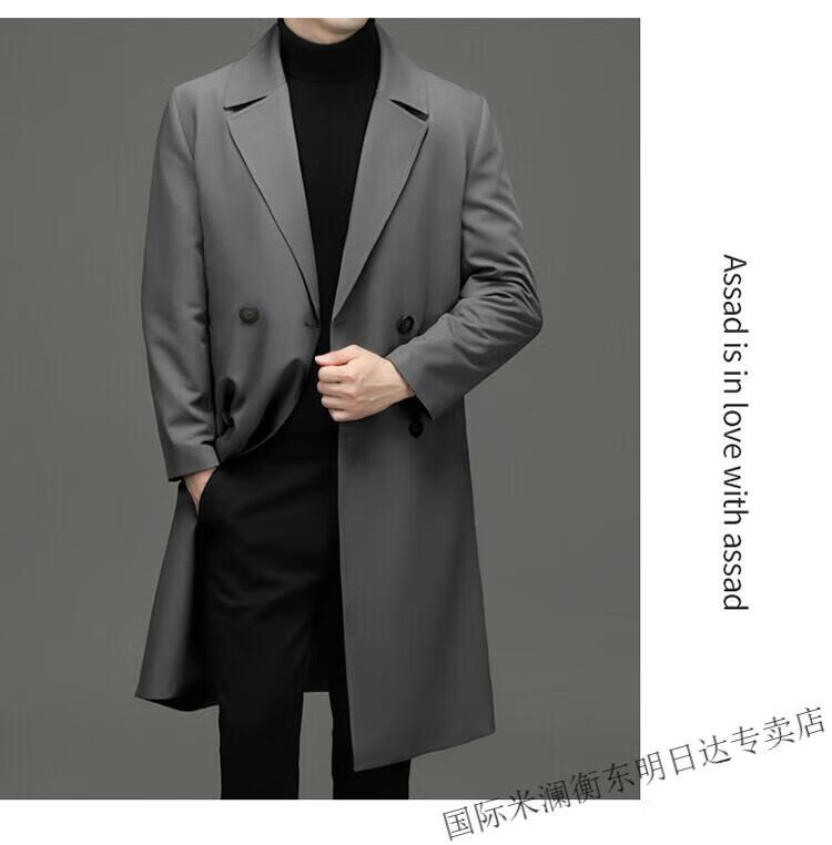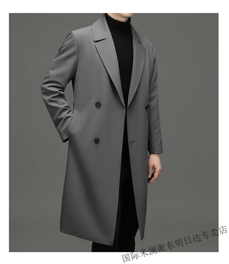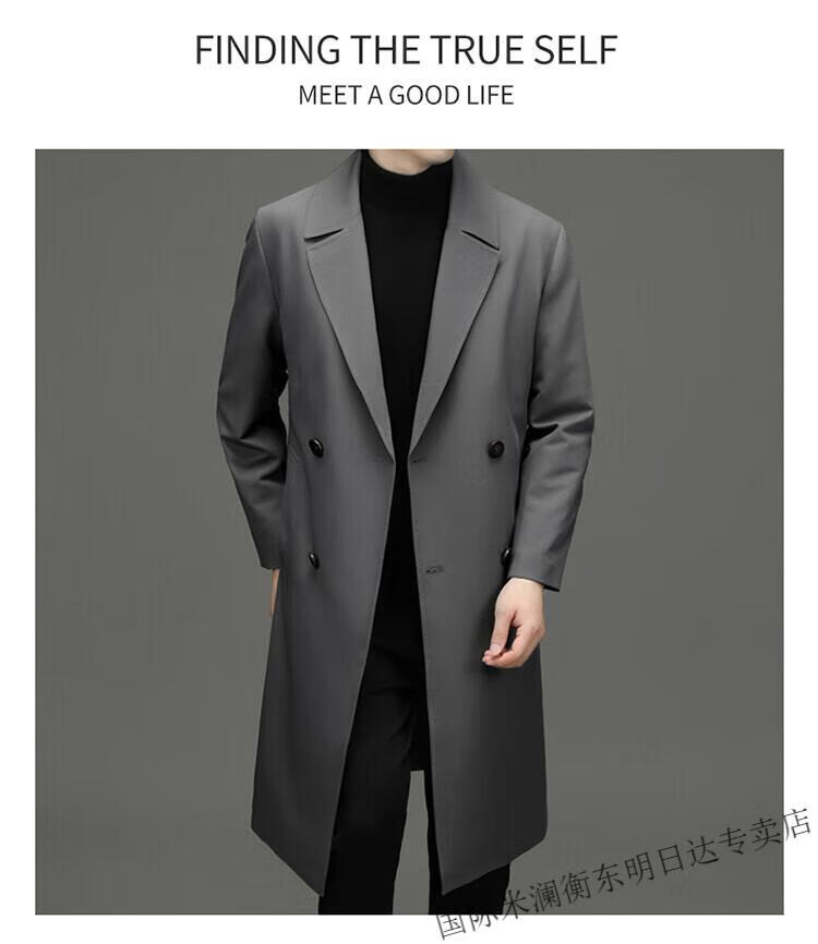 International Milan high-end light luxury long knee-length windbreaker for men autumn new suit collar coat business casual dad men's jacket gray (gift box) 3XL 190