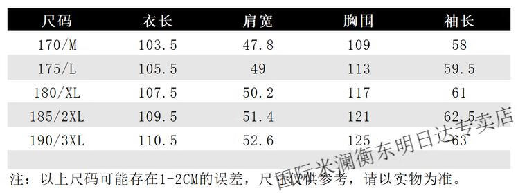 China (cm) 165 / 88-90 170 / 96-98 175 / 108-110 180 / 118-122 185 / 126-130