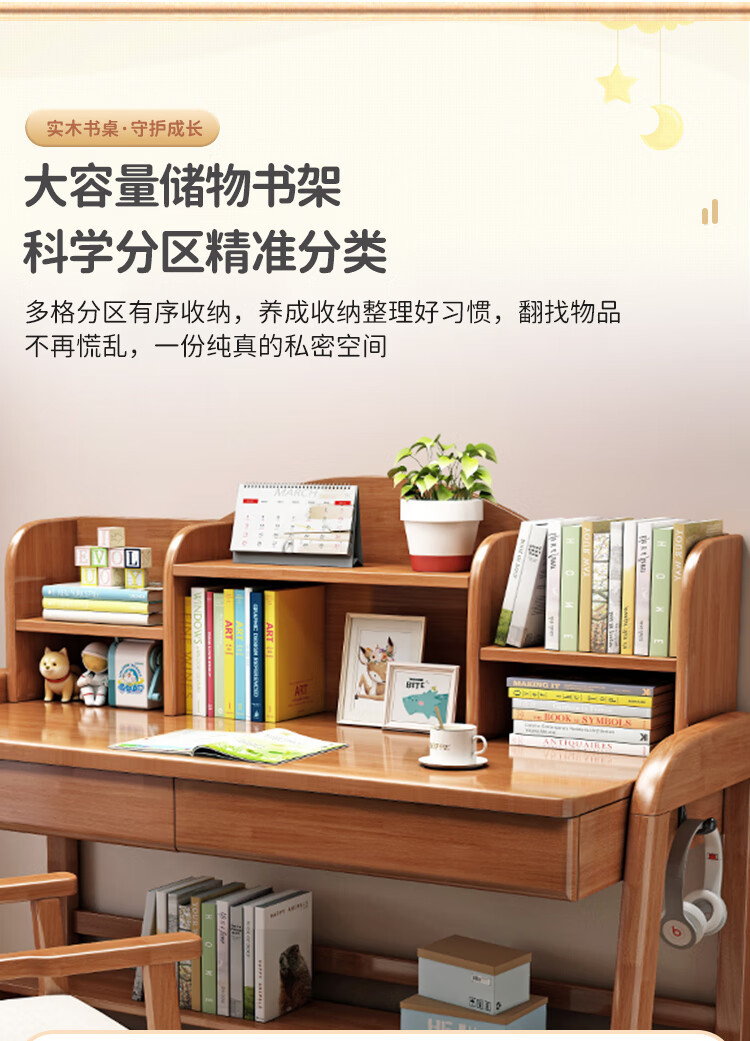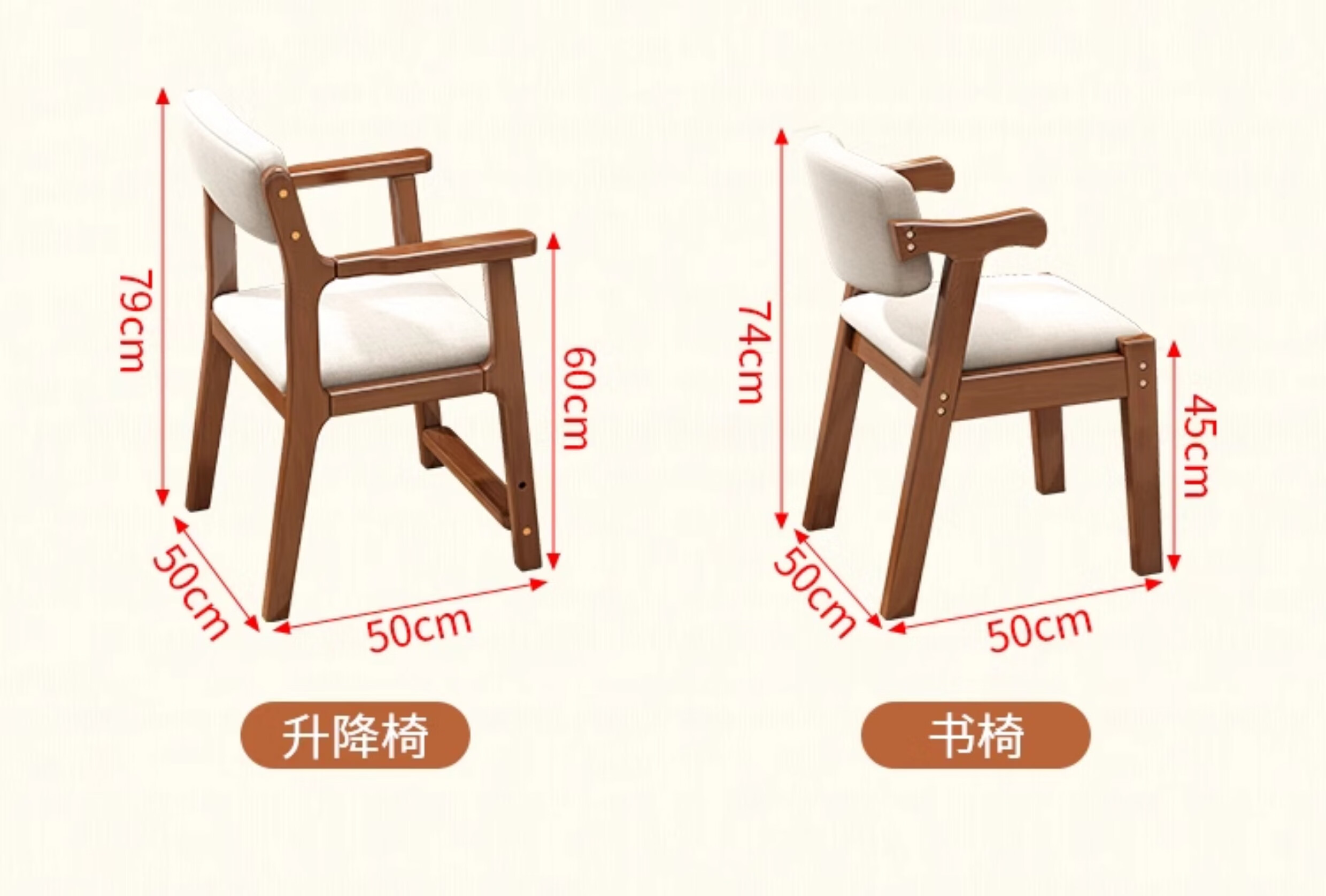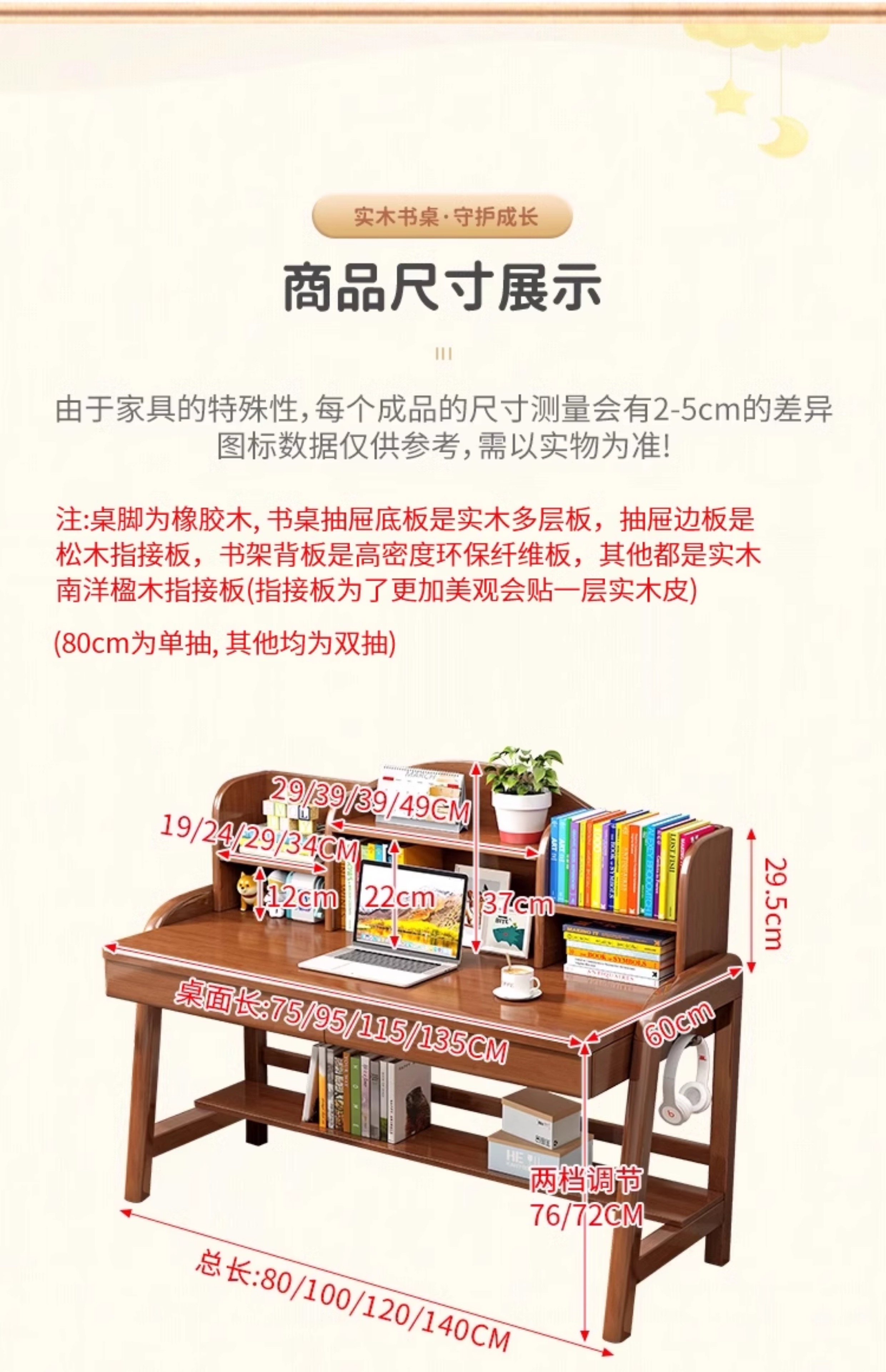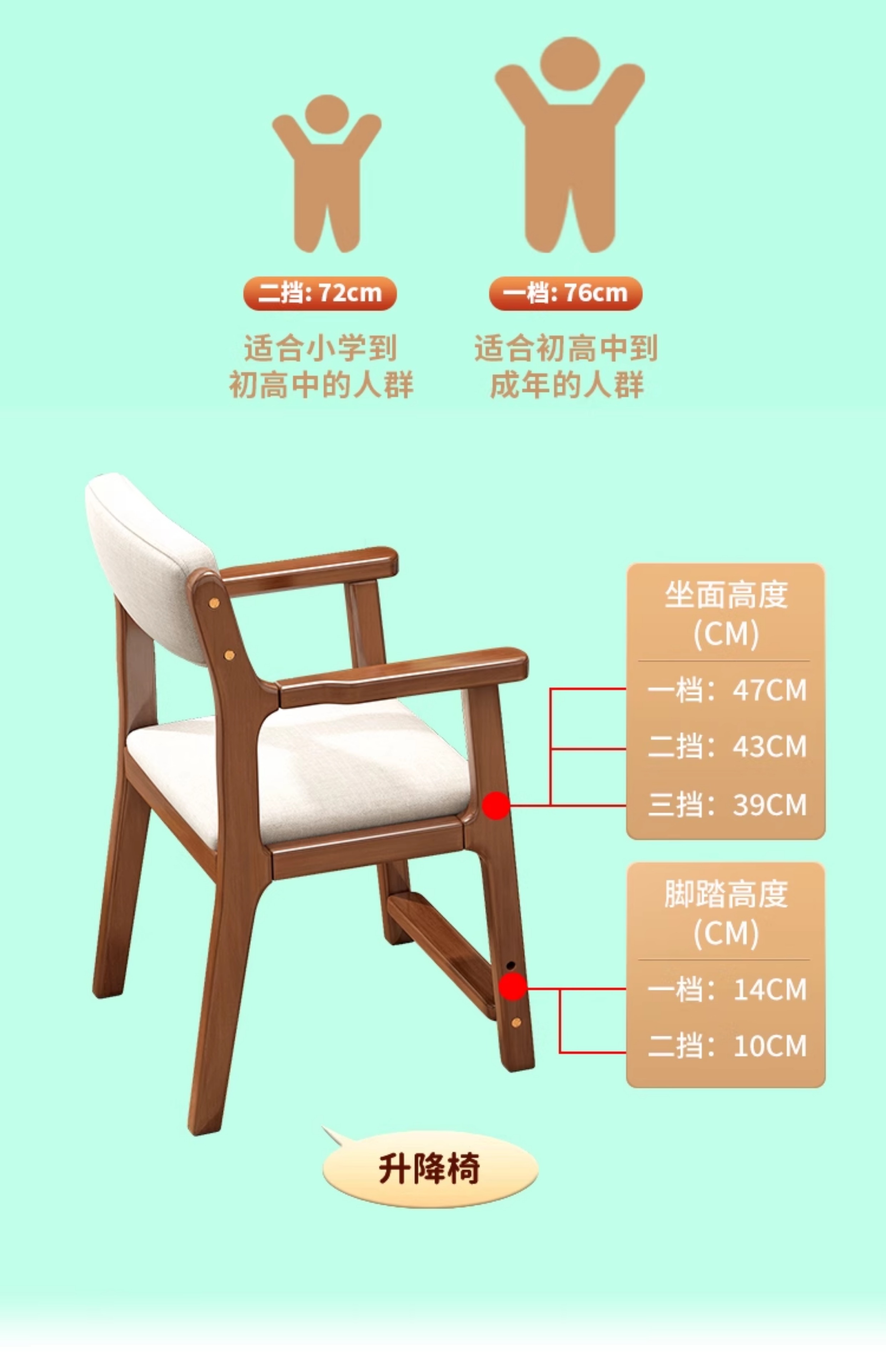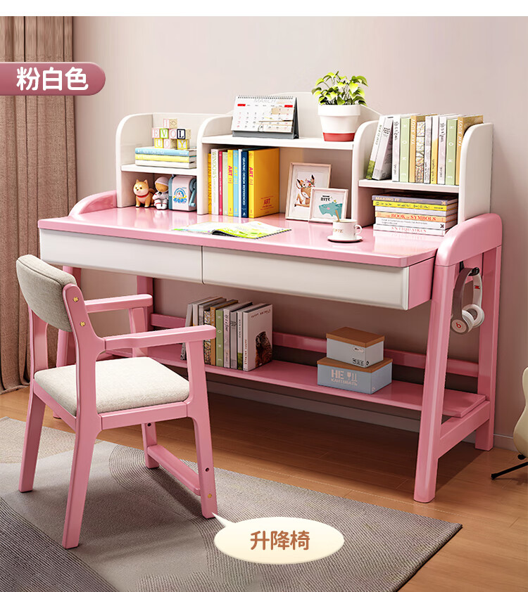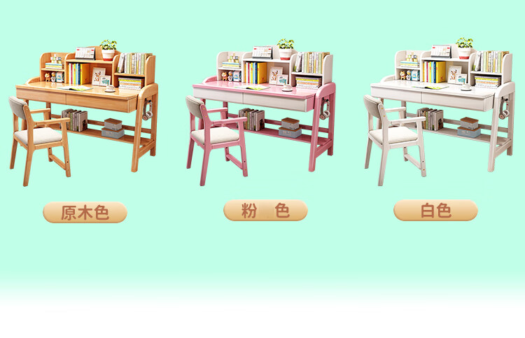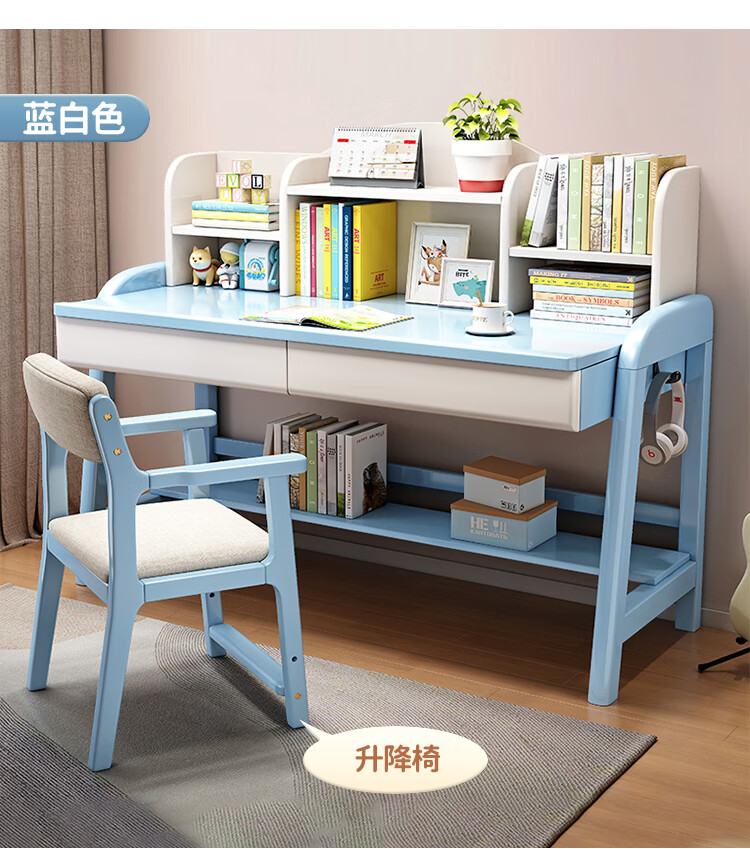 YIBOL solid wood children's study table for primary and secondary school students, home bookshelf integrated table for bedroom, liftable children's writing desk and chair, walnut color single table, imported solid wood, length 80*width 60*height 113cm