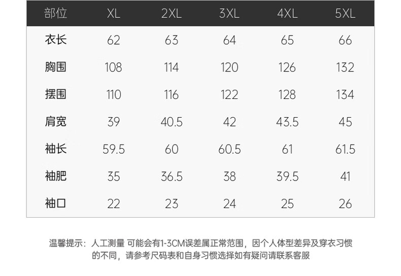 Size (cm) 42 44 46 48 50