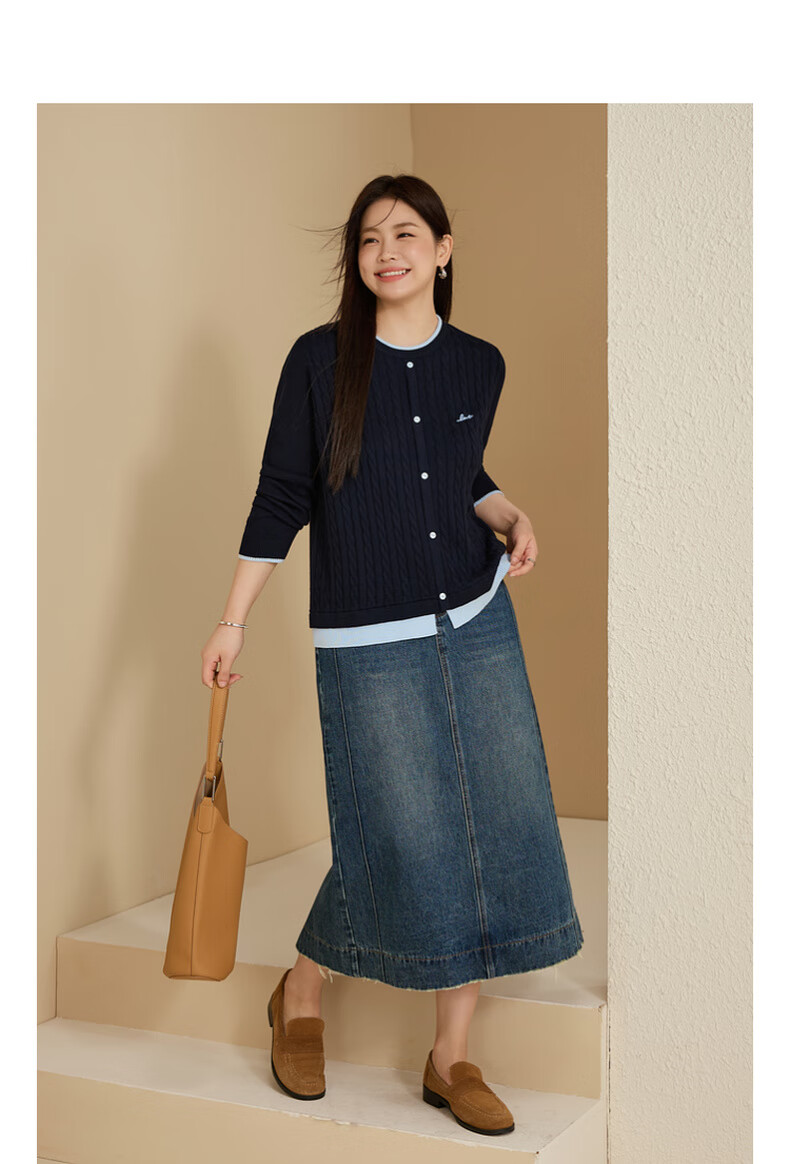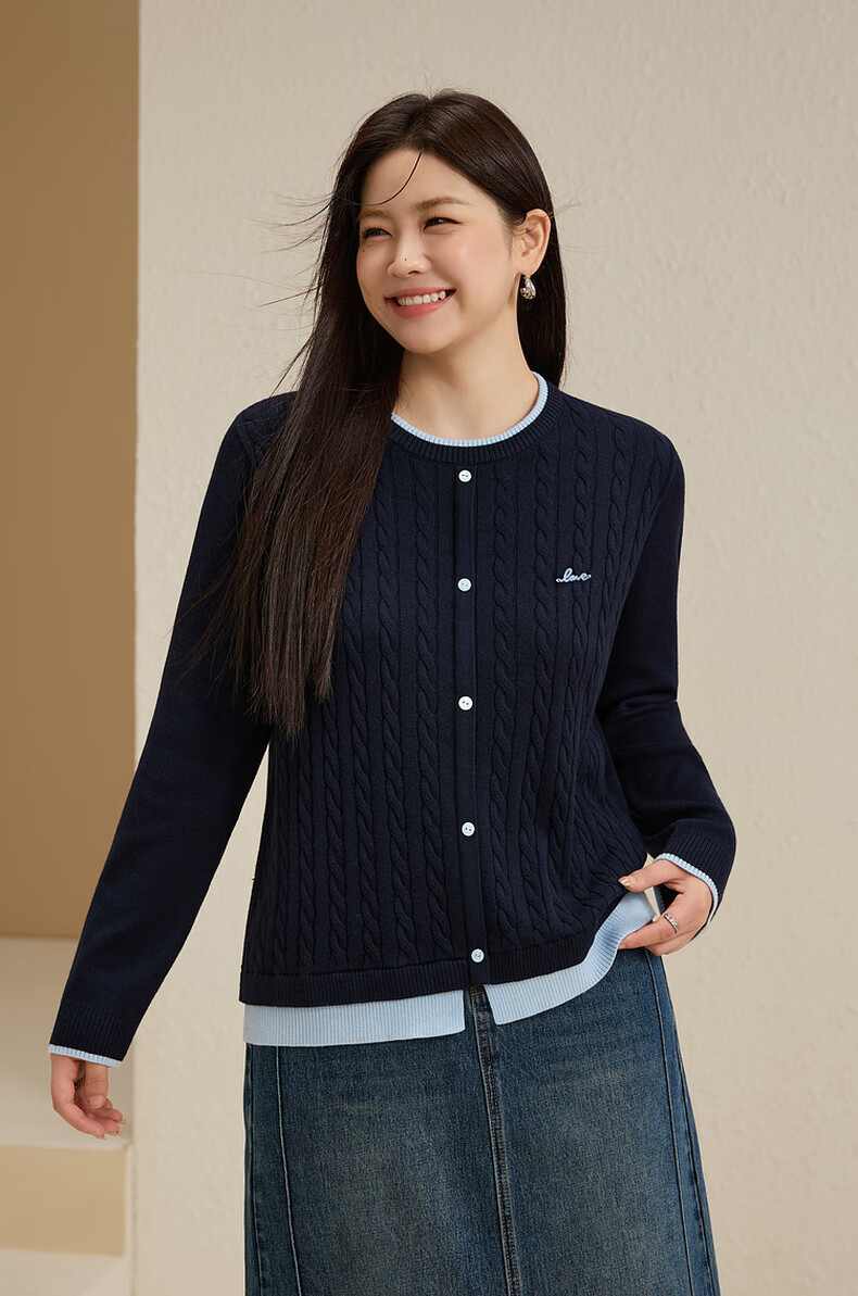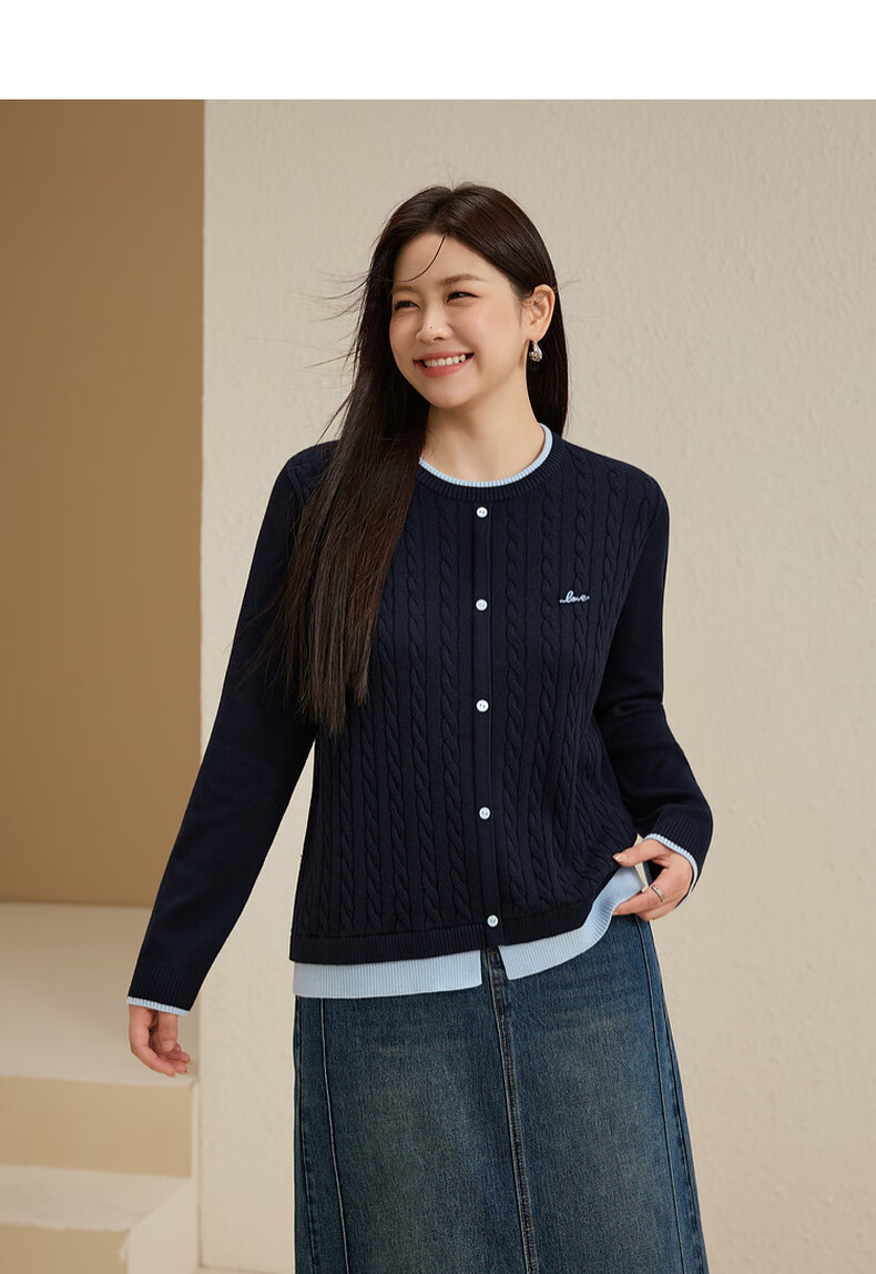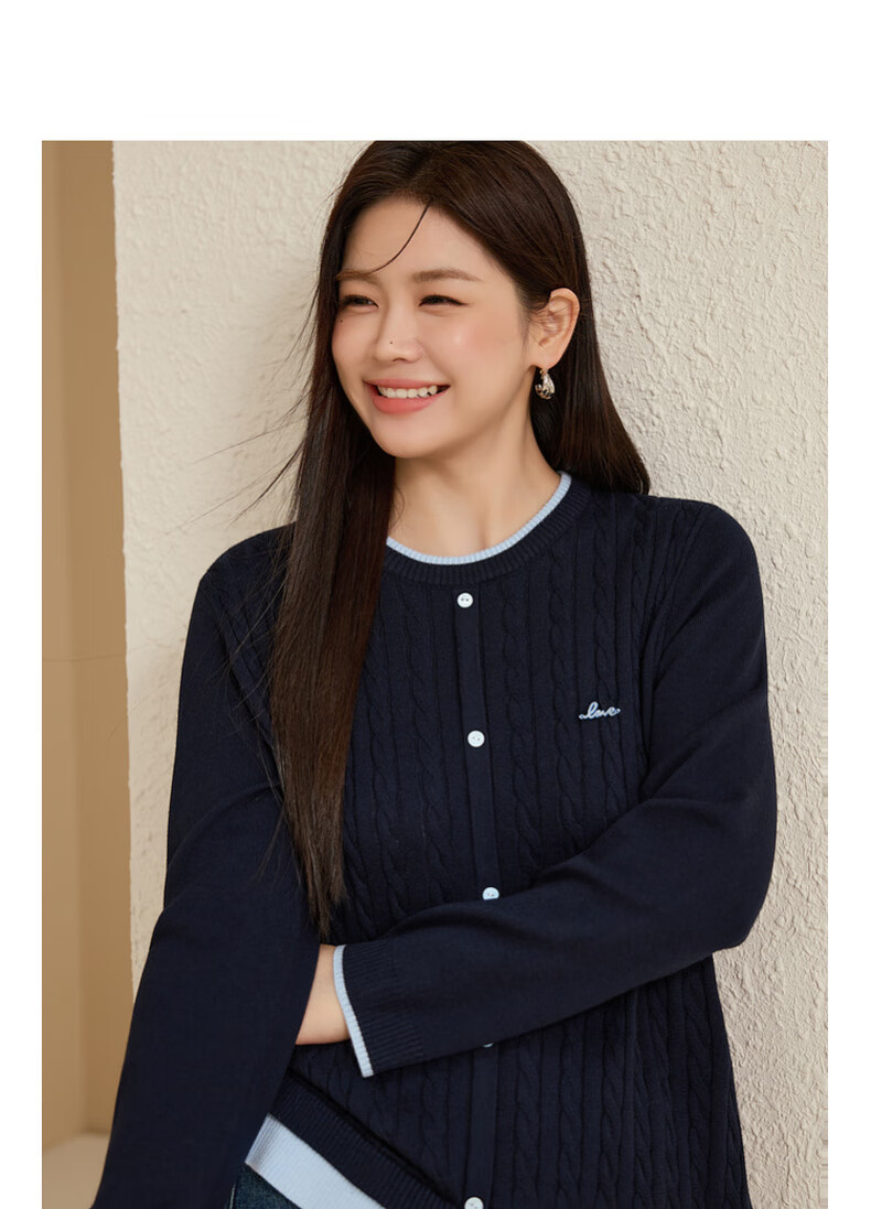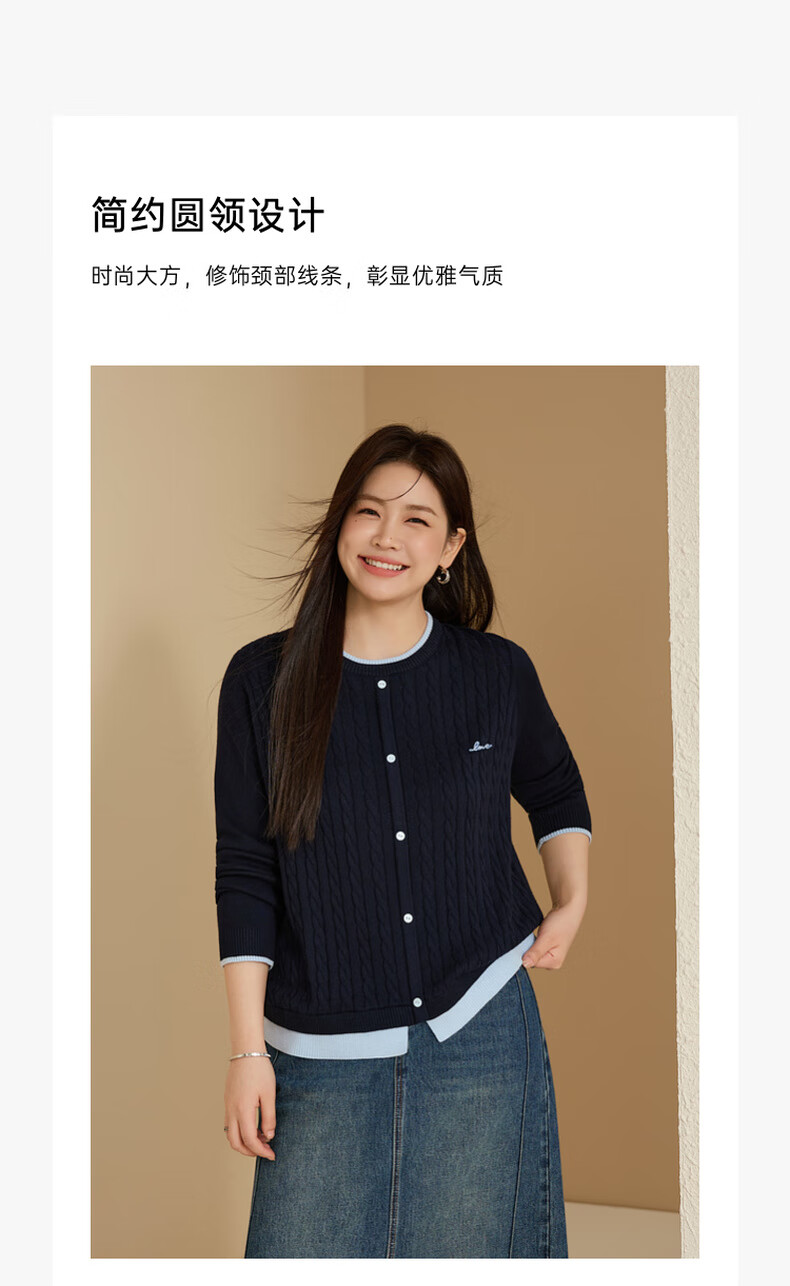 Xianlixiu age-reducing contrasting color versatile sweater plus size women's Korean style gentle style top fat mm autumn new style 4201 navy blue 3XL
