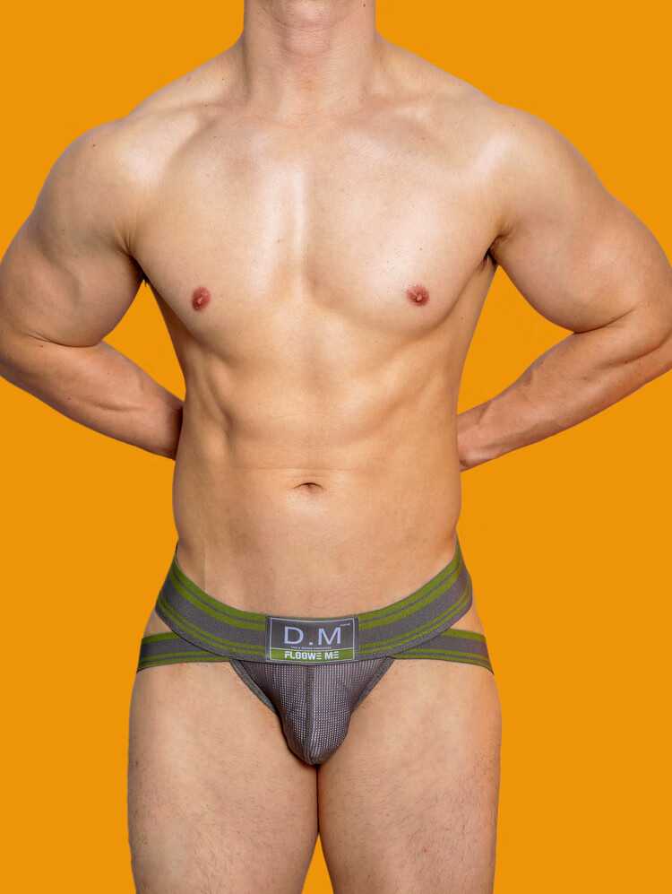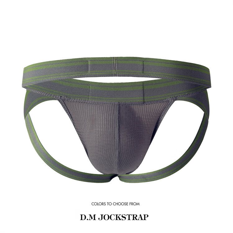 DMD.M men's underwear, low-waisted elastic sexy men's breathable mesh double thong thong with letters, trendy European and American Internet celebrities, dark gray XL_weight 130-145Jin Jin equals 0.5 kg