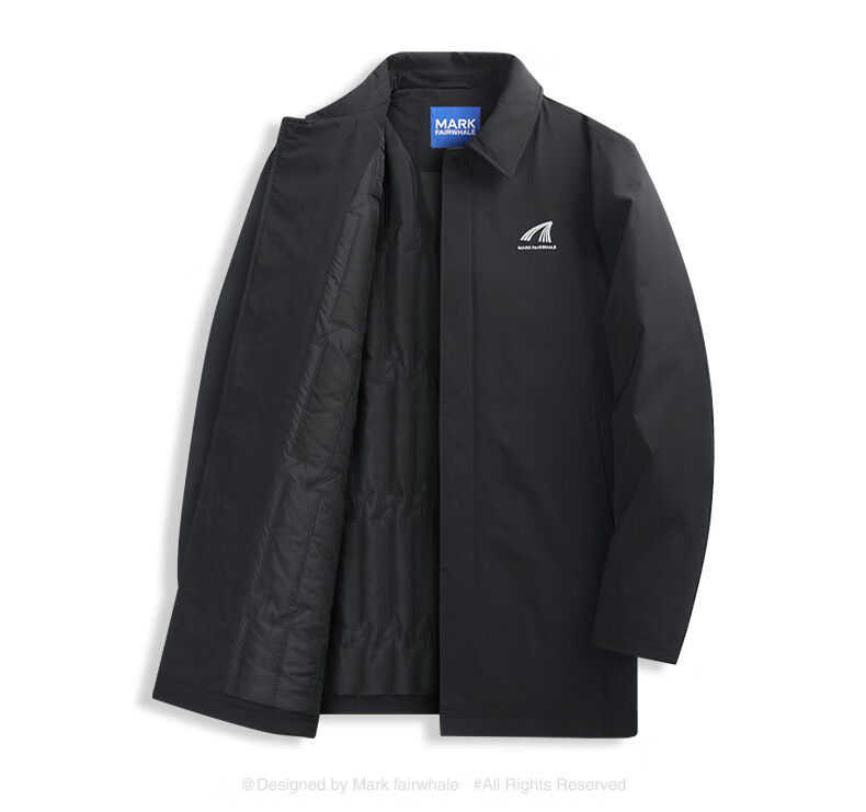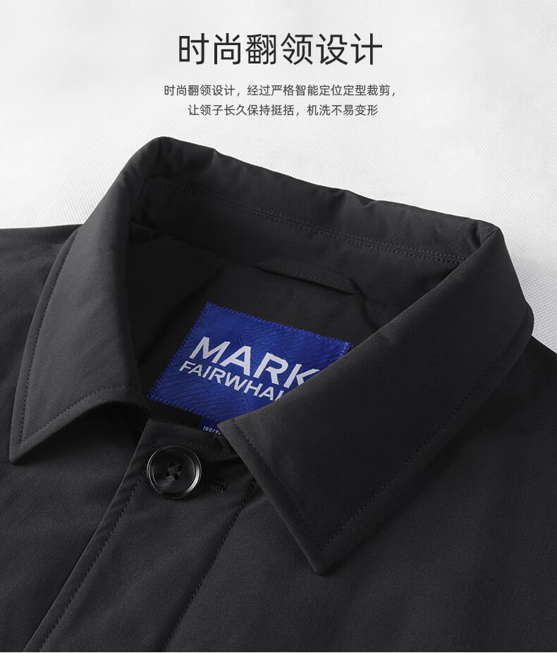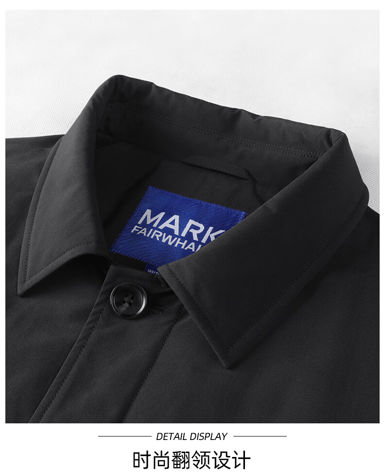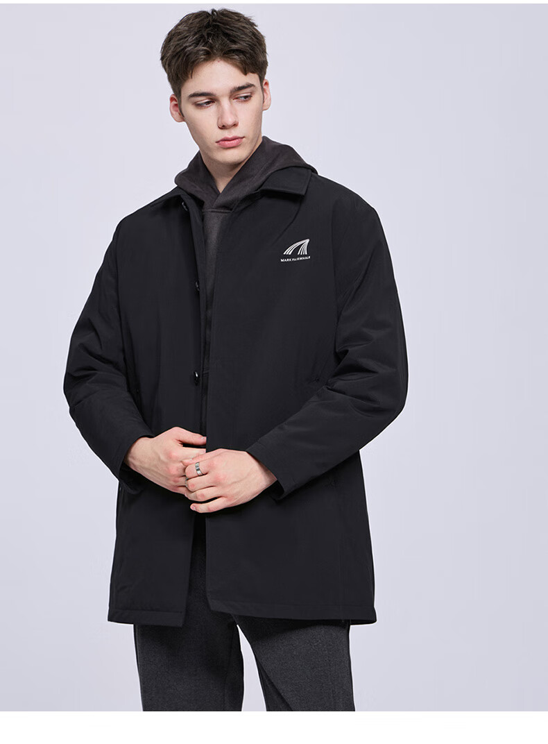 Mark Huafei mid-length lapel windbreaker jacket for men 2025 autumn and winter new simple casual windproof quilted jacket 1095 black 001 L 175