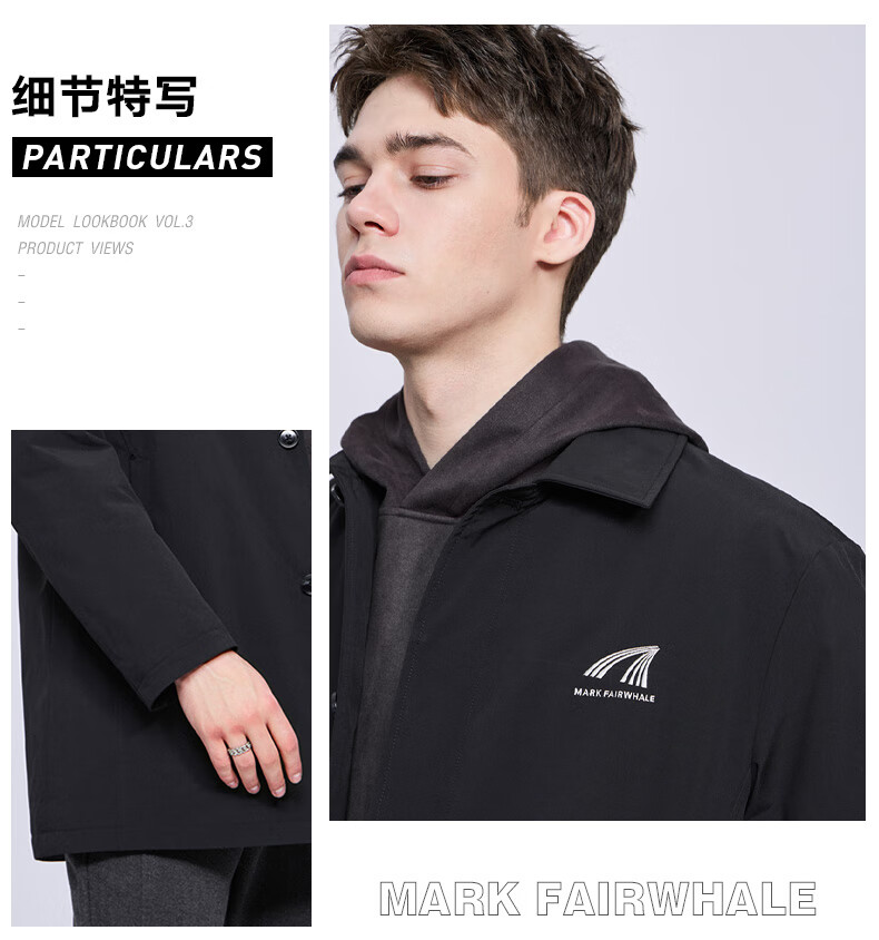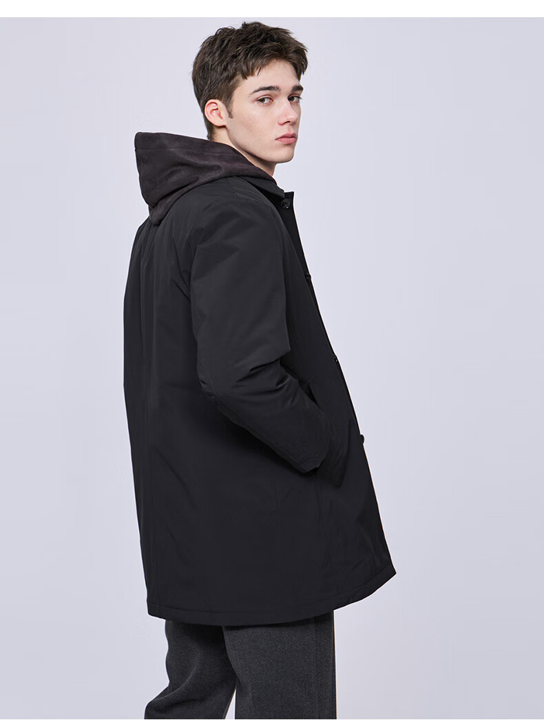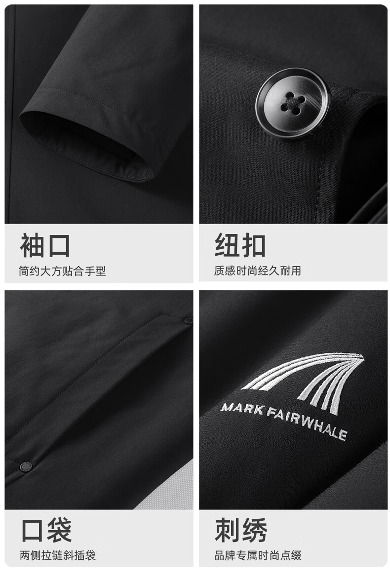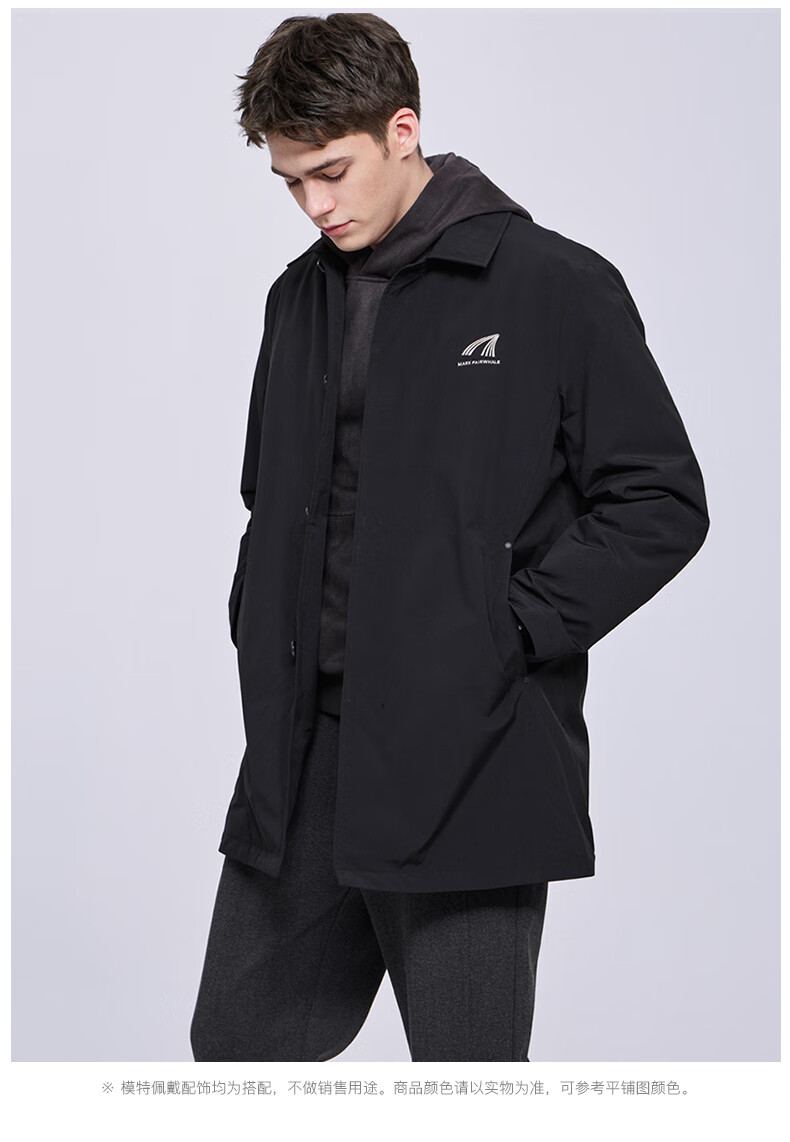 Mark Huafei mid-length lapel windbreaker jacket for men 2025 autumn and winter new simple casual windproof quilted jacket 1095 black 001 L 175