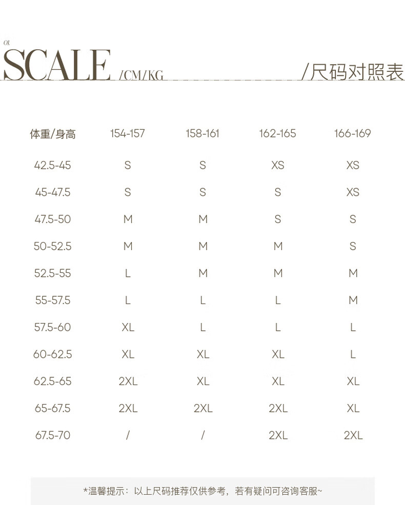 China (cm) 160-165/84-86 165-170 / 88-90 167-172 / 92-96 168-173 / 98-102 170-176 / 106-110