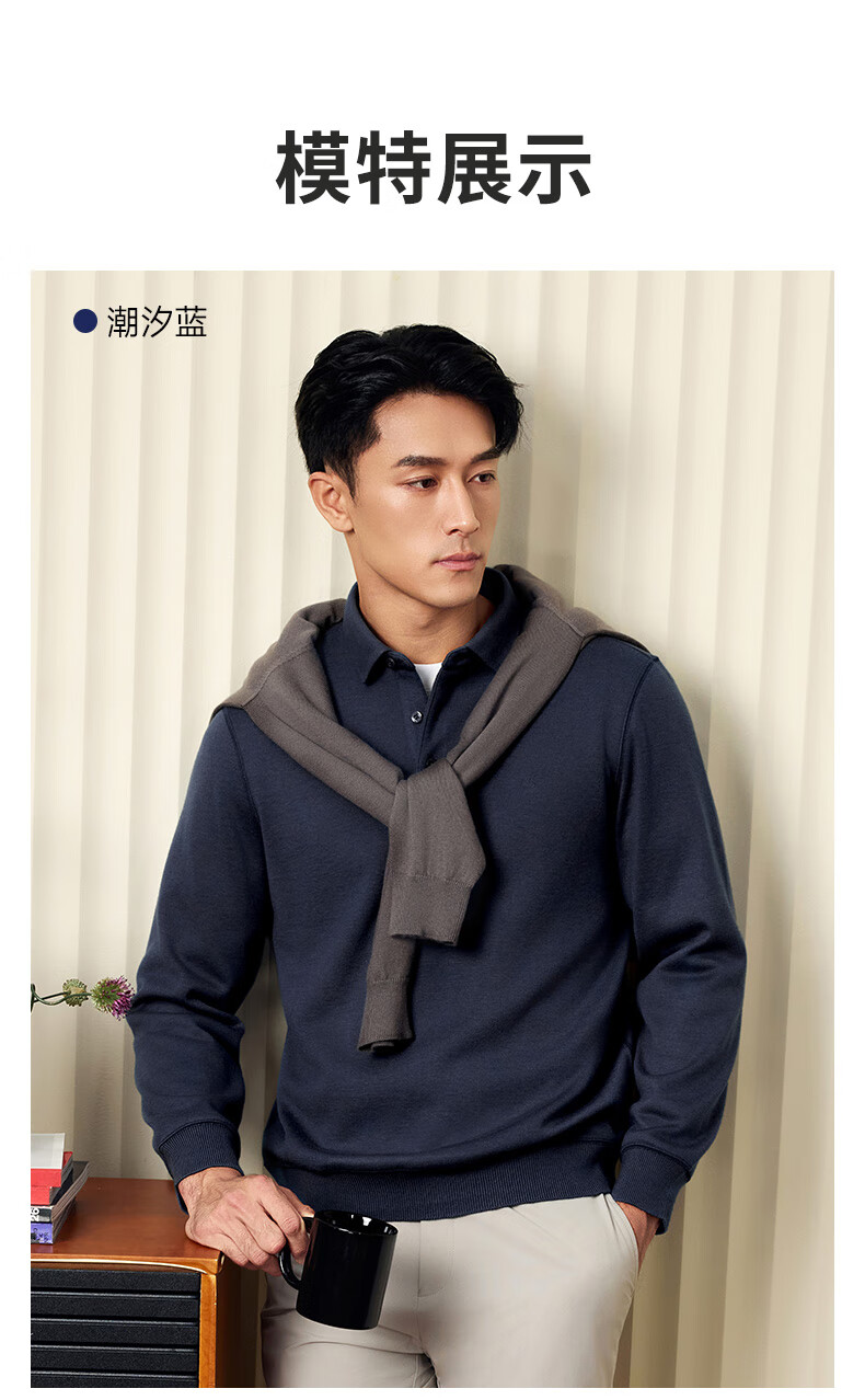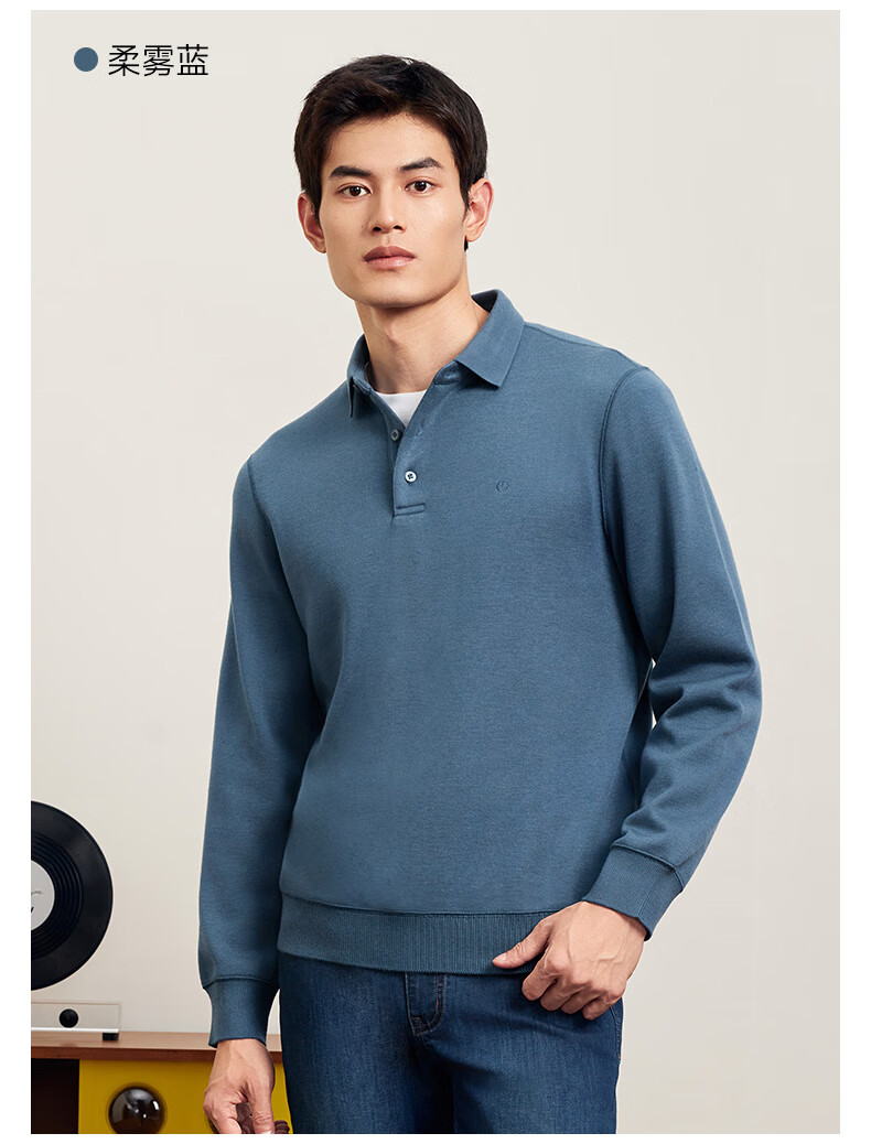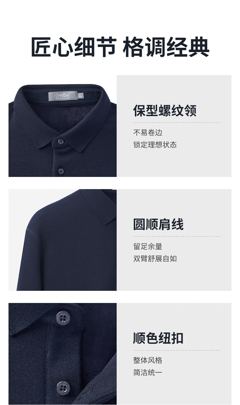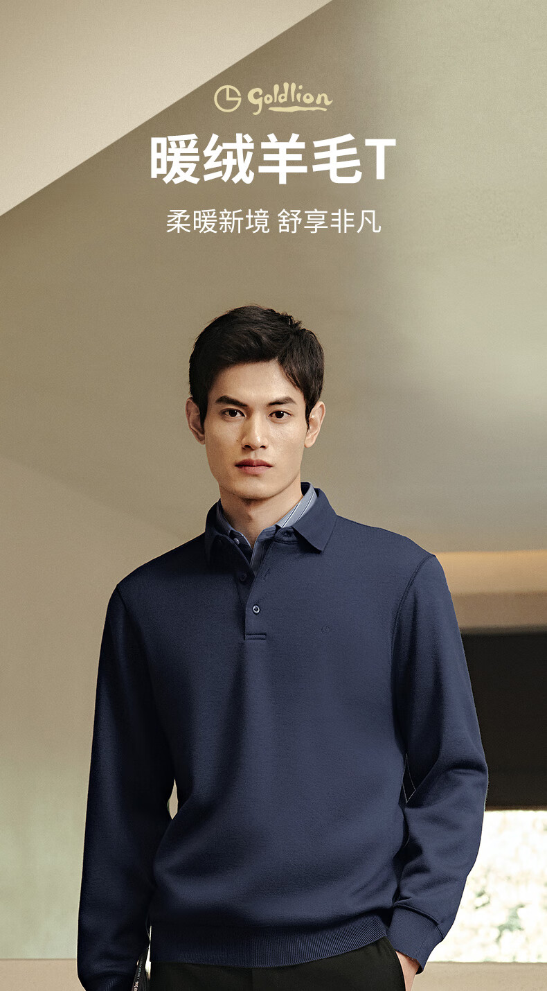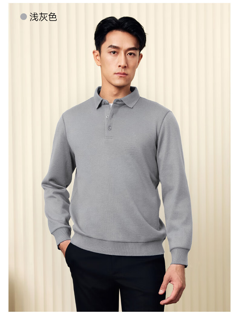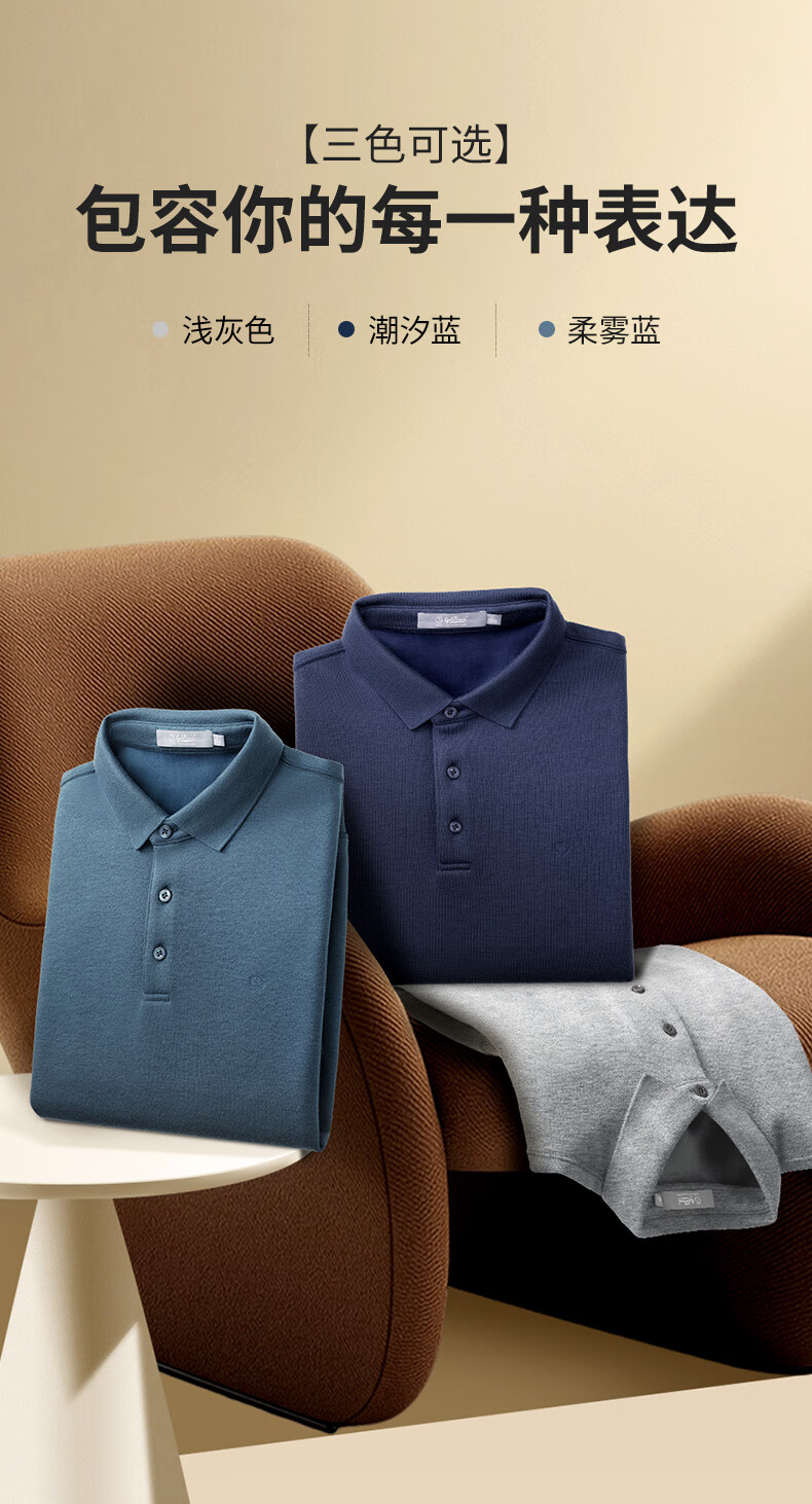 Goldlion wool/velvet autumn and winter long-sleeved polo shirt for men warm and comfortable business casual lapel T-shirt medium gray-38Q1 L 175/92A recommended 135-150Jin Jin equals 0.5 kg