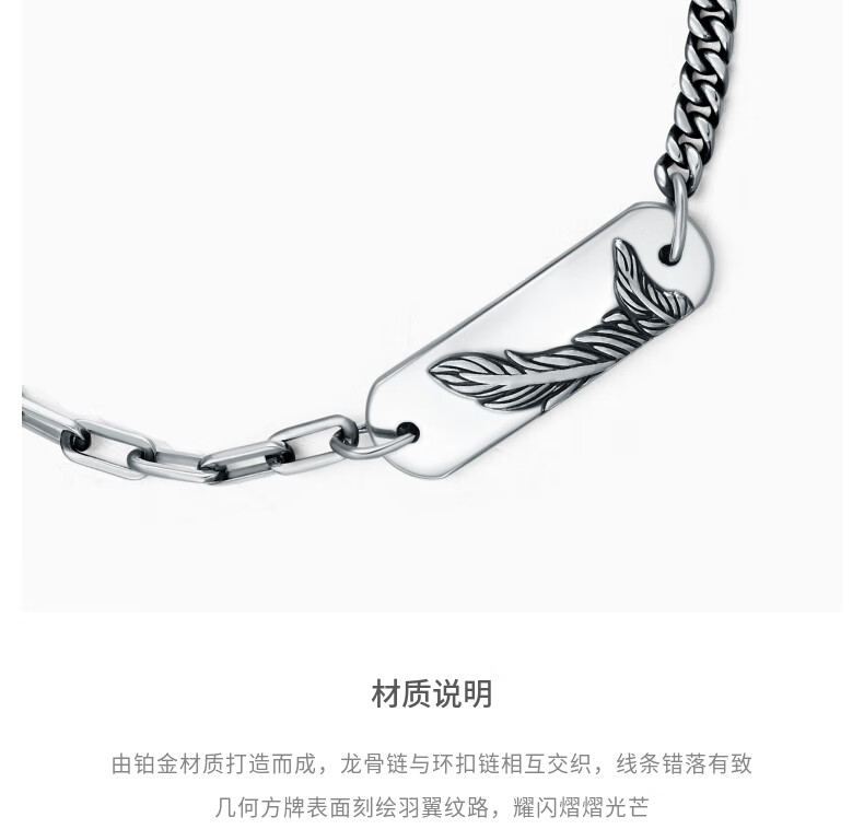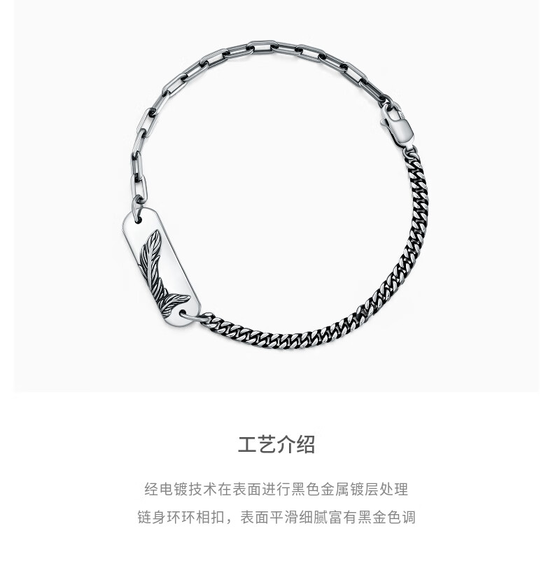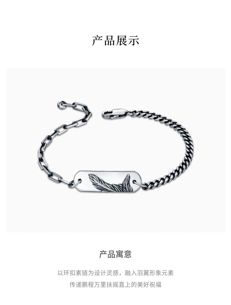 Lao Fengxiang New Product Wing Chifengfa Geometric Square Brand Trendy Cool Hip-Hop Platinum Bracelet Priced for Men and Women Wing Bracelet 20.00 17.42