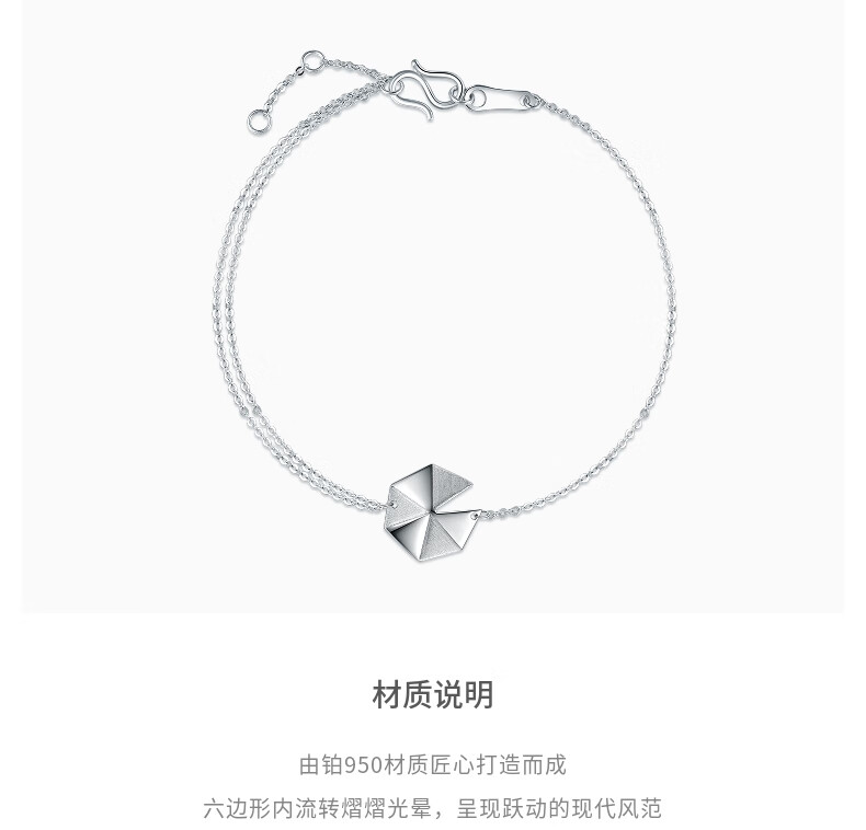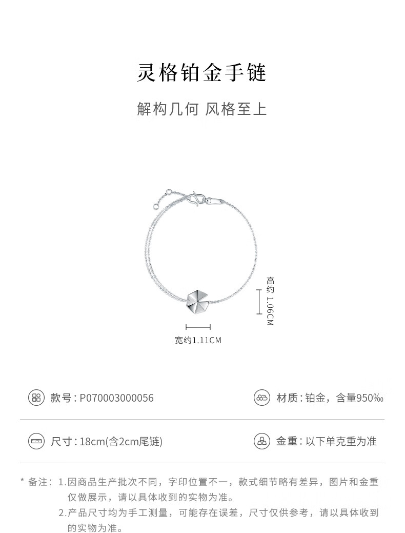 Laofengxiang Lingglass simple and fashionable pt platinum bracelet unisex gift for men and women Priced Lingge bracelet 18.00cm 2.09
