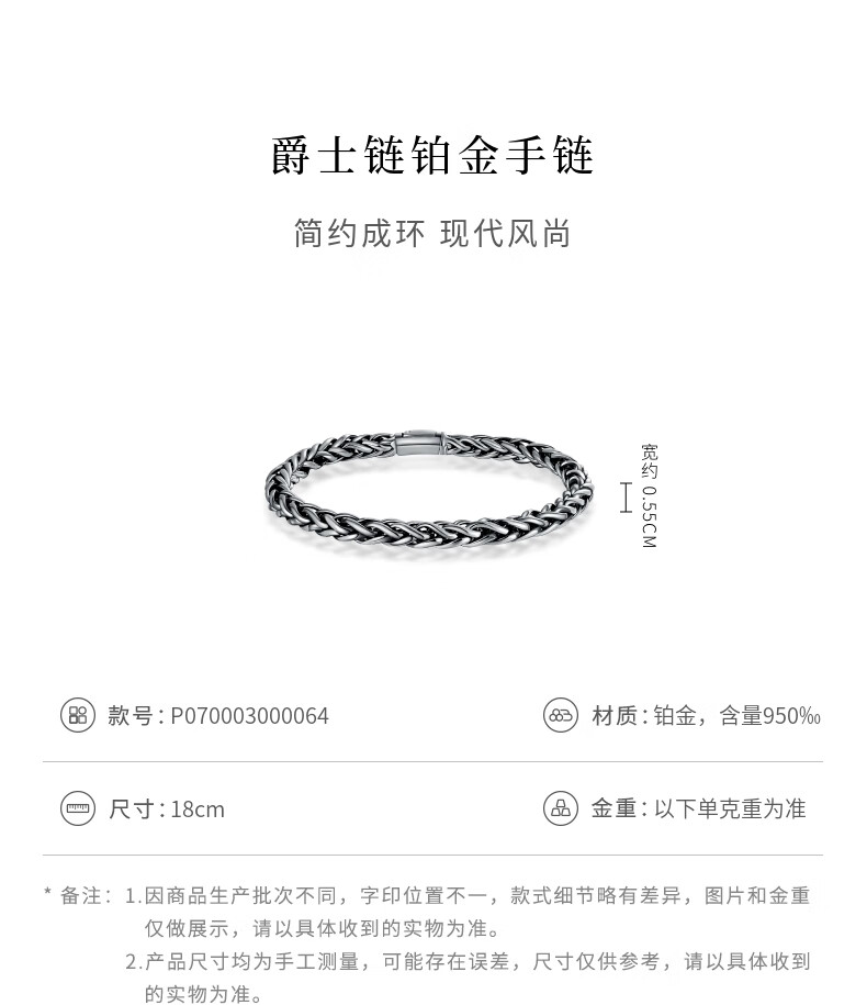 Lao Fengxiang New Product Jazz Chain Trendy Cool Classic Hip-Hop Plain Chain Sweater Chain Platinum Bracelet Men's and Women's Price Jazz Chain Bracelet 18.00 26.17