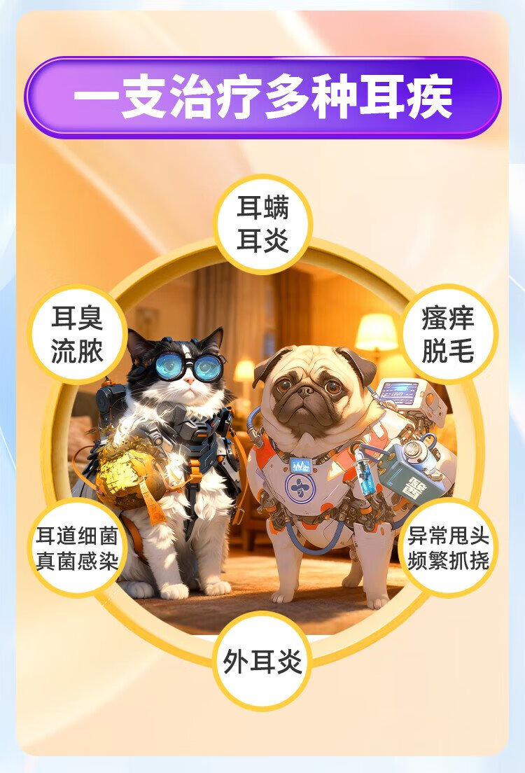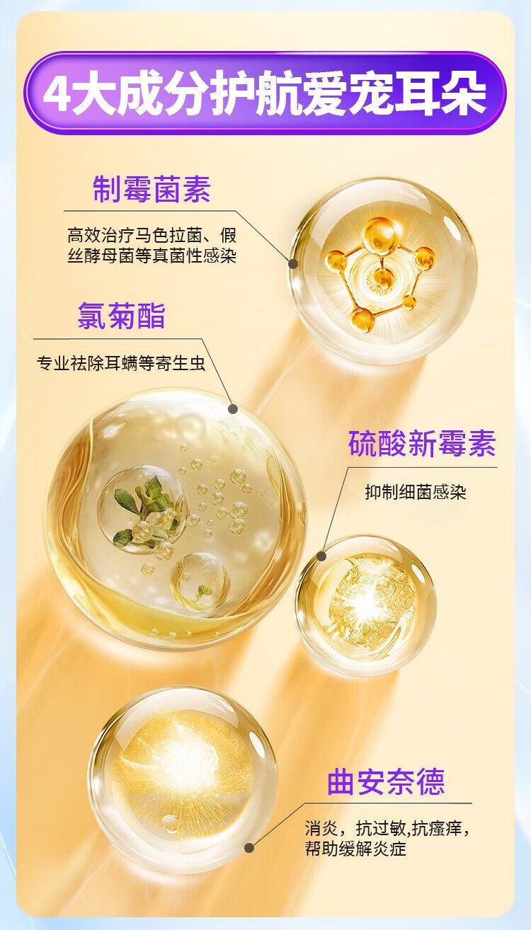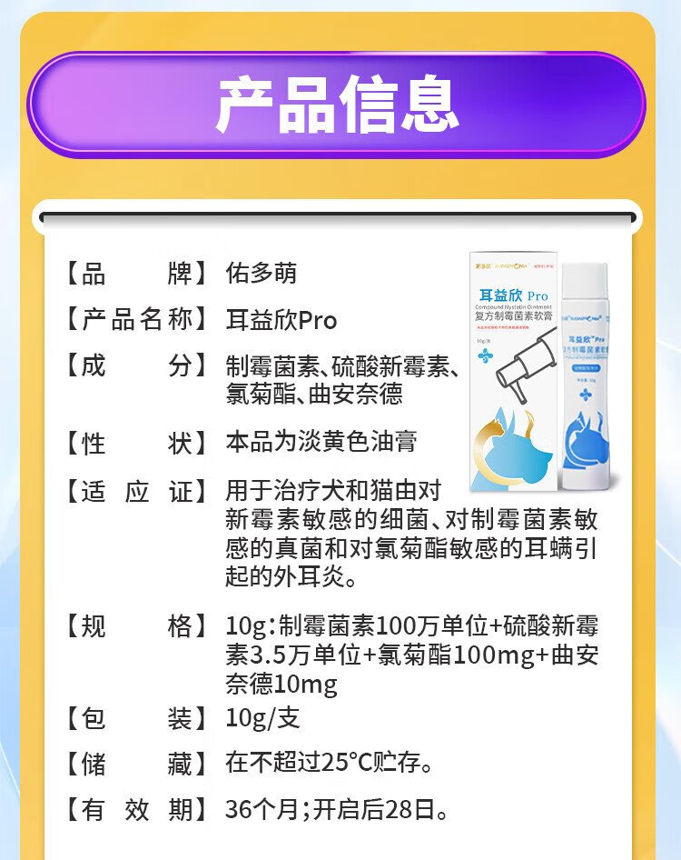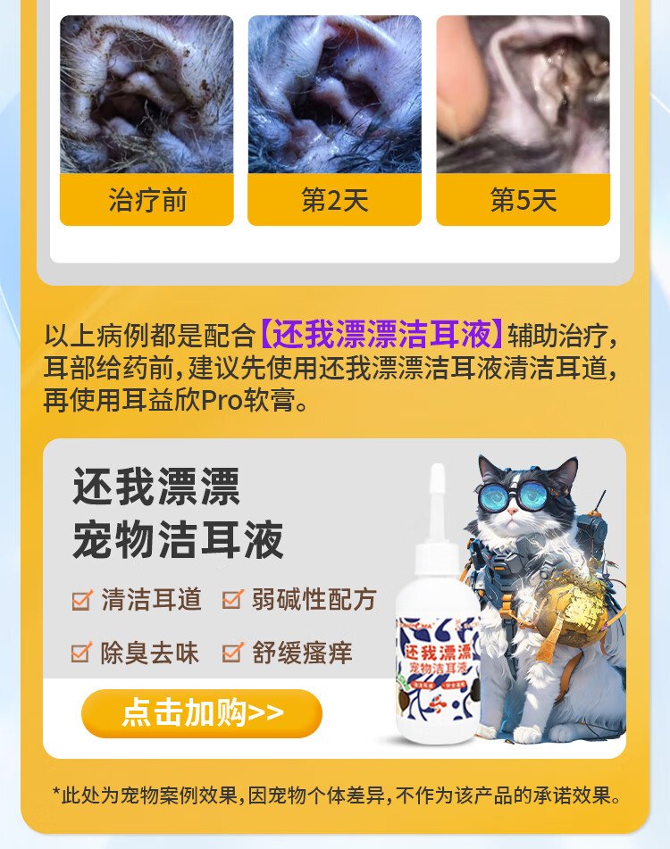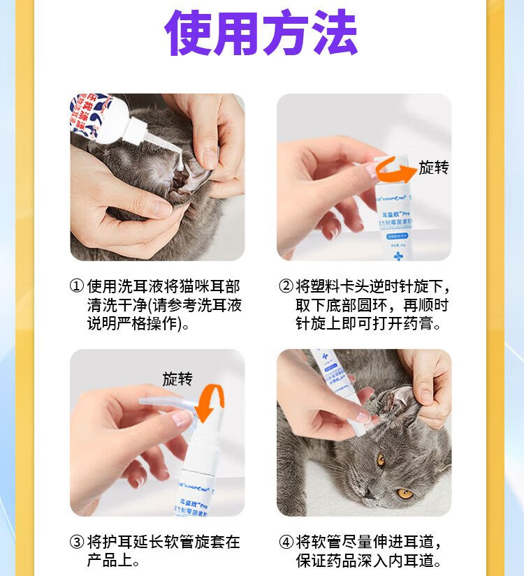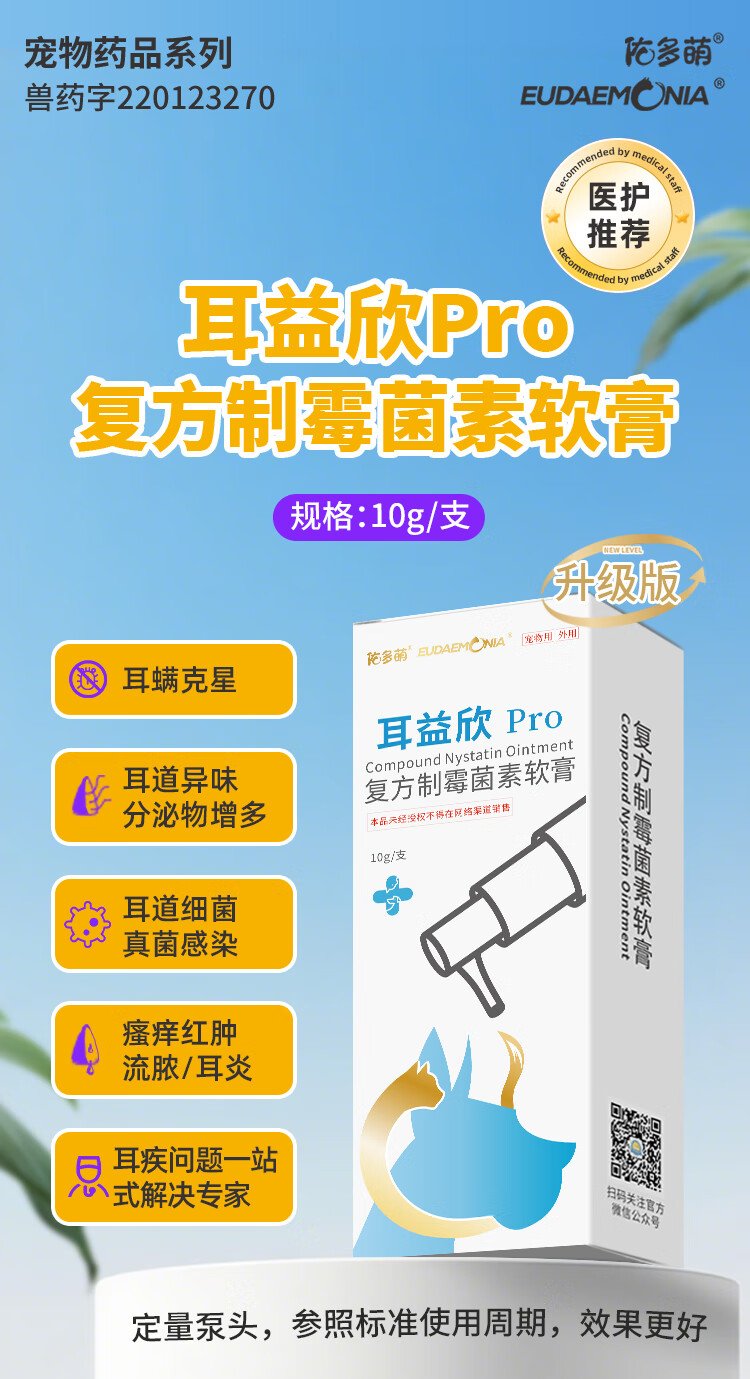 Youduo Meng Er Yi Xin Compound Nystatin Ointment for Pet Cats and Dogs Ear Mites and Otitis Disease Er Yixin + Ear Cleanser 100ml