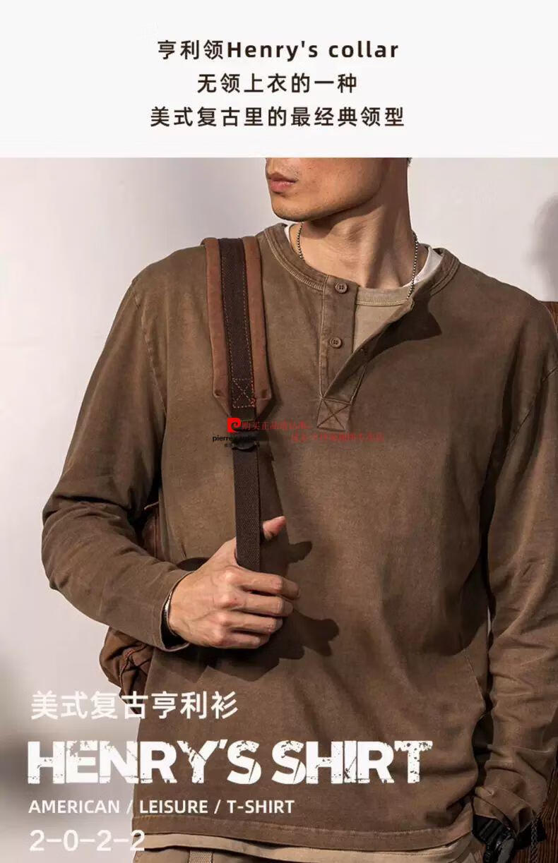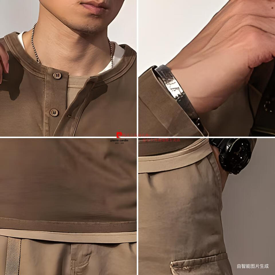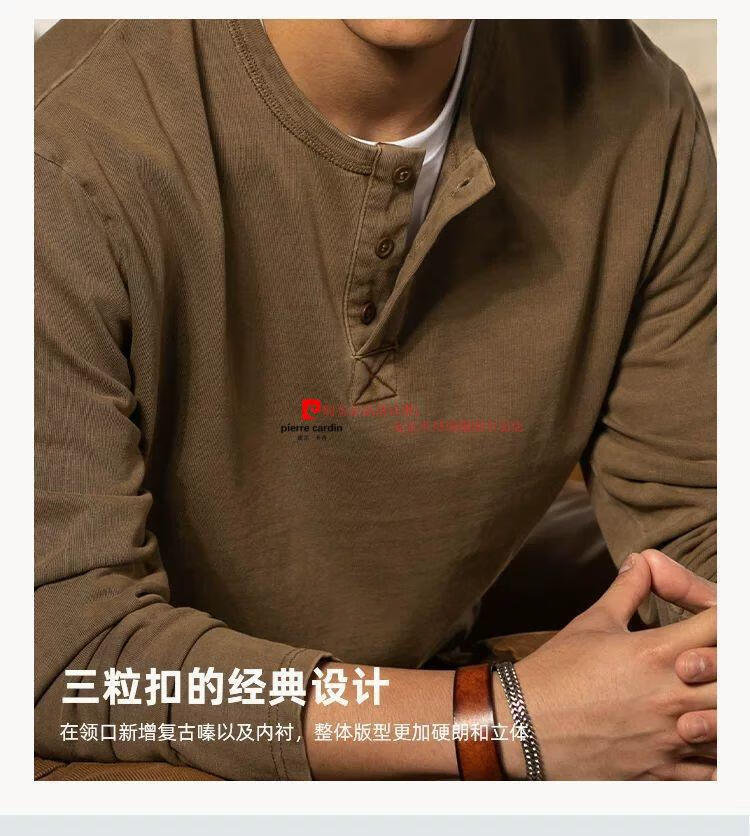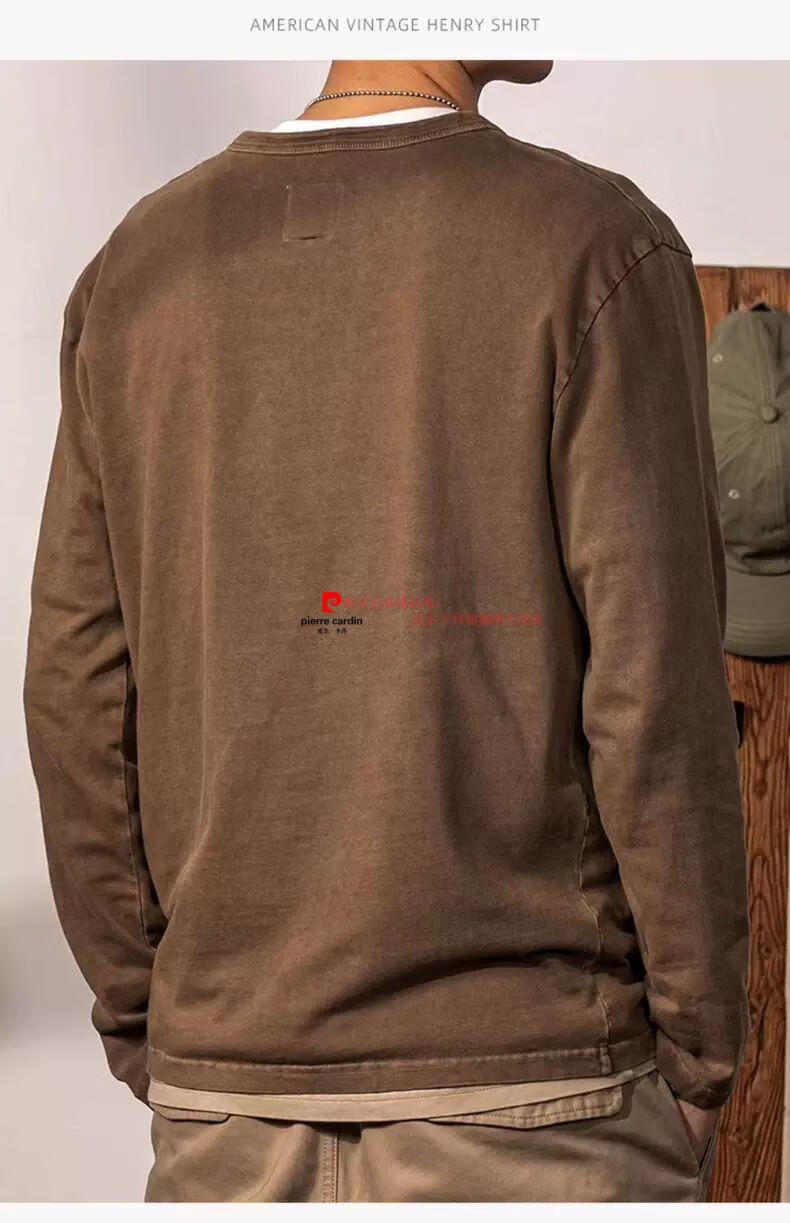 Pierre Cardin 2025 Spring and Autumn New American Retro Casual Henley Collar Long Sleeve T-Shirt Men's Versatile Simple Solid Color Bottoming Shirt Brown XL Recommended 115-145 Jin Jin equals 0.5 kg