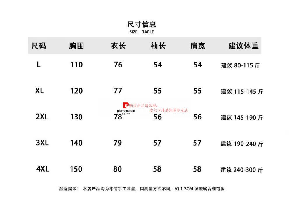 China (cm) 165 / 88-90 170 / 96-98 175 / 108-110 180 / 118-122 185 / 126-130