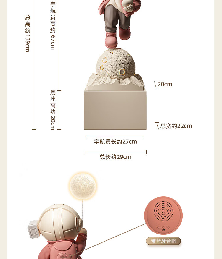 Dyedchun astronaut ornaments audio starry sky projection lamp astronaut high-end floor-standing large TV housewarming gift large wine red 182cm starry sky projection + Bluetooth + atmosphere light + yellow square bottom