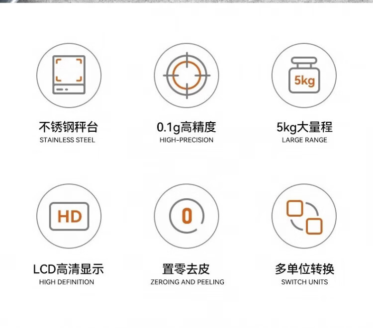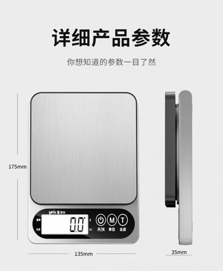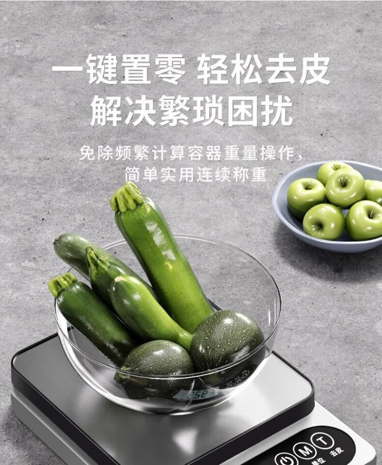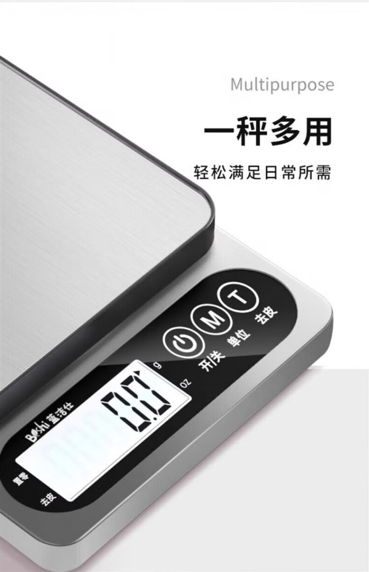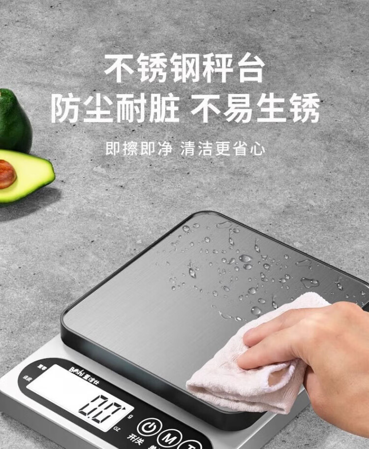 JCZS German brand kitchen electronic scale weighs the new accurate small high-precision baking home commercial food gram weight fast charging version Type-C fast charging 5kg/0.1g (delivery)