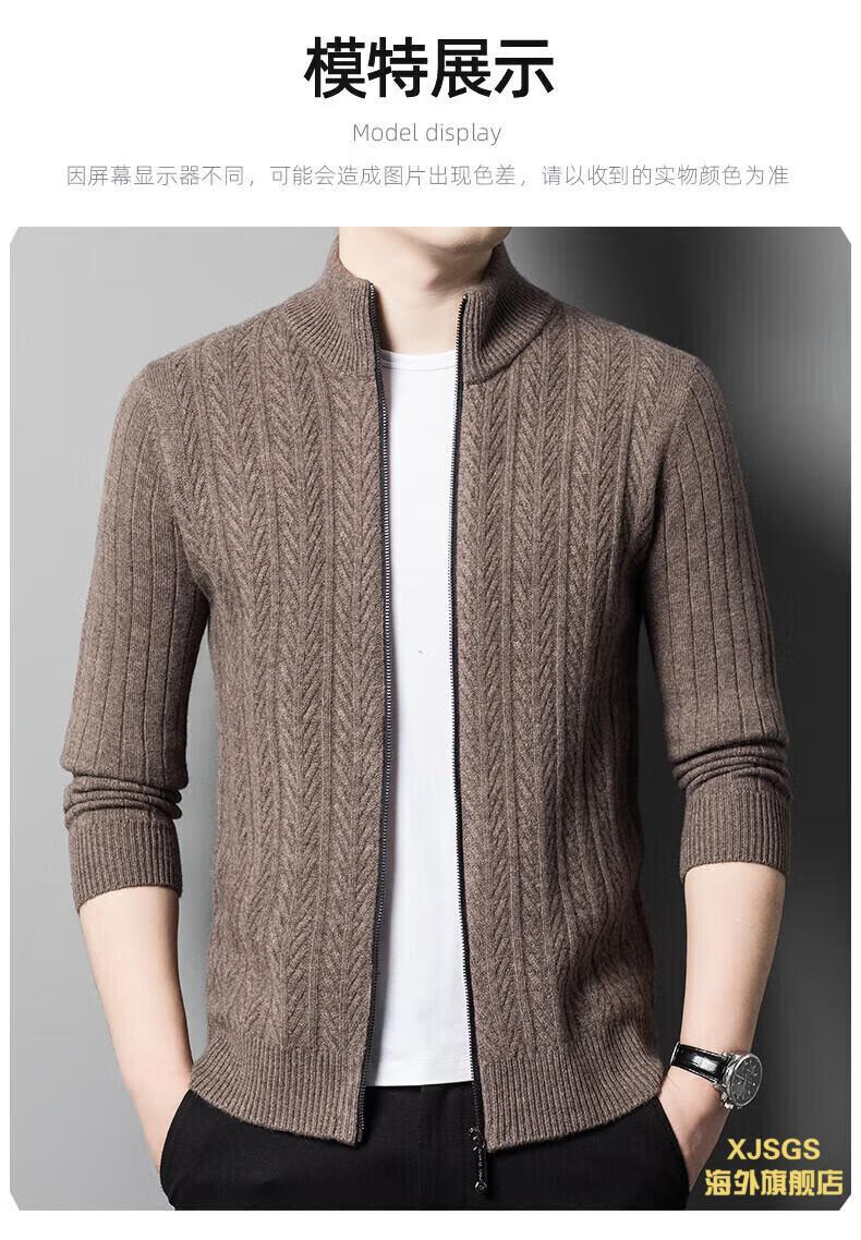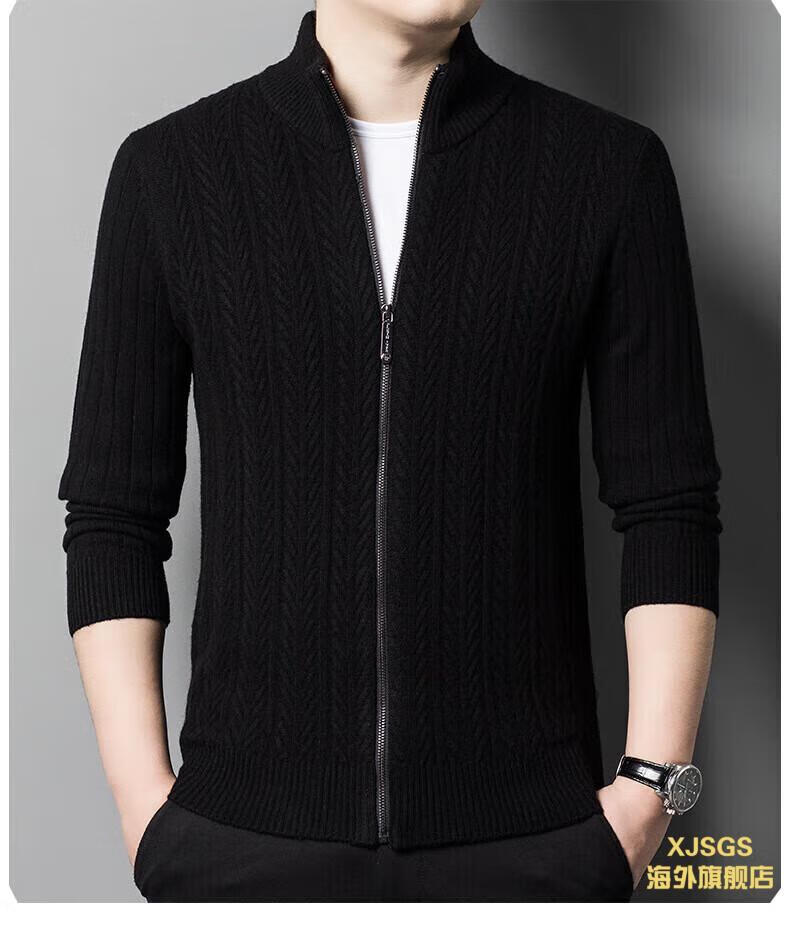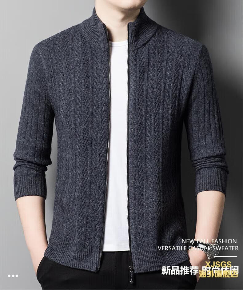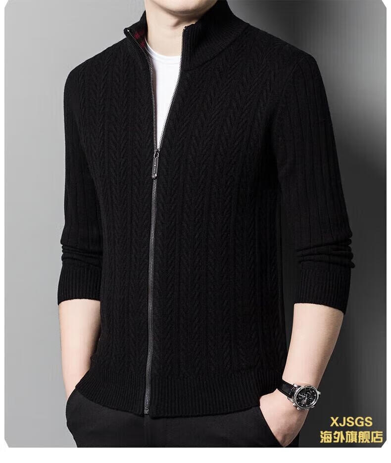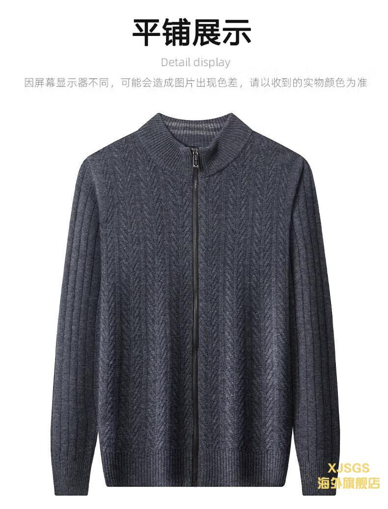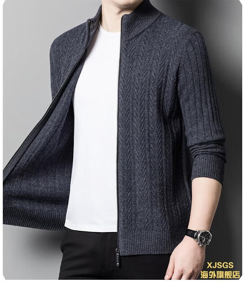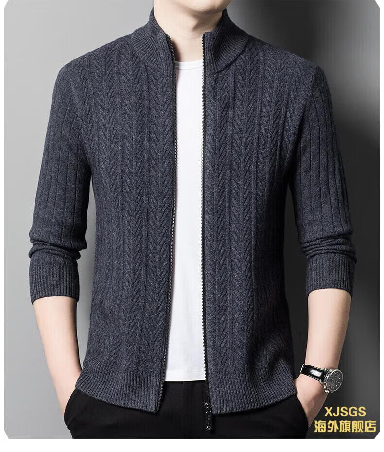 XJSGS international high-end brand cardigan men's spring and autumn new twist stand collar light luxury sweater cardigan jacket high-end pure gray spot speed 3XL recommended 170-185Jin Jin equals 0.5 kg