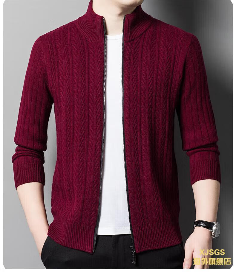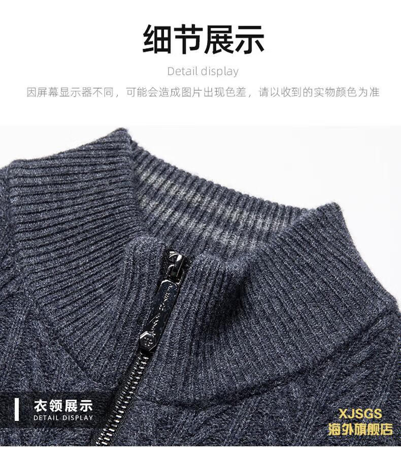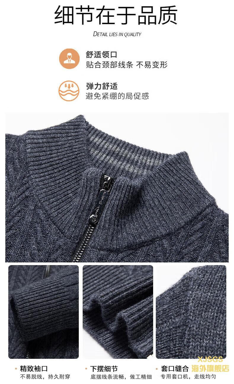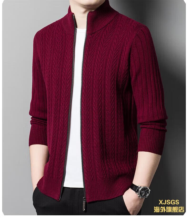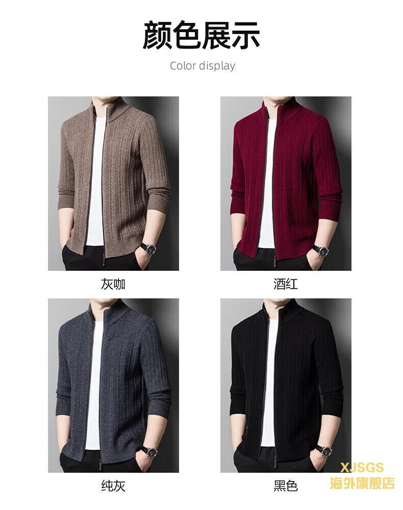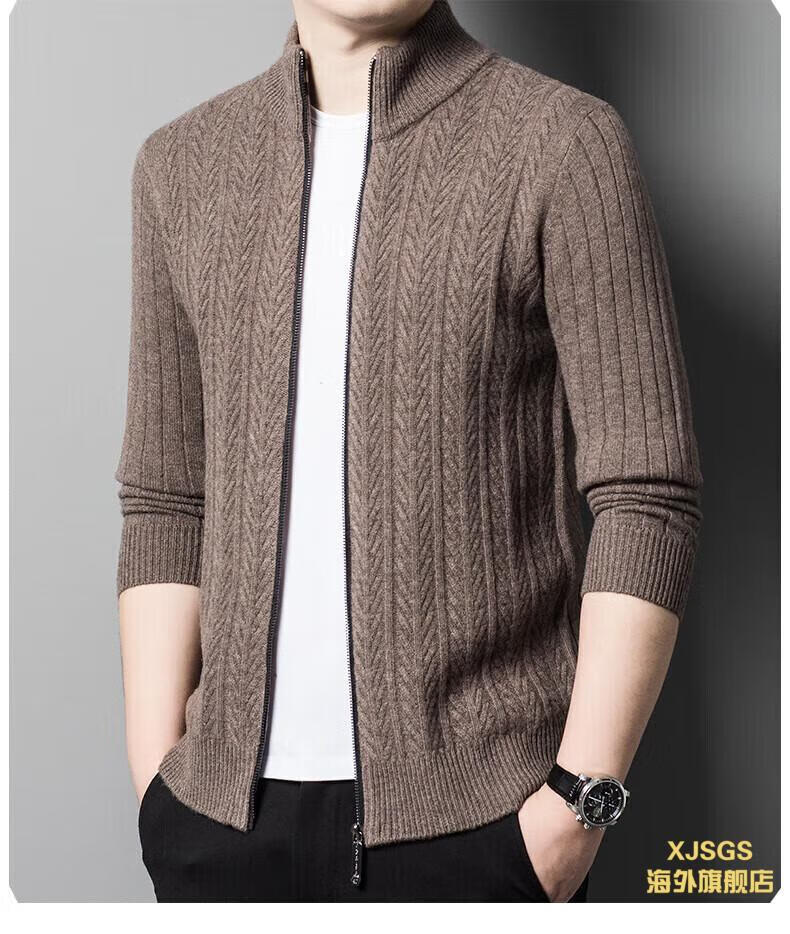 XJSGS international high-end brand cardigan men's spring and autumn new twist stand collar light luxury sweater cardigan jacket high-end pure gray spot speed 3XL recommended 170-185Jin Jin equals 0.5 kg