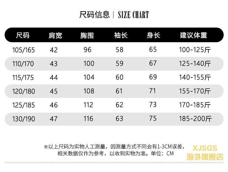 China (cm) 165 / 88-90 170 / 96-98 175 / 108-110 180 / 118-122 185 / 126-130