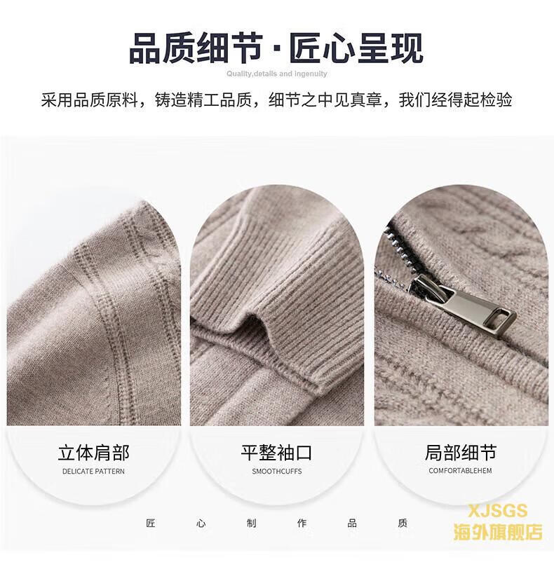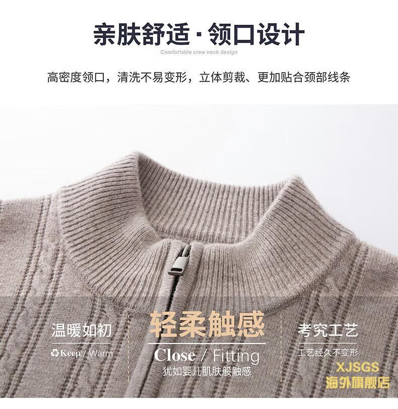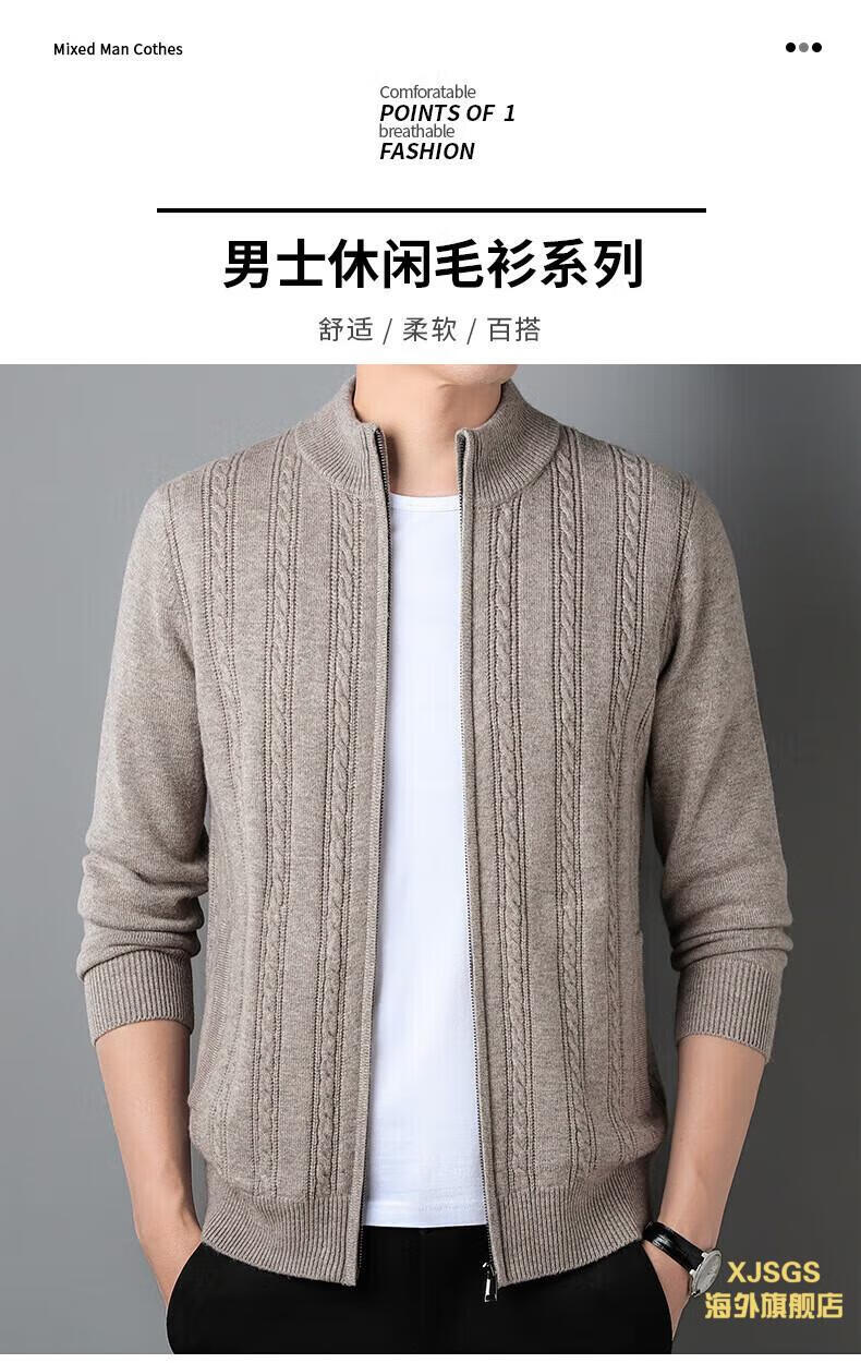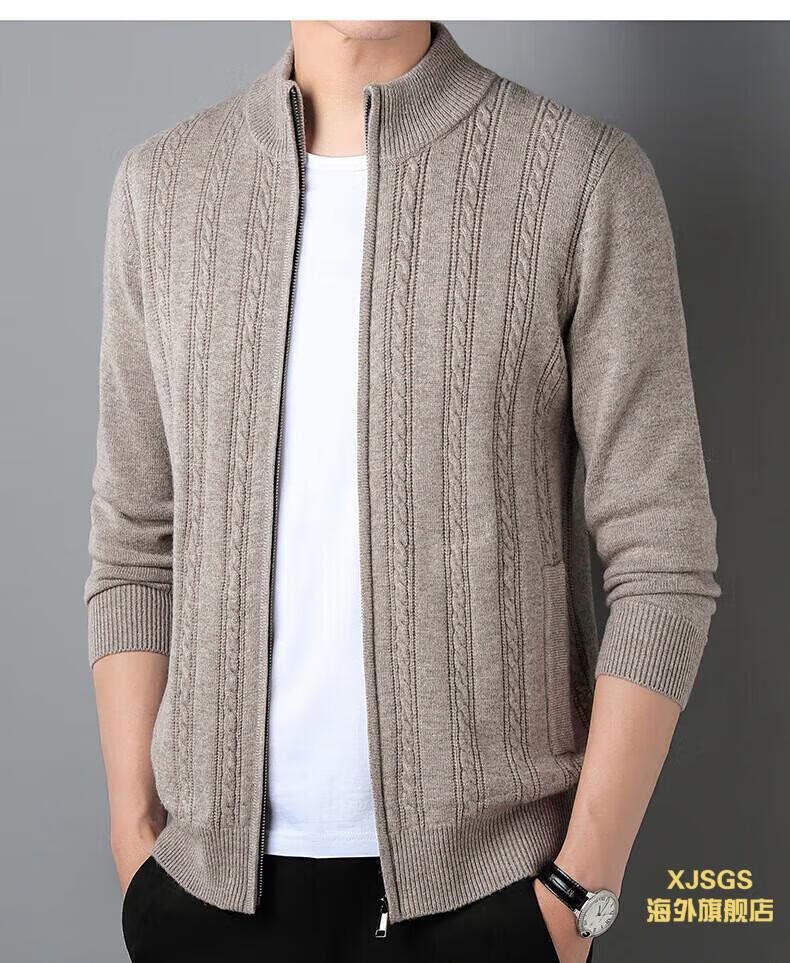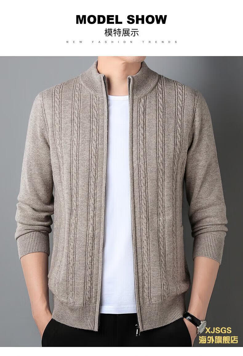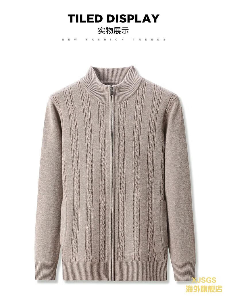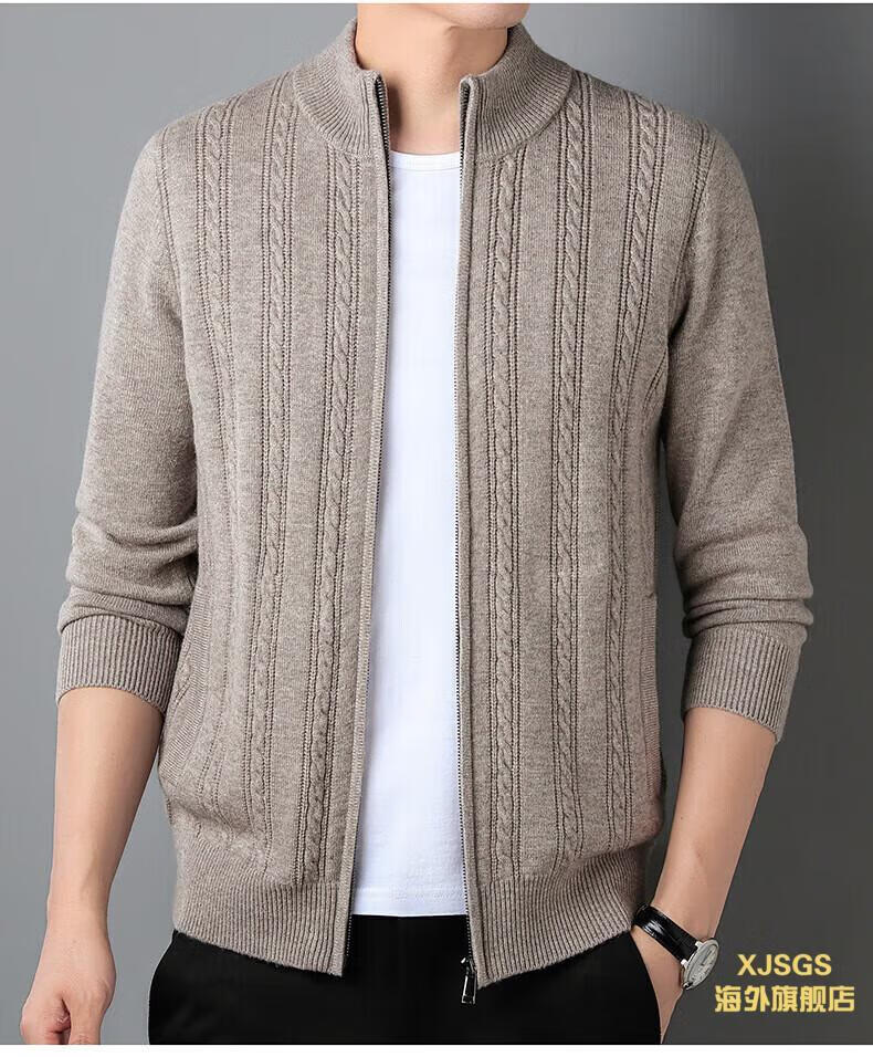 XJSGS international high-end brand men's pure woolen sweater 2025 spring and autumn stand-up collar solid color dad light luxury knitted cardigan high-end rice camel spot speed L recommendation 120-140Jin Jin equals 0.5 kg