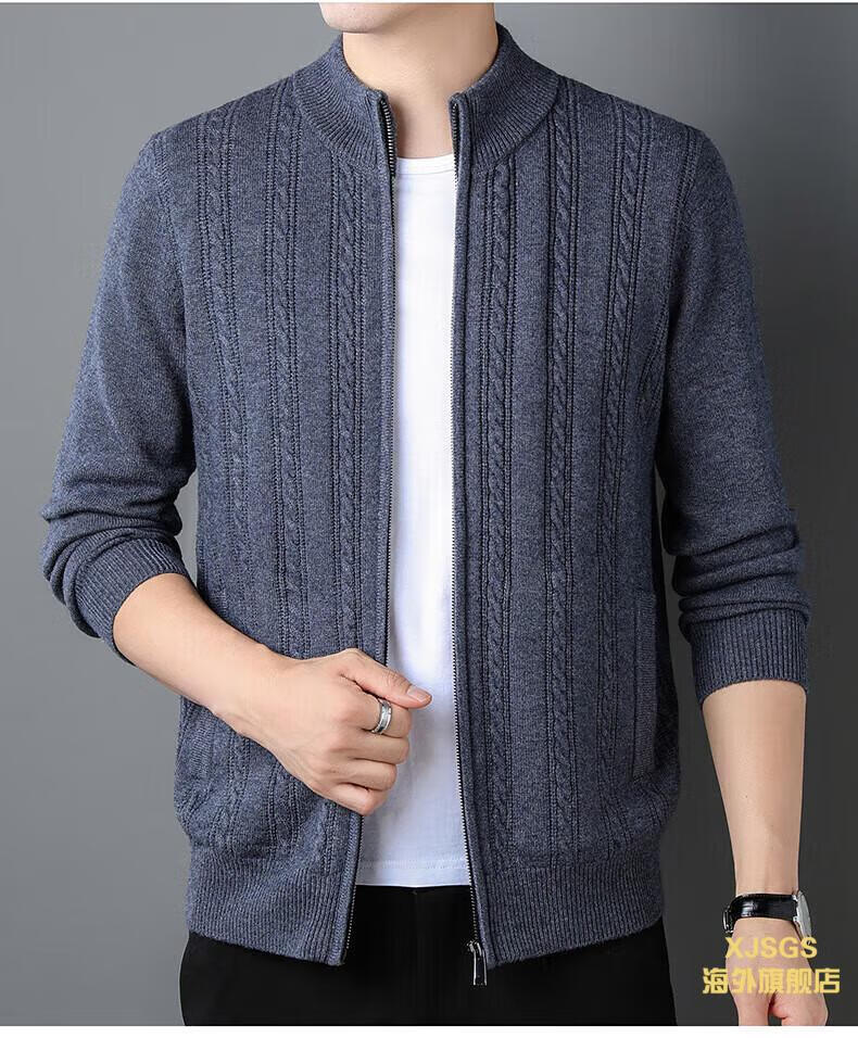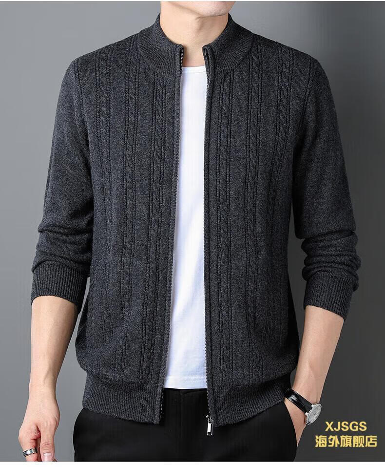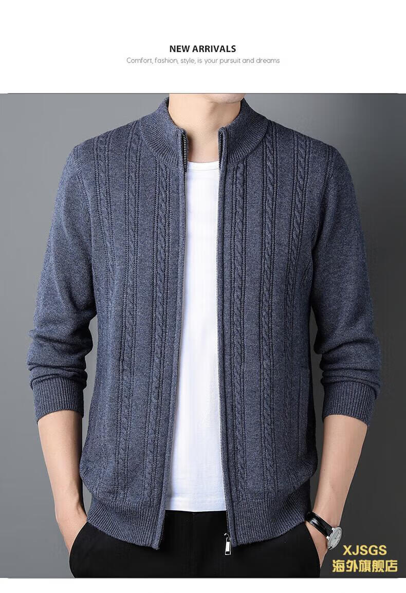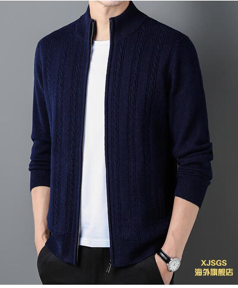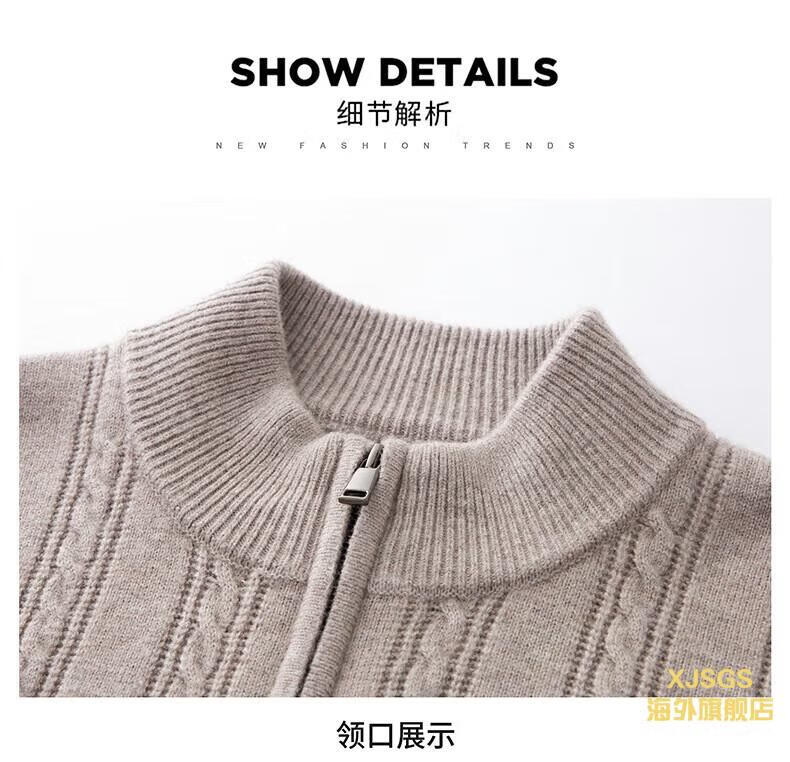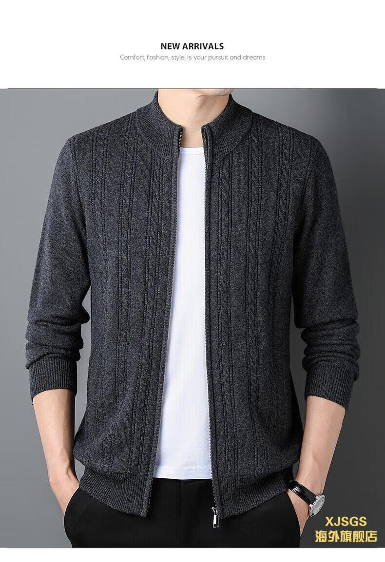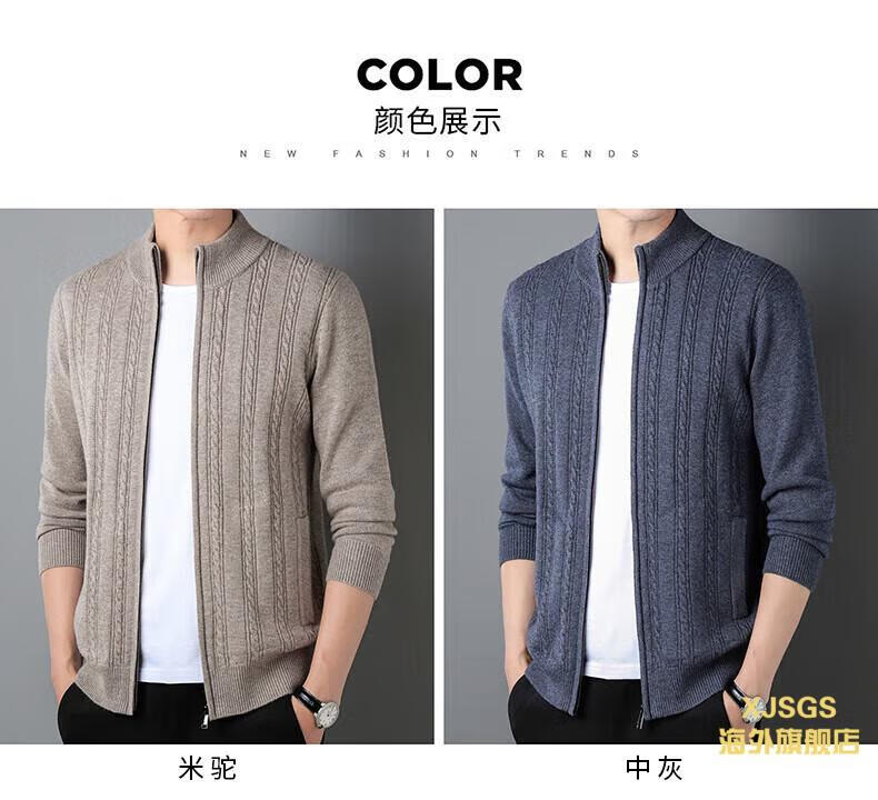 XJSGS international high-end brand men's pure woolen sweater 2025 spring and autumn stand-up collar solid color dad light luxury knitted cardigan high-end rice camel spot speed L recommendation 120-140Jin Jin equals 0.5 kg