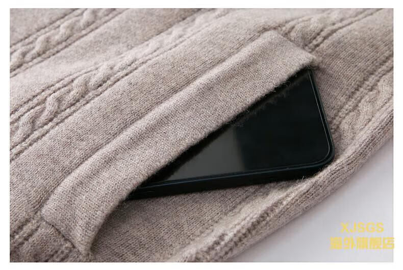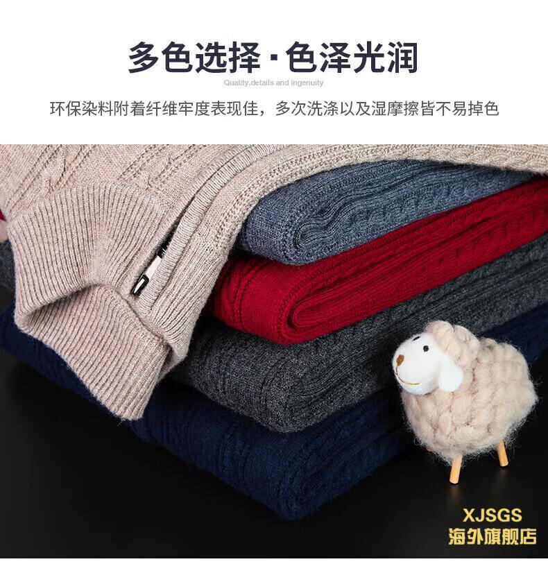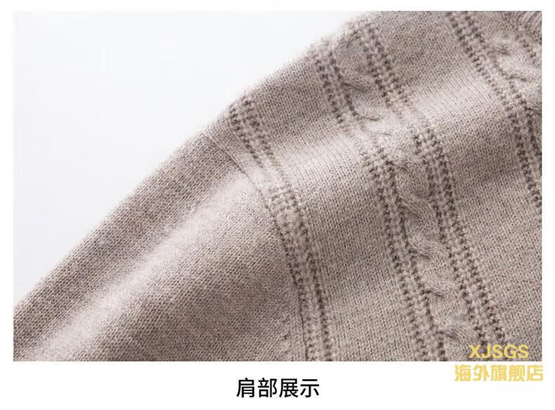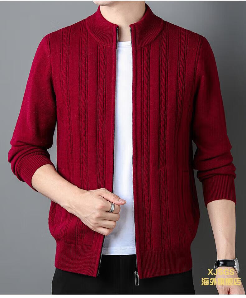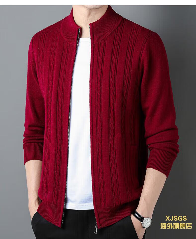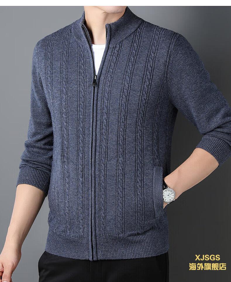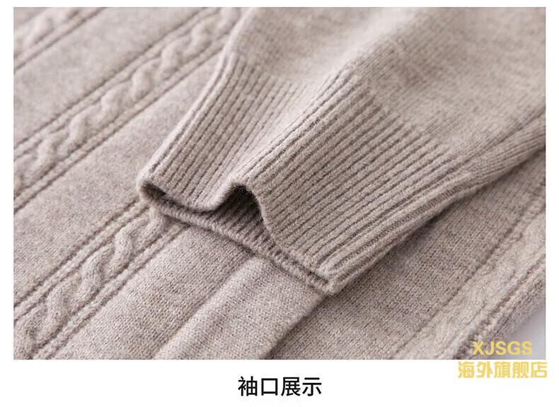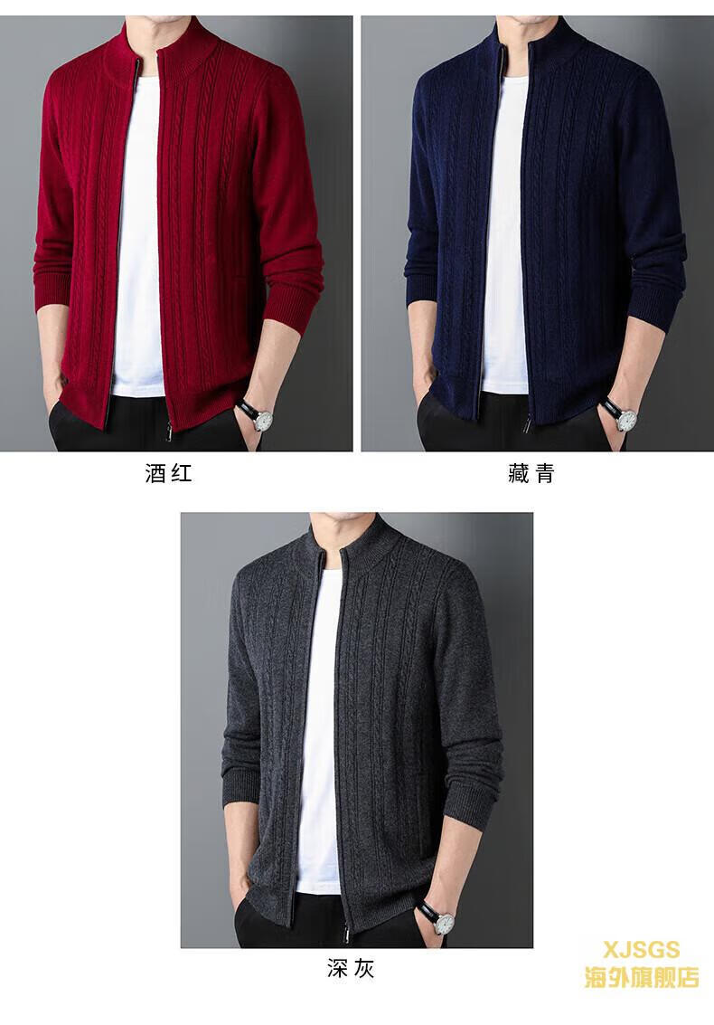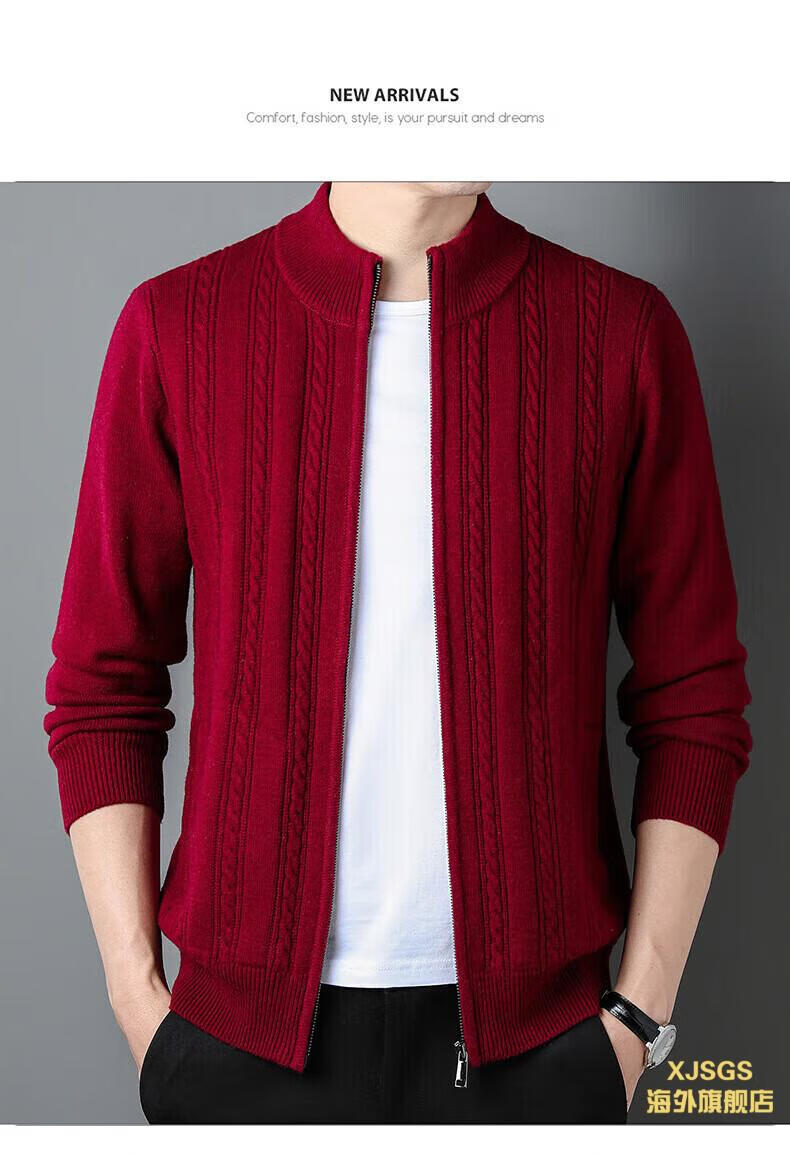 XJSGS international high-end brand men's pure woolen sweater 2025 spring and autumn stand-up collar solid color dad light luxury knitted cardigan high-end rice camel spot speed L recommendation 120-140Jin Jin equals 0.5 kg
