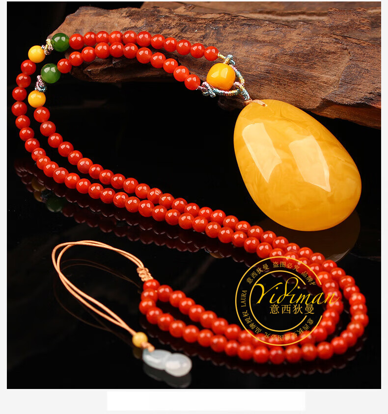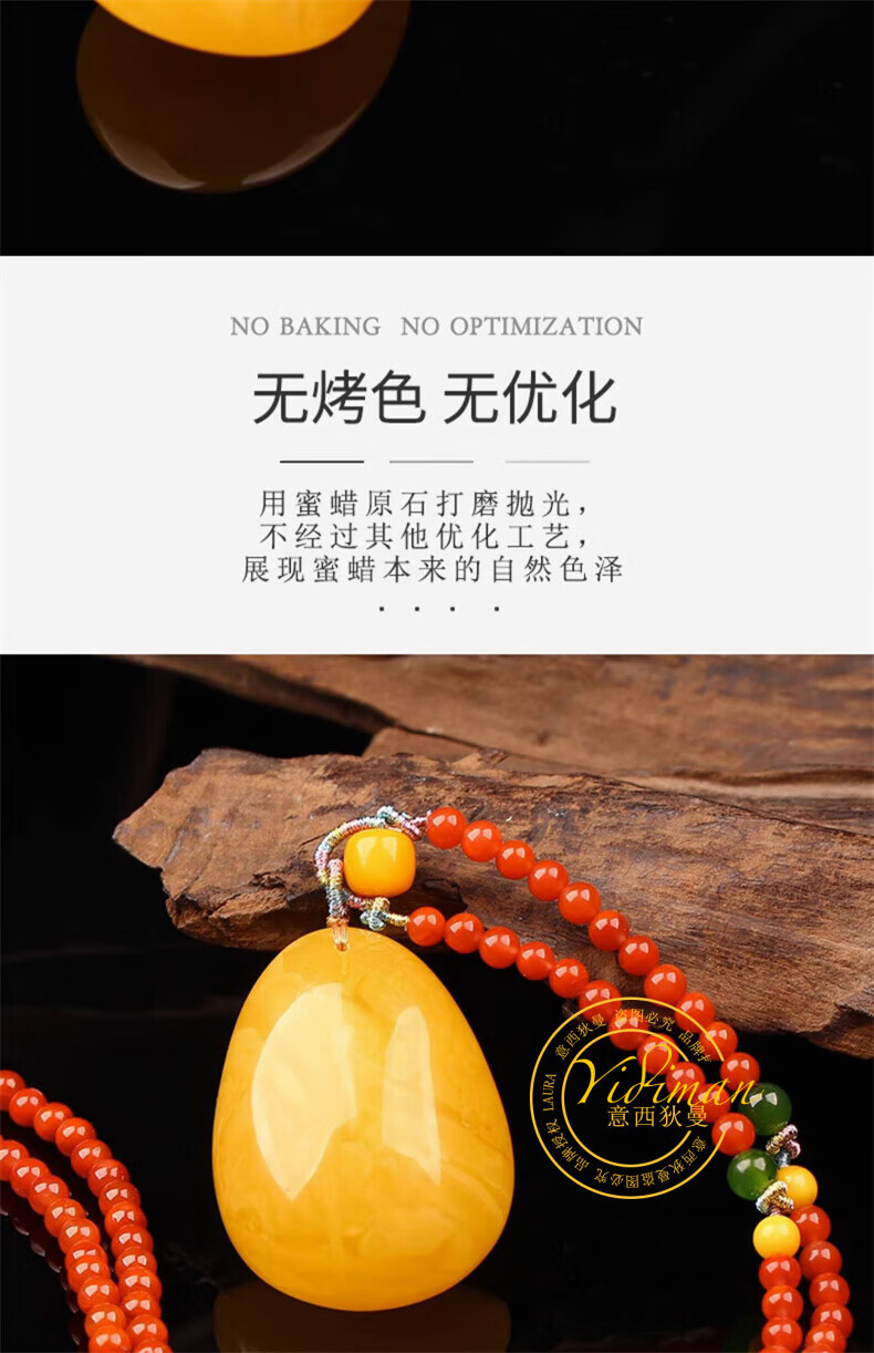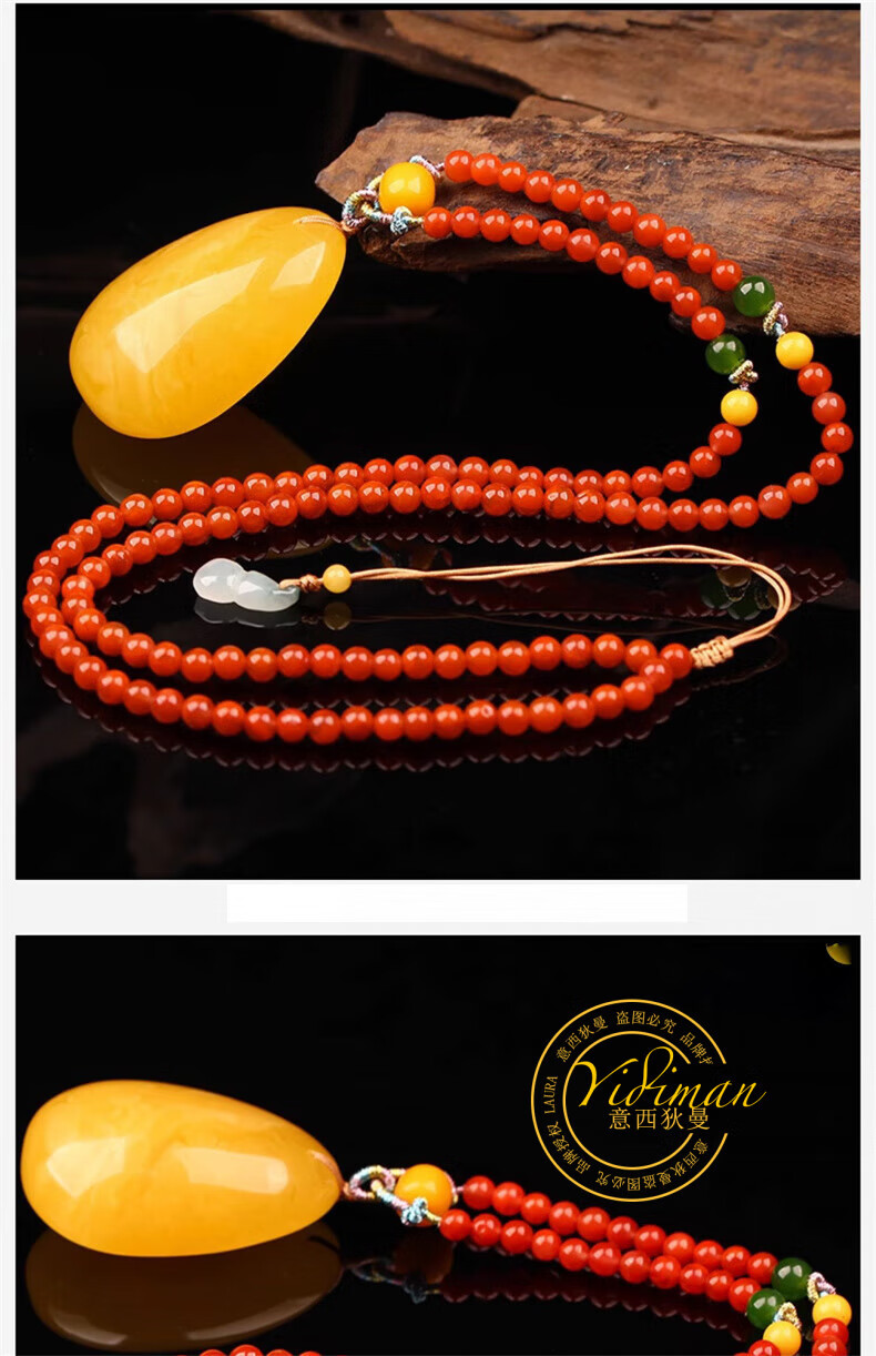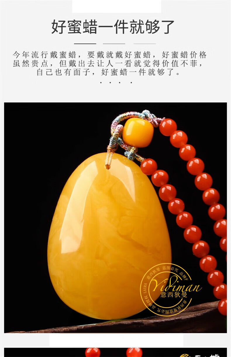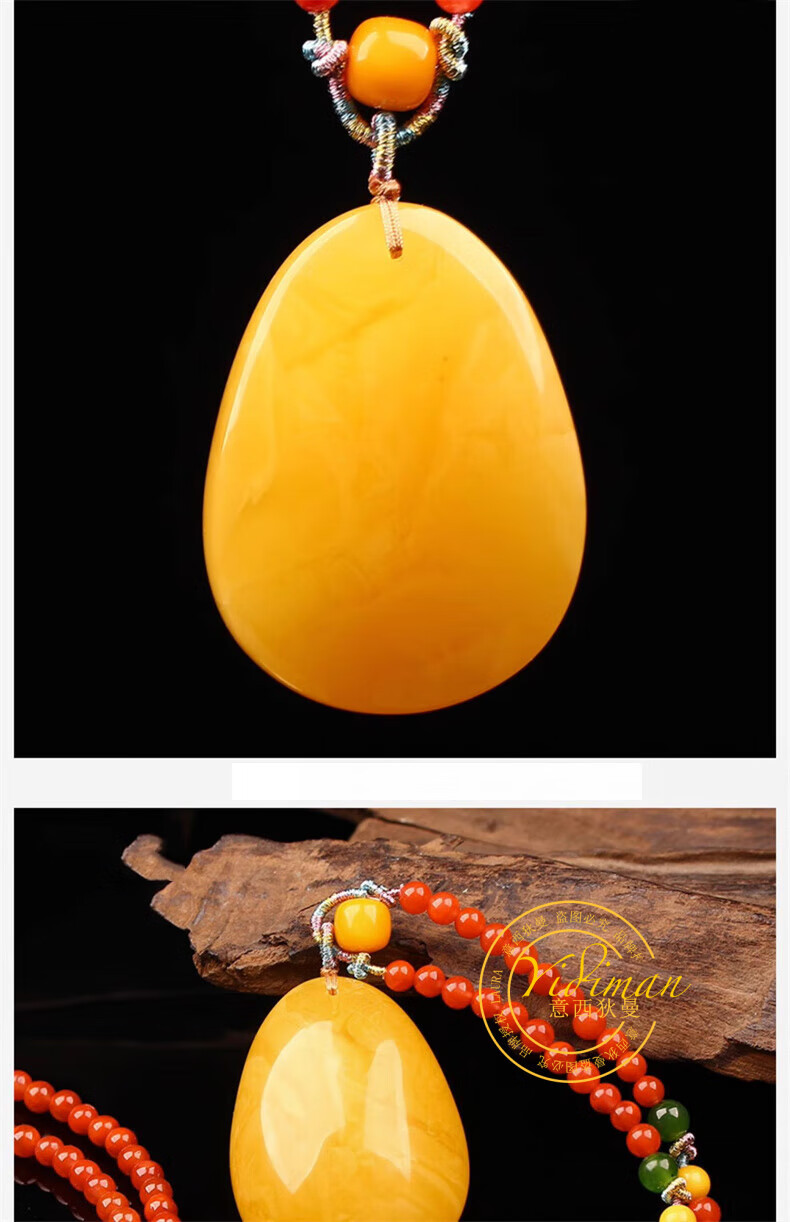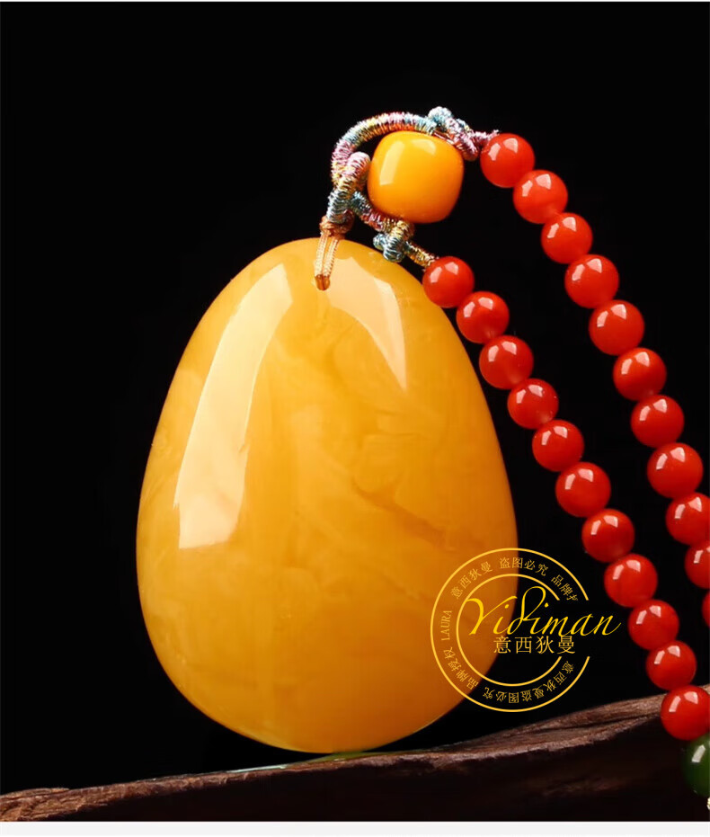 Italian beeswax pendant for men and women collectible necklace old material amber chicken oil xanthanite natural pendant for husband gift exquisite model 13-15g (with certificate)