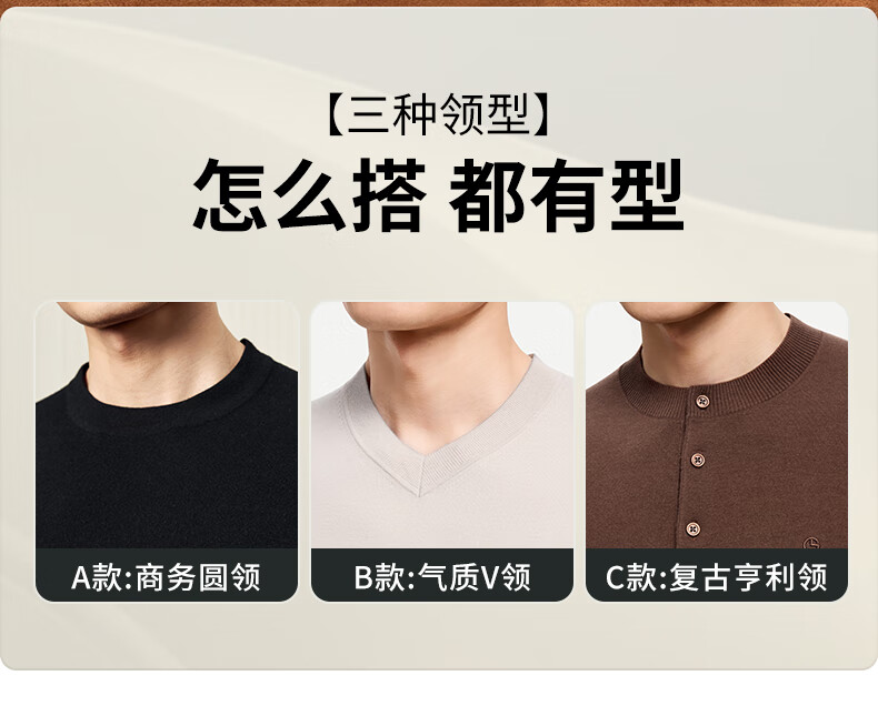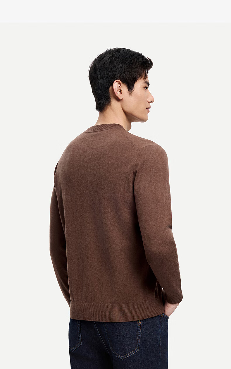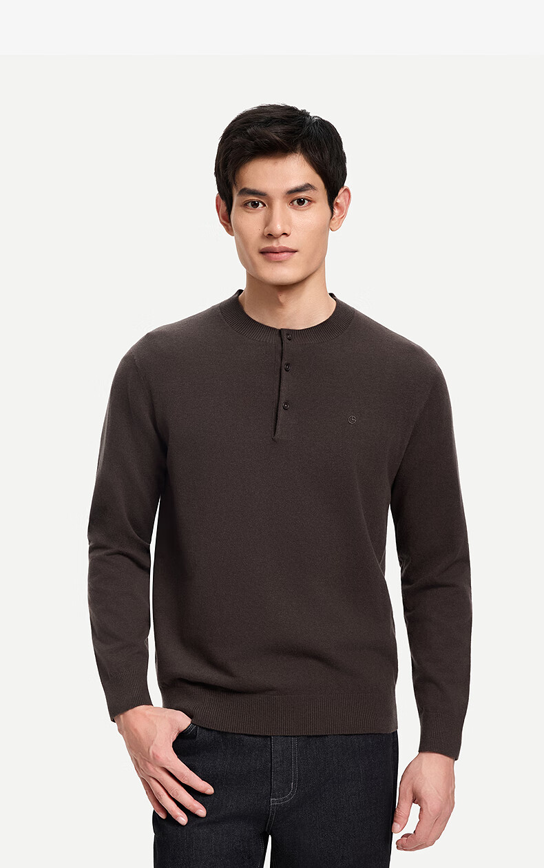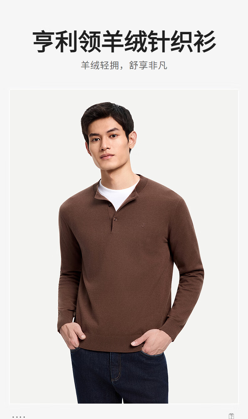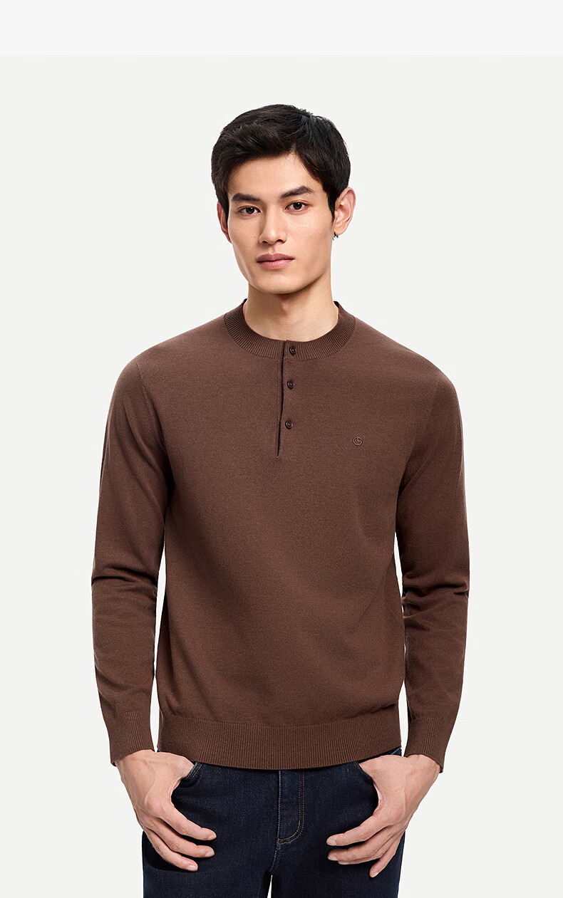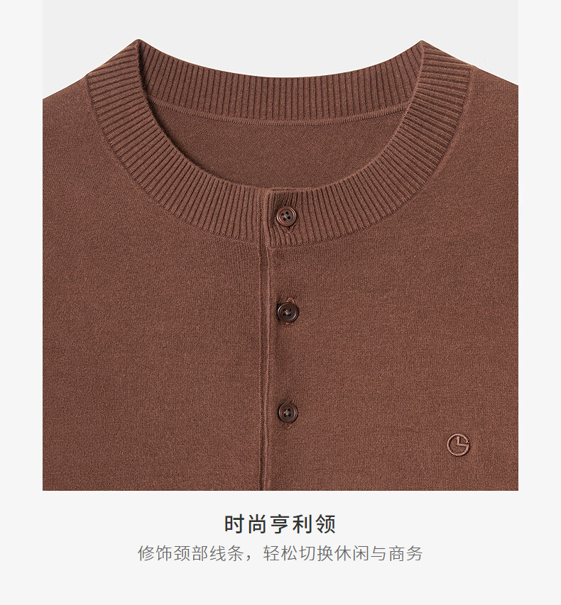 Goldlion Cashmere 2025 Autumn and Winter New Knitted Sweater Men's Warm Casual Simple Round Neck Bottoming Pullover Sweater Henry Collar ECWH108B3304-Light Brown 72 L 175/92A Recommended 135-150 Jin Jin equals 0.5 kg