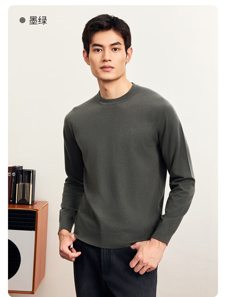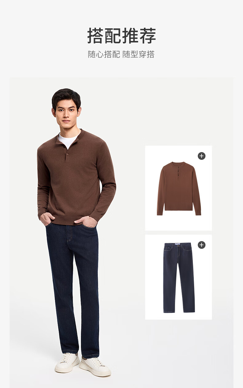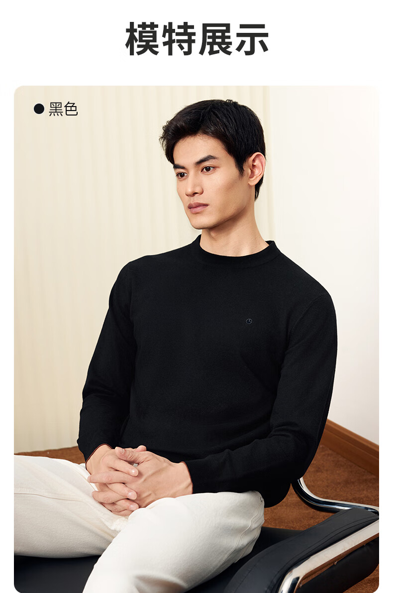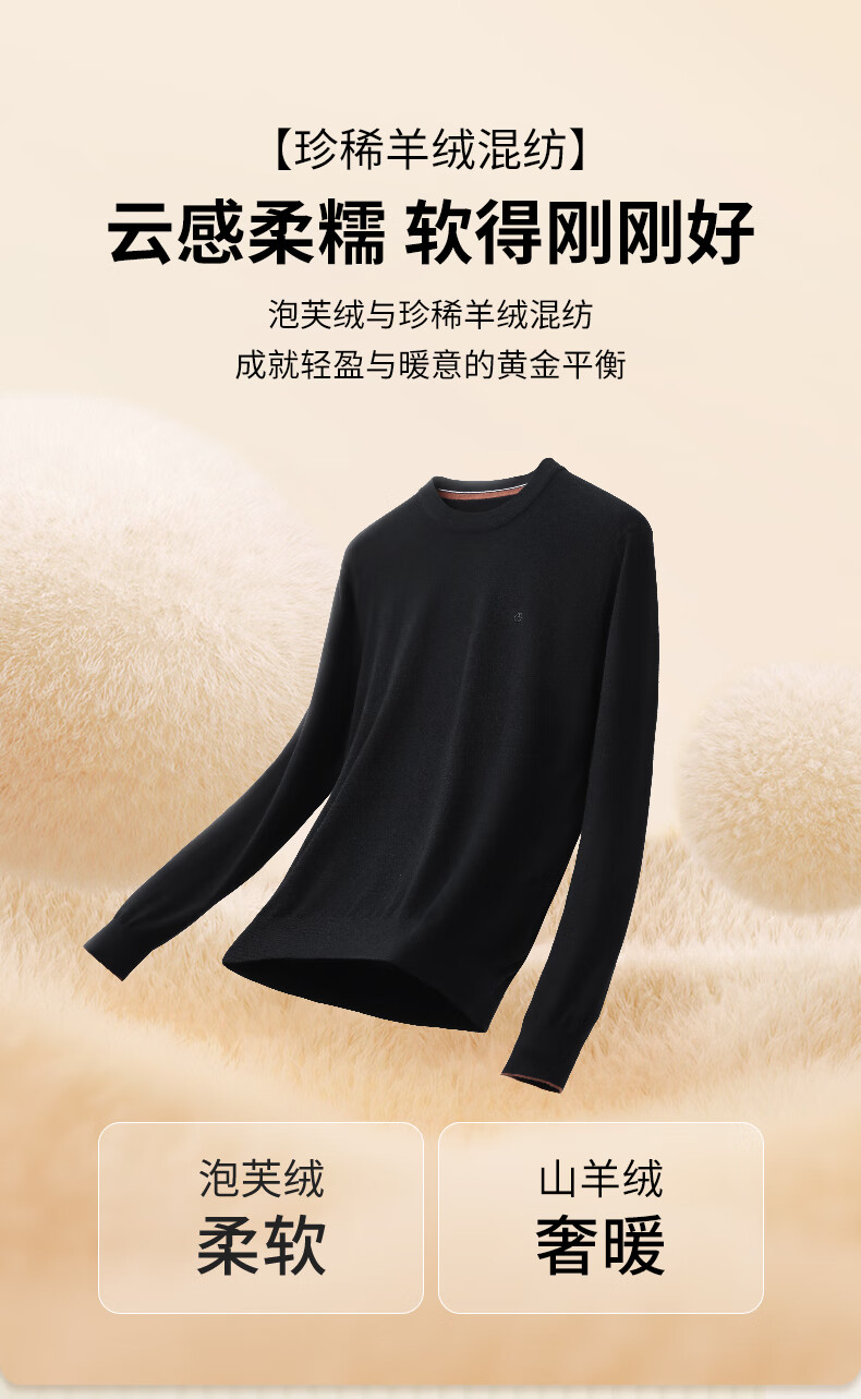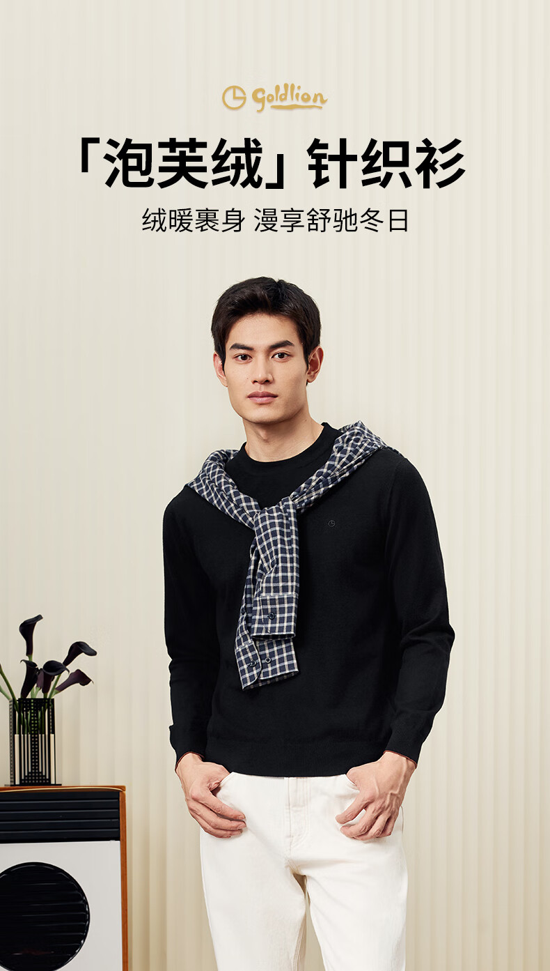 Goldlion Cashmere 2025 Autumn and Winter New Knitted Sweater Men's Warm Casual Simple Round Neck Bottoming Pullover Sweater Henry Collar ECWH108B3304-Light Brown 72 L 175/92A Recommended 135-150 Jin Jin equals 0.5 kg