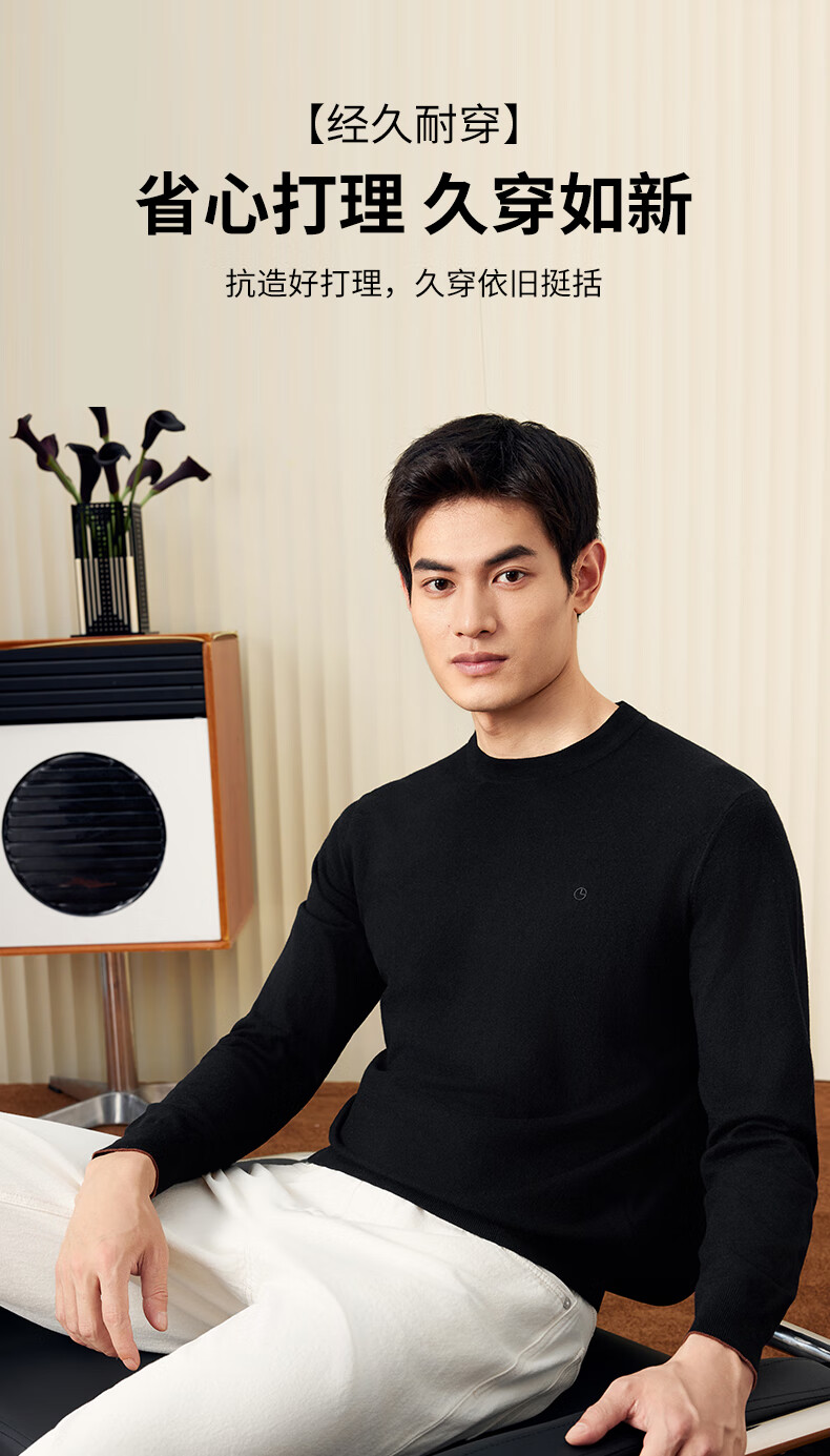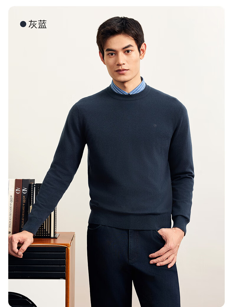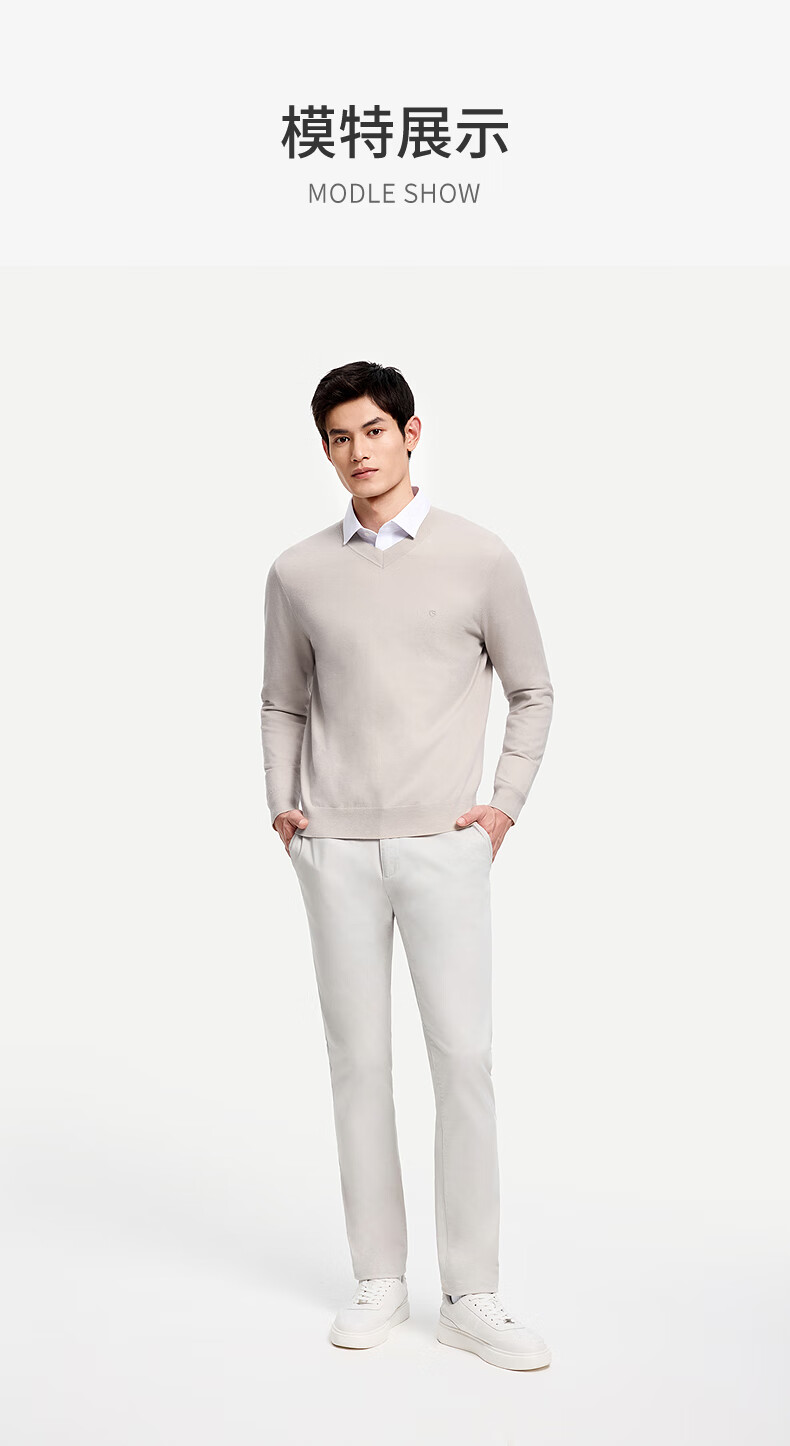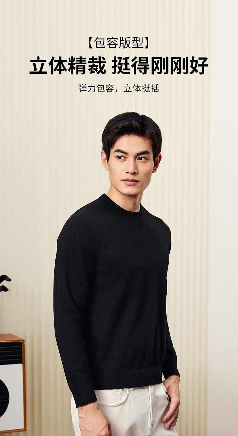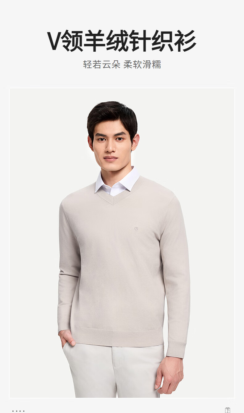 Goldlion Cashmere 2025 Autumn and Winter New Knitted Sweater Men's Warm Casual Simple Round Neck Bottoming Pullover Sweater Henry Collar ECWH108B3304-Light Brown 72 L 175/92A Recommended 135-150 Jin Jin equals 0.5 kg
