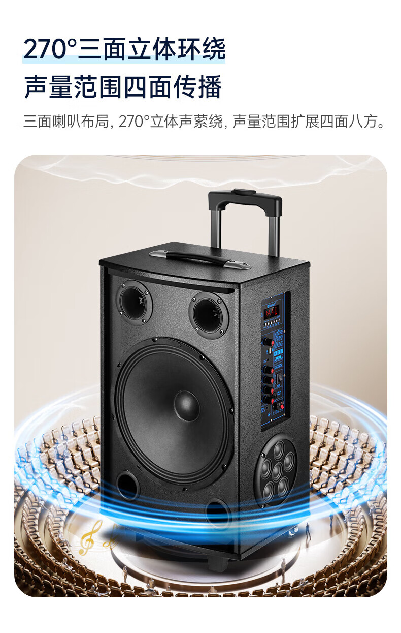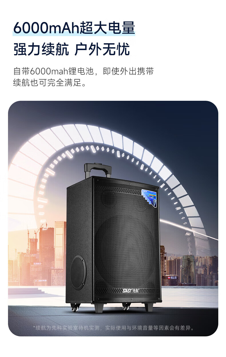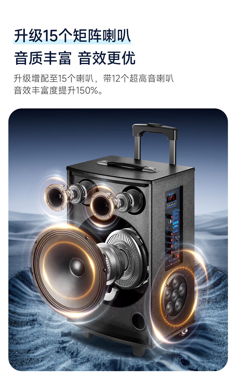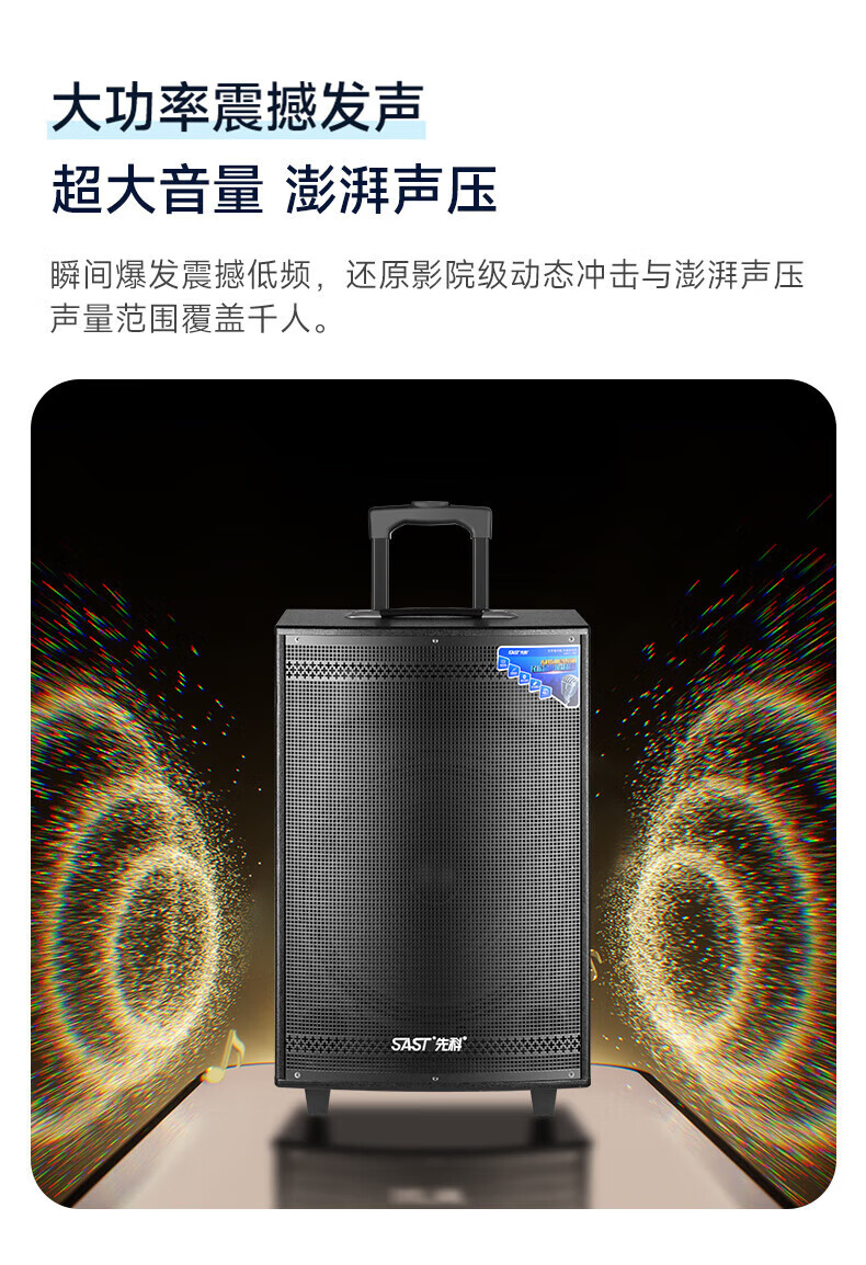 Xianke high-power outdoor audio ultra-large volume trolley speaker outdoor activities square dance special with microphone family outdoor karaoke speaker A90S 15-inch bass + dual charging microphone