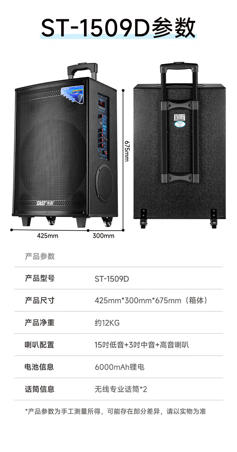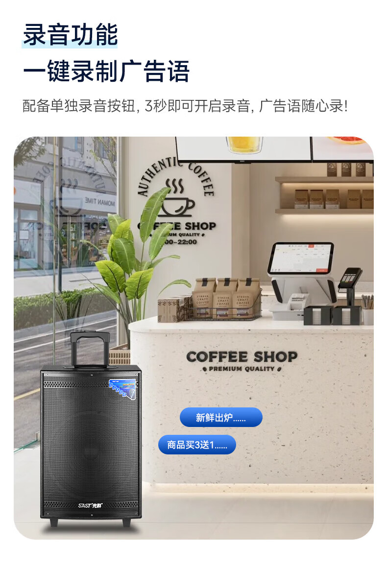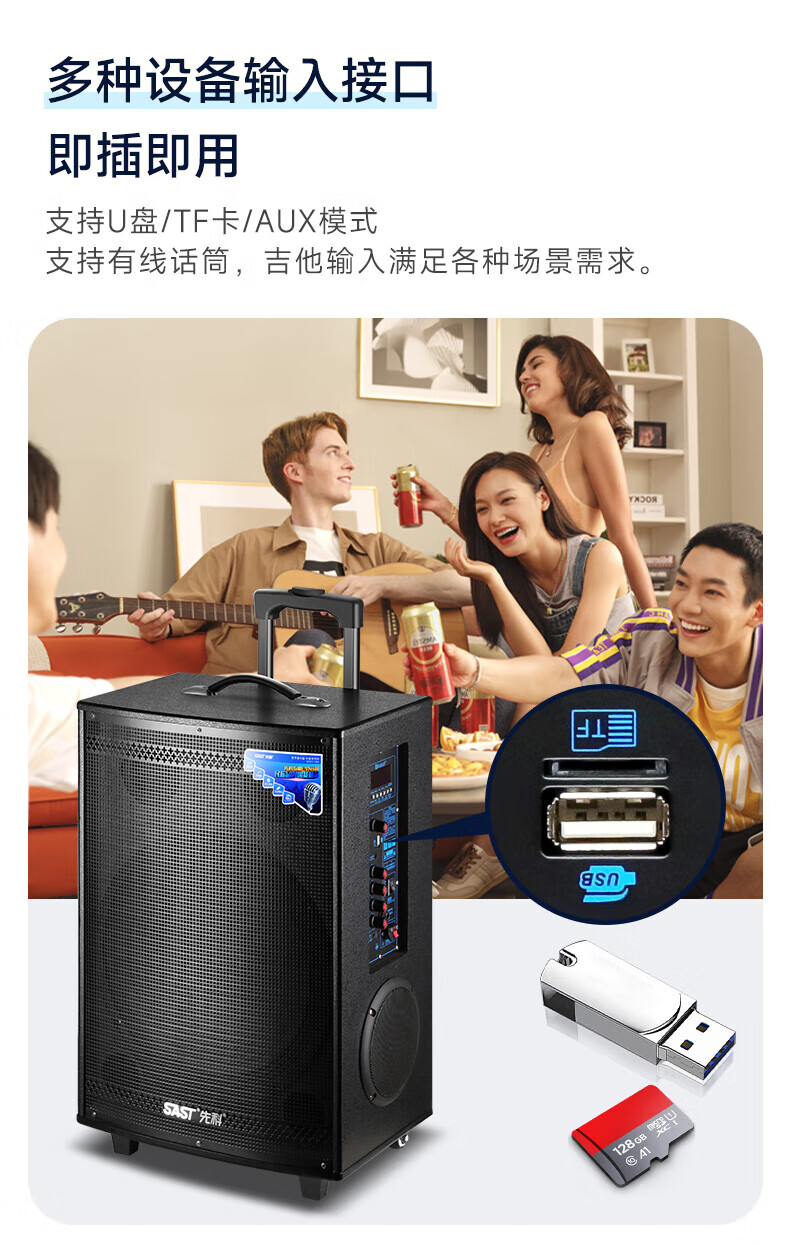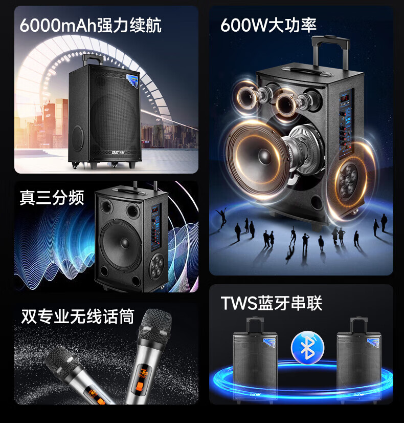 Xianke high-power outdoor audio ultra-large volume trolley speaker outdoor activities square dance special with microphone family outdoor karaoke speaker A90S 15-inch bass + dual charging microphone
